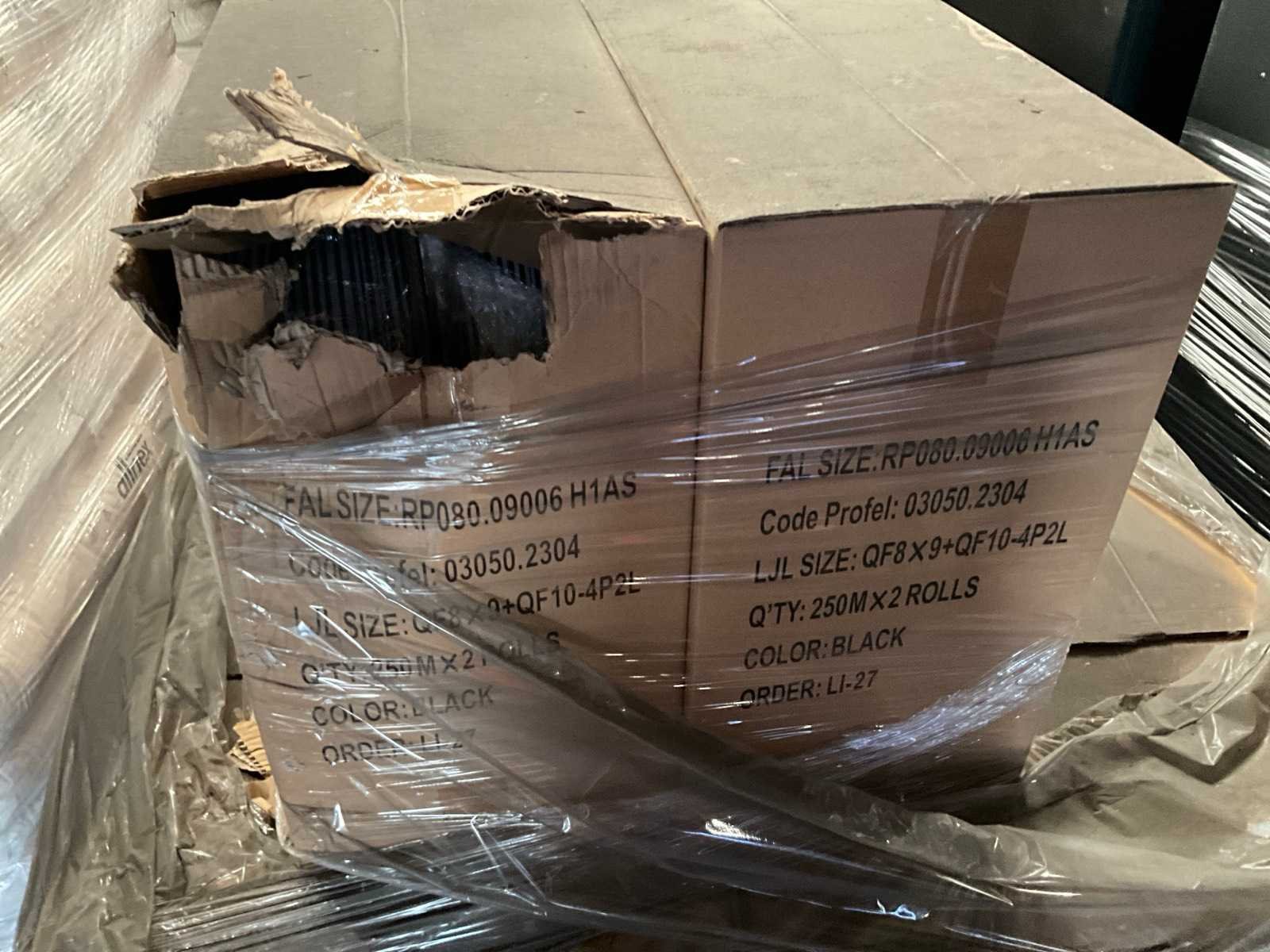16 rollen, elk inhoudende 250 meter strip, specificaties zie foto, kleur zwart, verpakt per 2 rollen in doos. Totaal : 4000 lpm. Nee