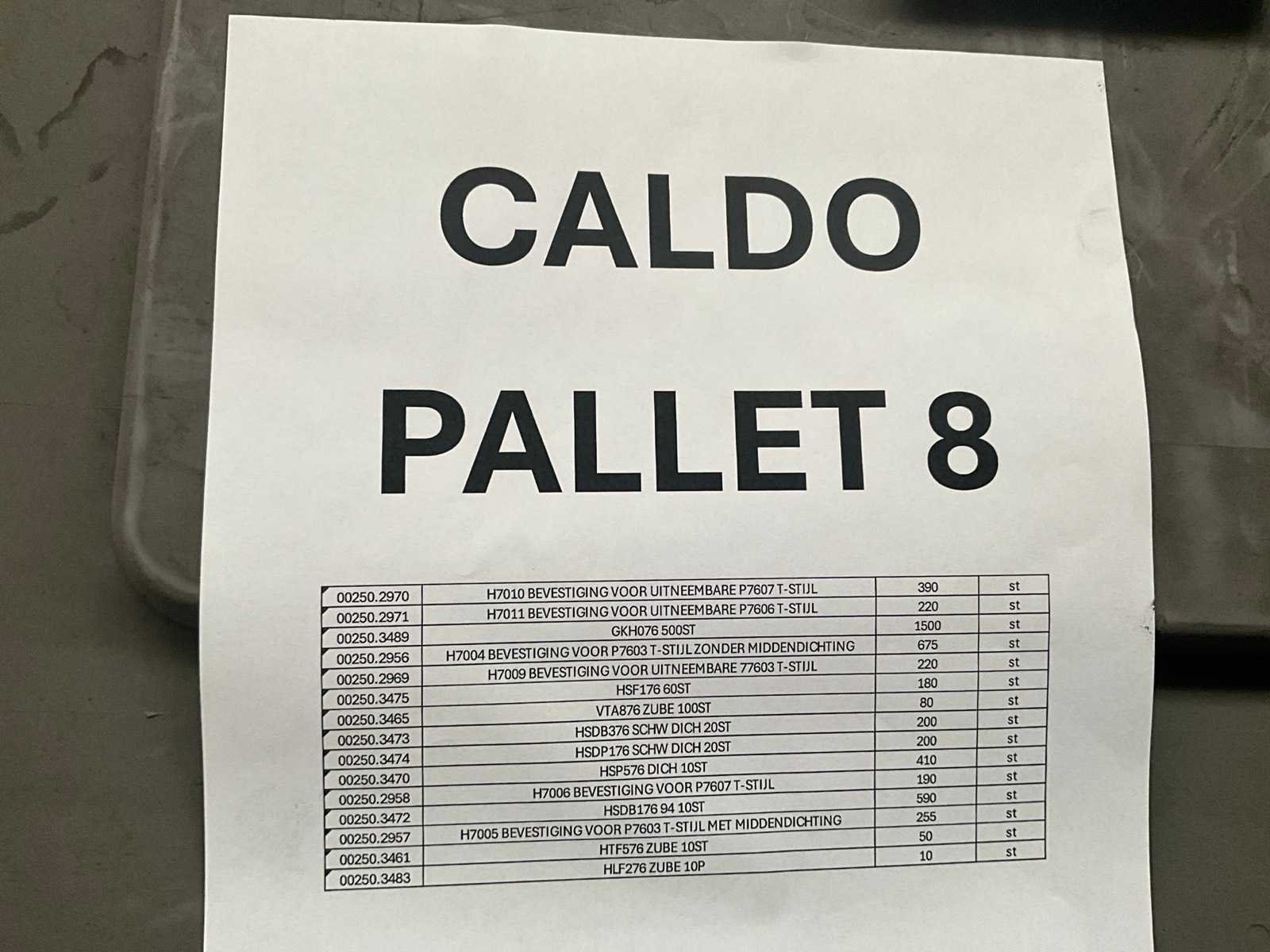 Waaronder bevestigingen voor uitneembare T-stijlen, dichtingen, diverse bevestigingen en toebehoren. Allemaal in dozen verpakt. Voor detail : zie foto met specificatie van de inhoud. Nee Merk: Caldo
