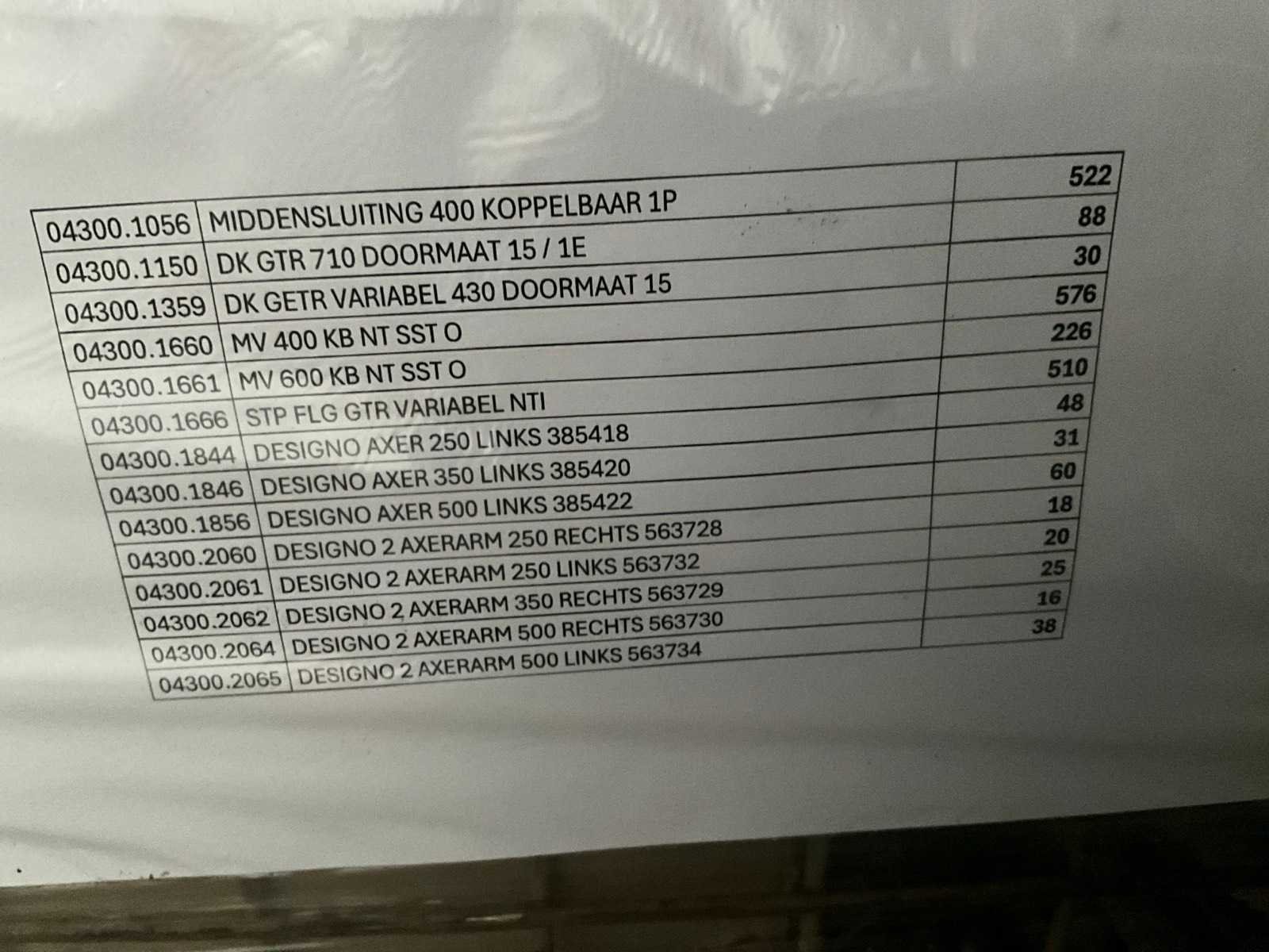 Waaronder design axarmen, middensluitingen, doormaten. In diverse soorten en uitvoeringen en enig toebehoren. Detaillijst van inhoud op laatste foto ! No