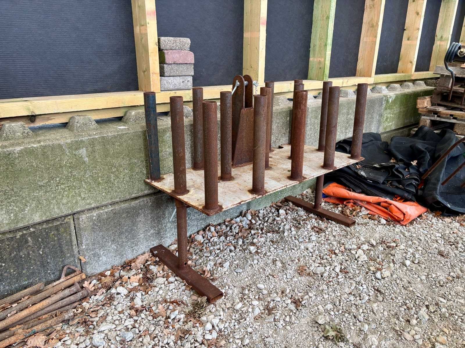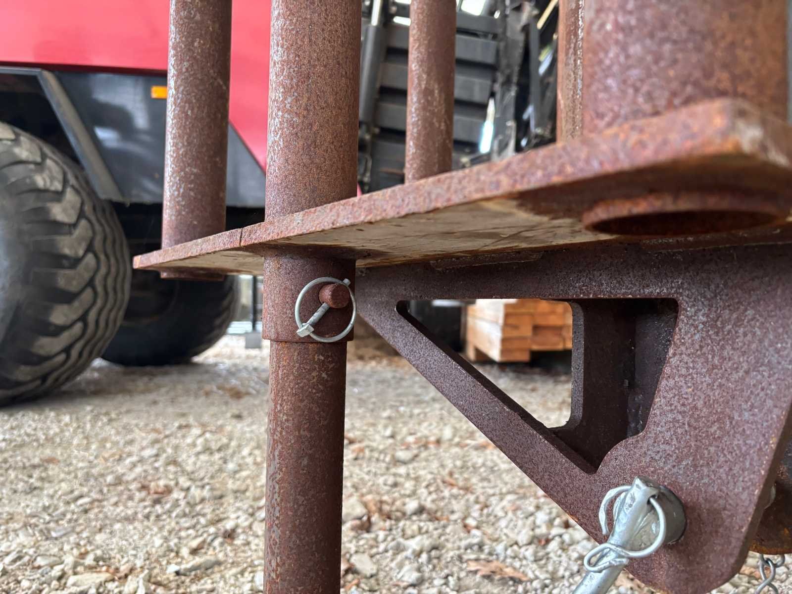 Zelfgemaakt rek om balen op te stockeren met 3 punts koppeling voor traktor. Wat oppervlakte roest wegens metaal dat nog niet behandeld is. Dient nog gespoten te worden om volledig afgewerkt te zijn of zo te gebruiken No
