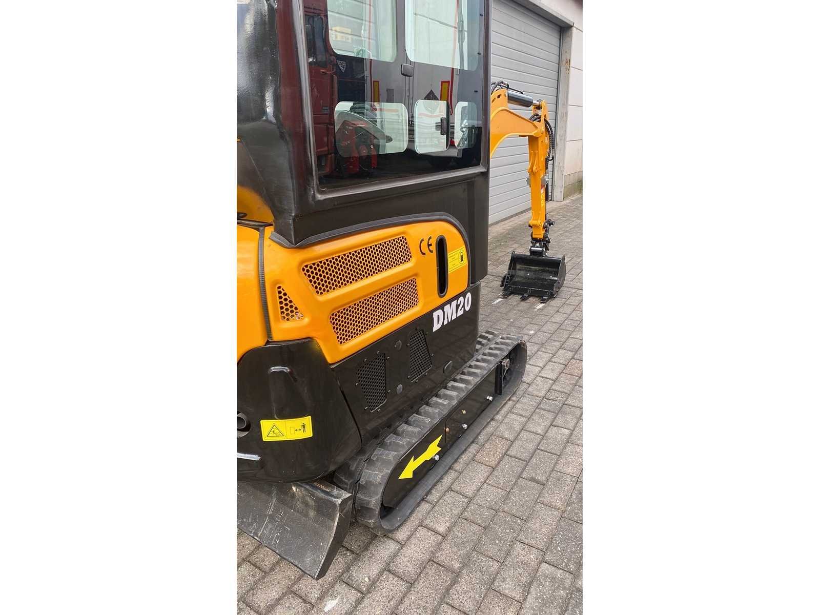 Machinetype: DMm 20 / cabinette Motortype: Dieselmotor, 3 cilinders Motorinhoud: 15 PK, 11,8 kW, 12 RPM Motorfabrikant: KUBOTA ( D902) Startsysteem: Elektrisch met sleutel Aandrijving: Vaste Rupsen Spoorbreedte: +- 1100 mm Snelheid V/A: +- 3 km/h Zwenk graafarm: 70 graden (naar links & rechts) Zwenkradius: 360 graden Max. hellingshoek: 30 graden Remsysteem: Automatische veiligheidsrem Gewicht bruto : +- 2000kg Gewicht netto : +- 1800 kg Modelnummer: DMM20PRO No Merk: DMHT - Kubota Type: DM20 Bouwjaar: 10-2025 Merk motor: Kubota Motorvermogen (kW): 11kW Aantal cilinders: 3 Brandstof: Diesel Bedrijfsgewicht: 2000kg