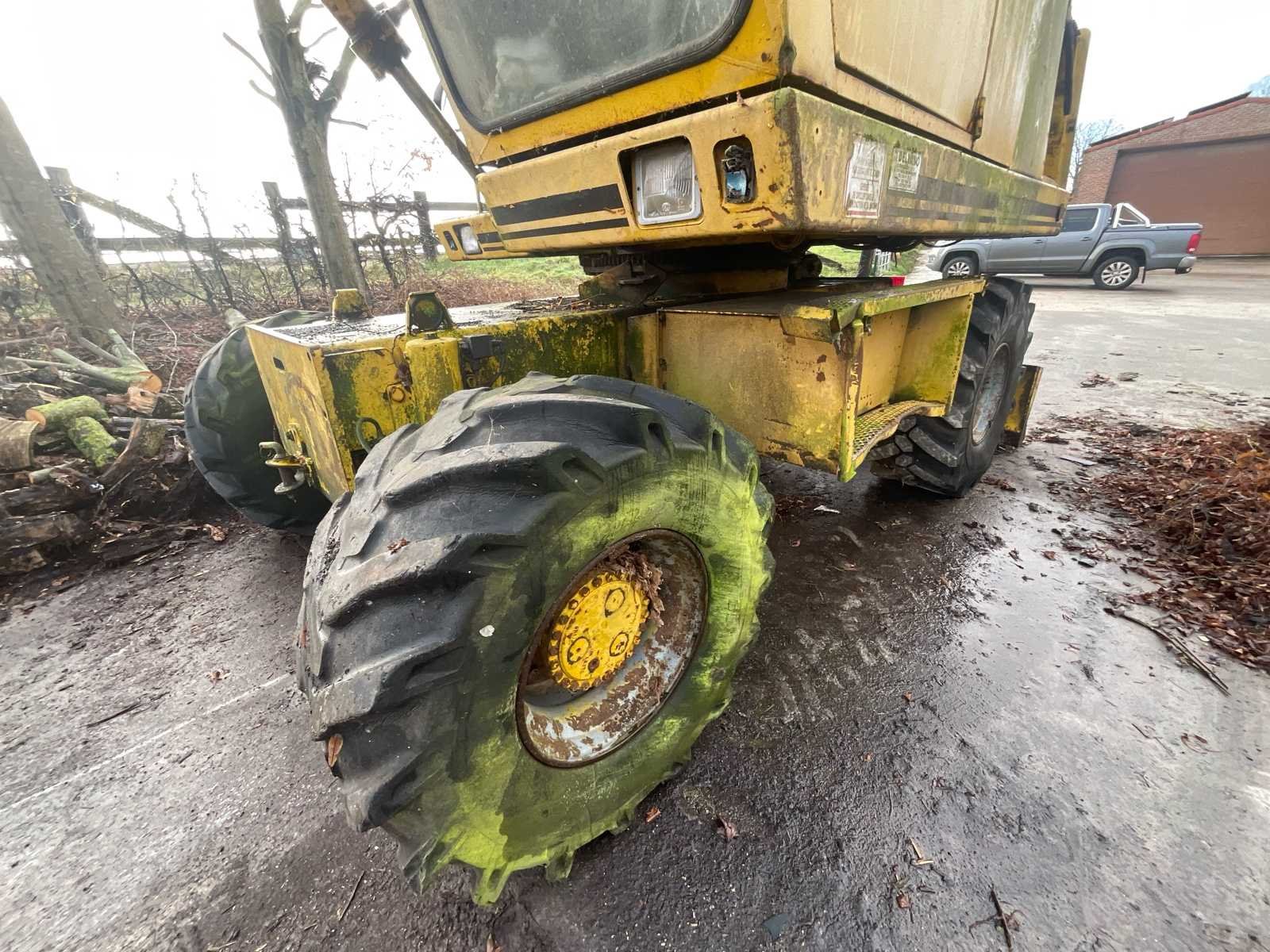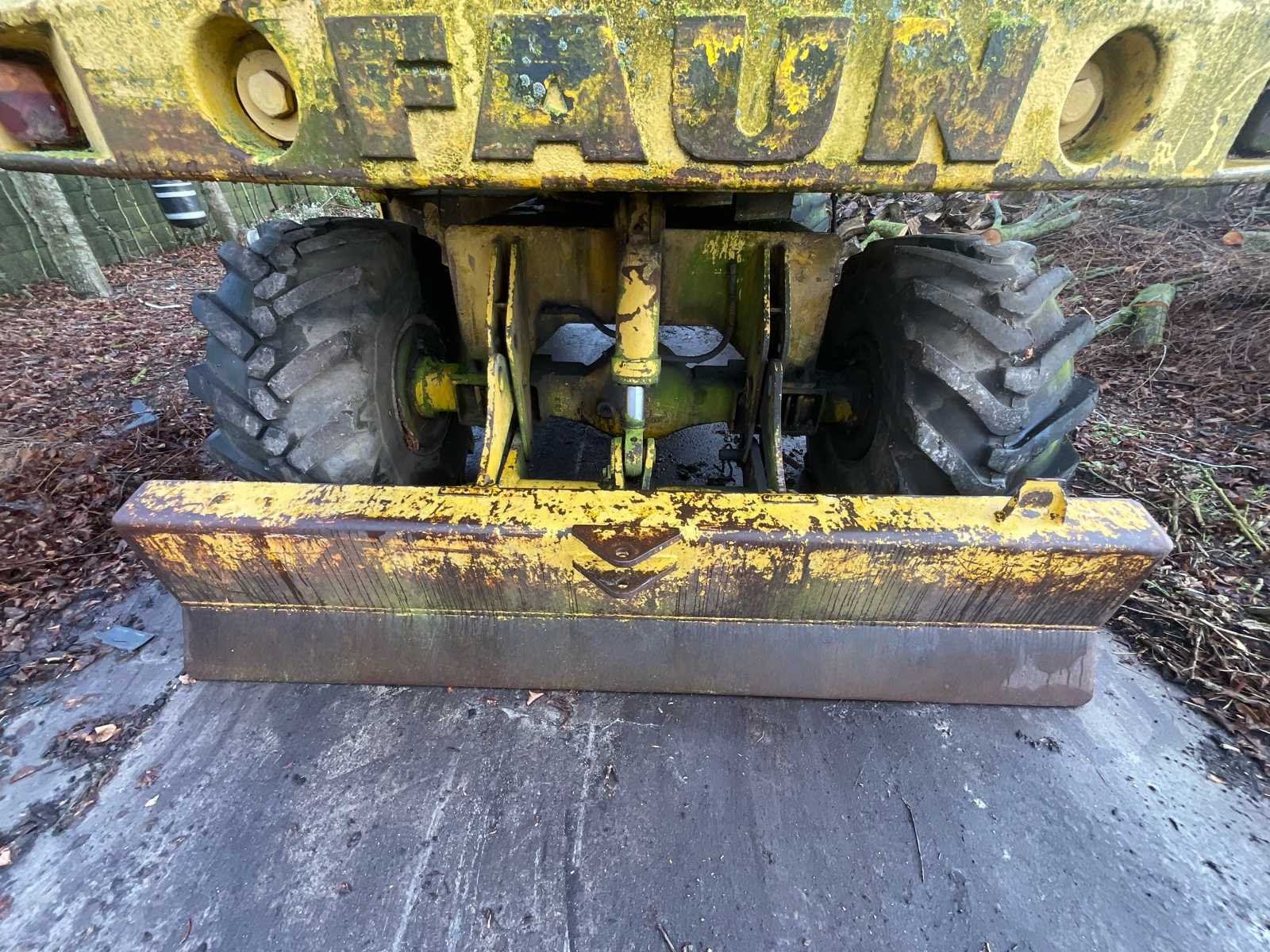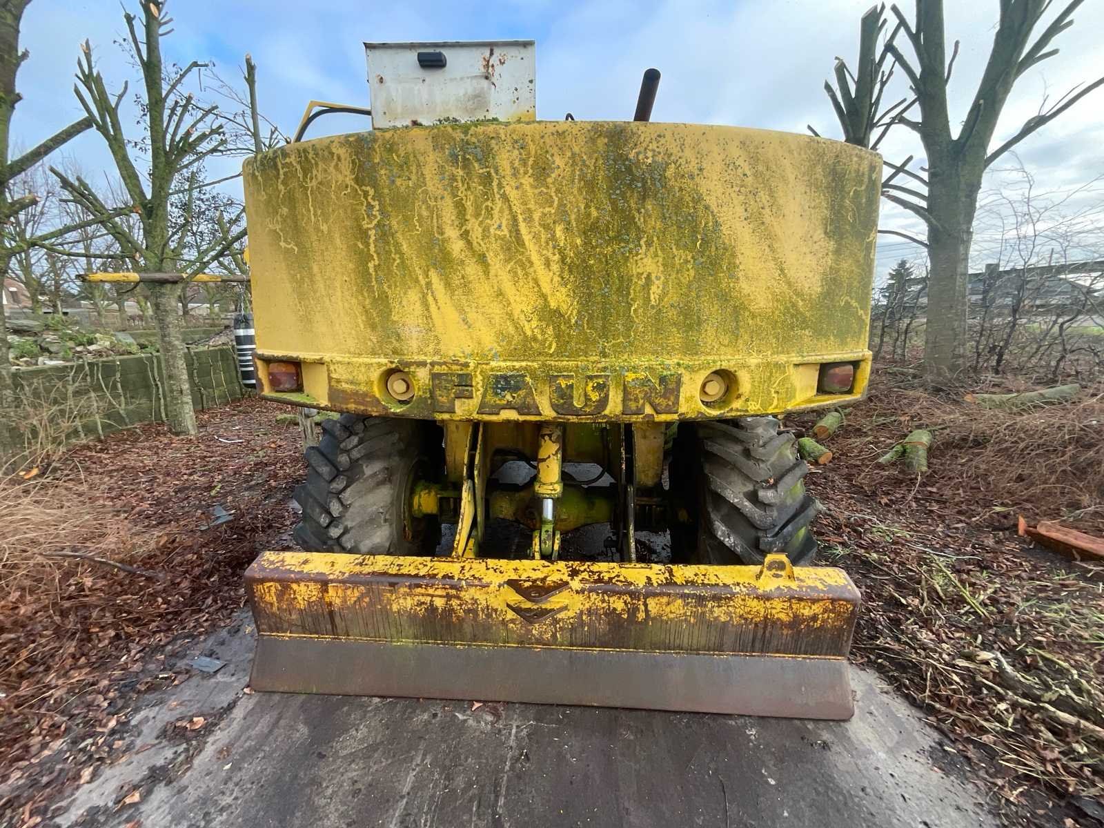 FAUN FM 1015 Wielgraafmachine – 1986 Merk: FAUN Model: FM 1015 Type: Wielgraafmachine Bouwjaar: 1986 (volgens beschikbare informatie) Openingstijden: ± 9.600 uur (gemeten, niet gegarandeerd) Beschrijving FAUN FM 1015 wielgraafmachine, uitgerust met een arm met bak en een blad. Oude machine, die lange tijd onbeweeglijk bleef. Gesloten cabine met ramen, stoel en bedieningselementen. Banden gemonteerd, versleten staat met tekenen van veroudering. Motorcompartiment is aanwezig, werking niet getest. Zichtbare slijtage, oppervlaktecorrosie en vervuiling door de hele machine, consistent met leeftijd en gebruik. Status Oude machine Ongeteste werking Verkocht zoals het is, zonder garantie Er is geen technische inspectie uitgevoerd Geen informatie beschikbaar over recent onderhoud Uitrusting Bucket Blade Afgesloten hut Gemonteerde banden No Merk: FAUN Type: FM1015 Bouwjaar: 1986 Serienummer: WFN2FM6FIGZ002718 Aantal cilinders: 4 Cabine: true Afgelezen urenstand: 9600