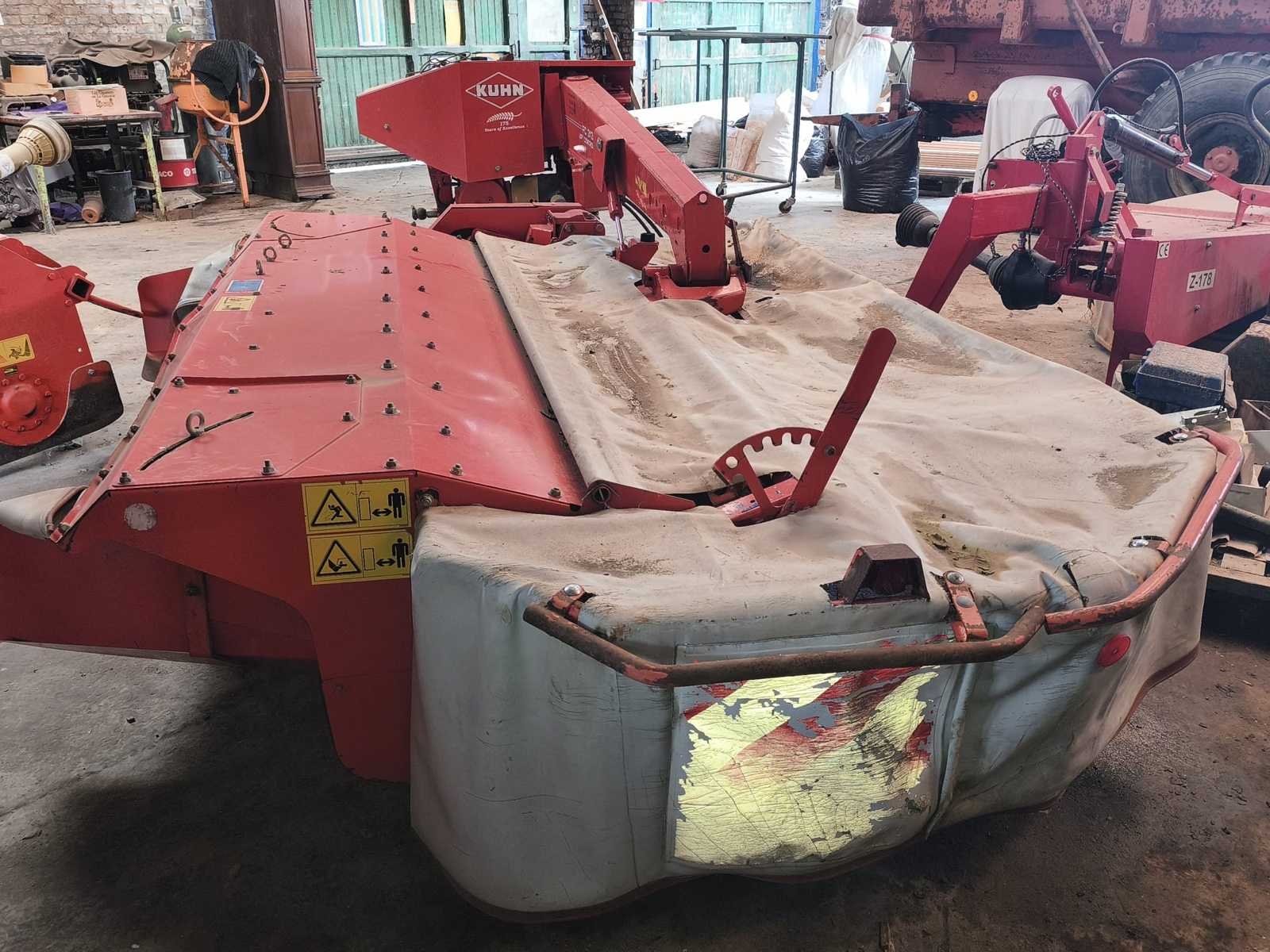 KUHN FC 313 Roterende Maaier – 1000 tpm – 8 schijven – met cardan as KUHN FC 313 Lift Control maaier-conditioner. Machine uitgerust met een snijstang met 8 snijschijven en een plastic vingerconditioner. Werkbreedte± 3,10 m. PTO aandrijving 1000 tpm. Gimbal inbegrepen. Uitgerust met het Lift Control-systeem. De algehele conditie was correct voor de leeftijd. Een paar plastic vingers van de conditioner ontbreken. Beschermende zeilen zijn zichtbaar bij slijtage. Opgeslagen in gebouwen. Serienummer: C0353. Nee Merk: KUHN Type: FC 313 Lift Control Serienummer: C0353 Totale afmeting Breedte: 3100mm