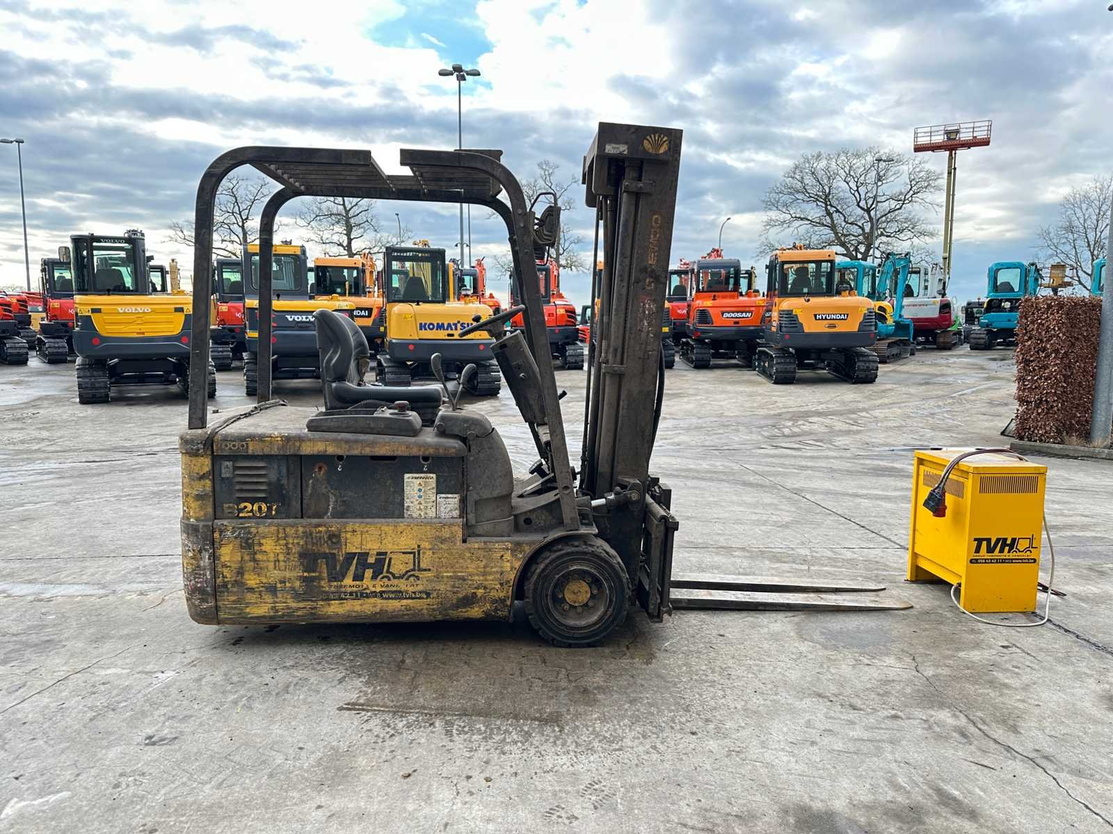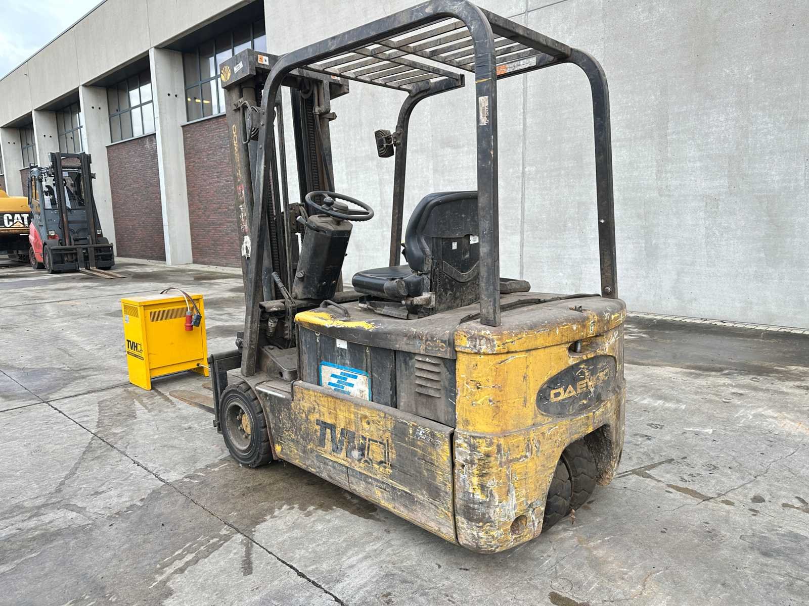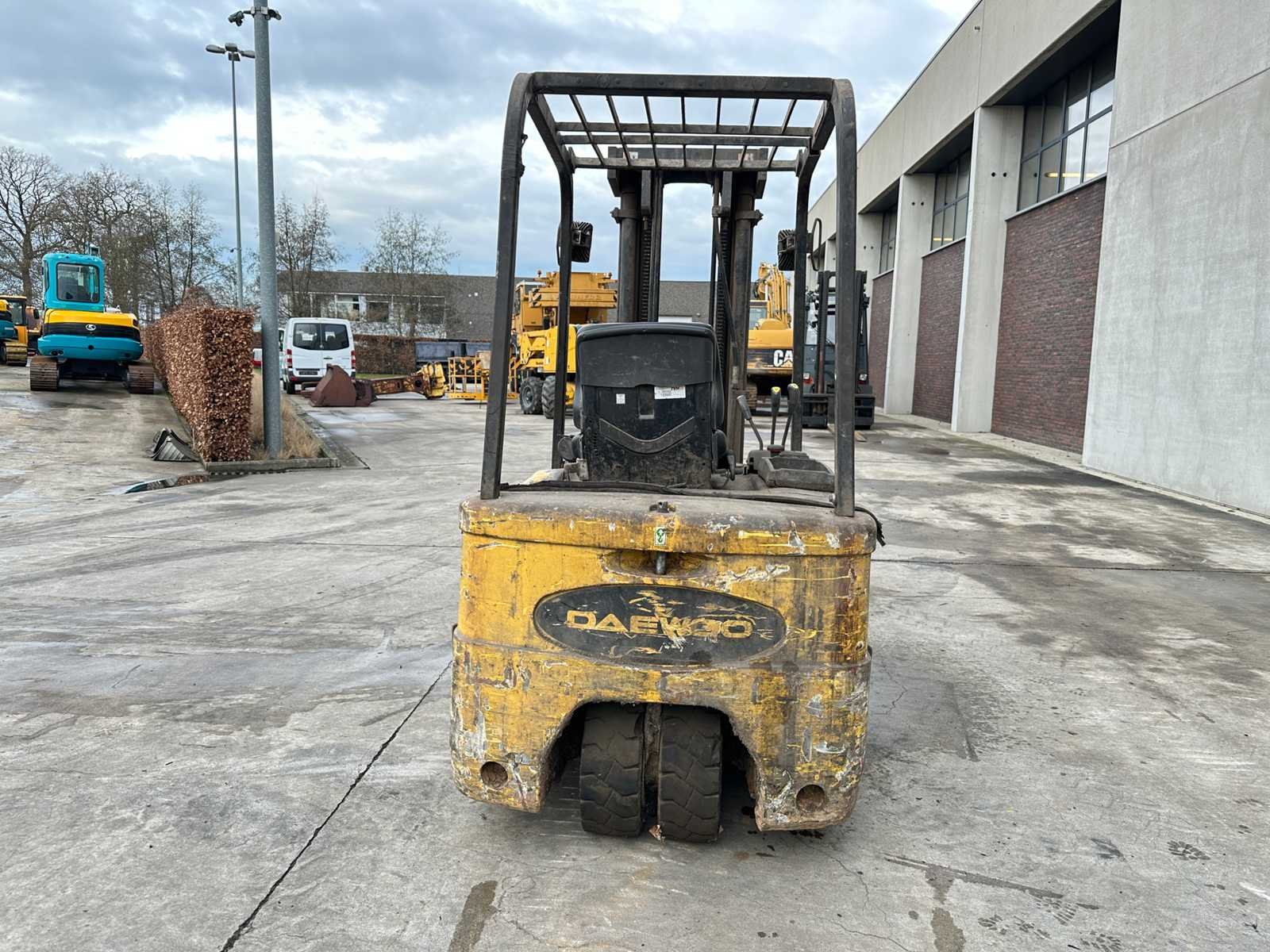 -Side shift -Inclusief lader -Geen documenten Nee Merk: Daewoo Type: B20T Bouwjaar: 2004 Serienummer: 00288 Brandstof: Accu Mast: Tripple Soort band: Vol Rubber Aantal wielen: 4 Afgelezen urenstand: 4249 Accu lader: true Side-shift: true Triple mast: true Eigen gewicht: 4545kg Hefvermogen: 2000kg Lepellengte: 1200mm Max. hefhoogte: 4750mm Vol rubber banden: true Totale afmeting L: 3400mm Totale afmeting Breedte: 1150mm Totale afmeting Hoogte: 2150mm