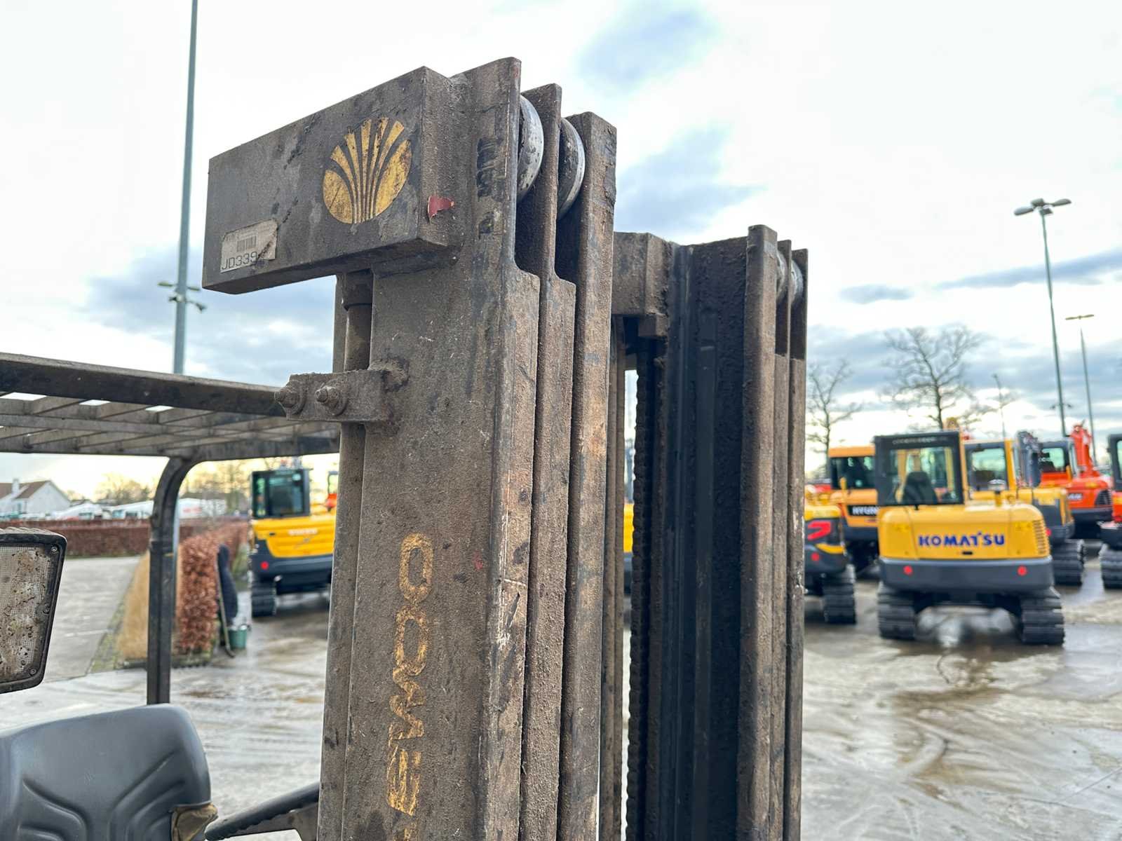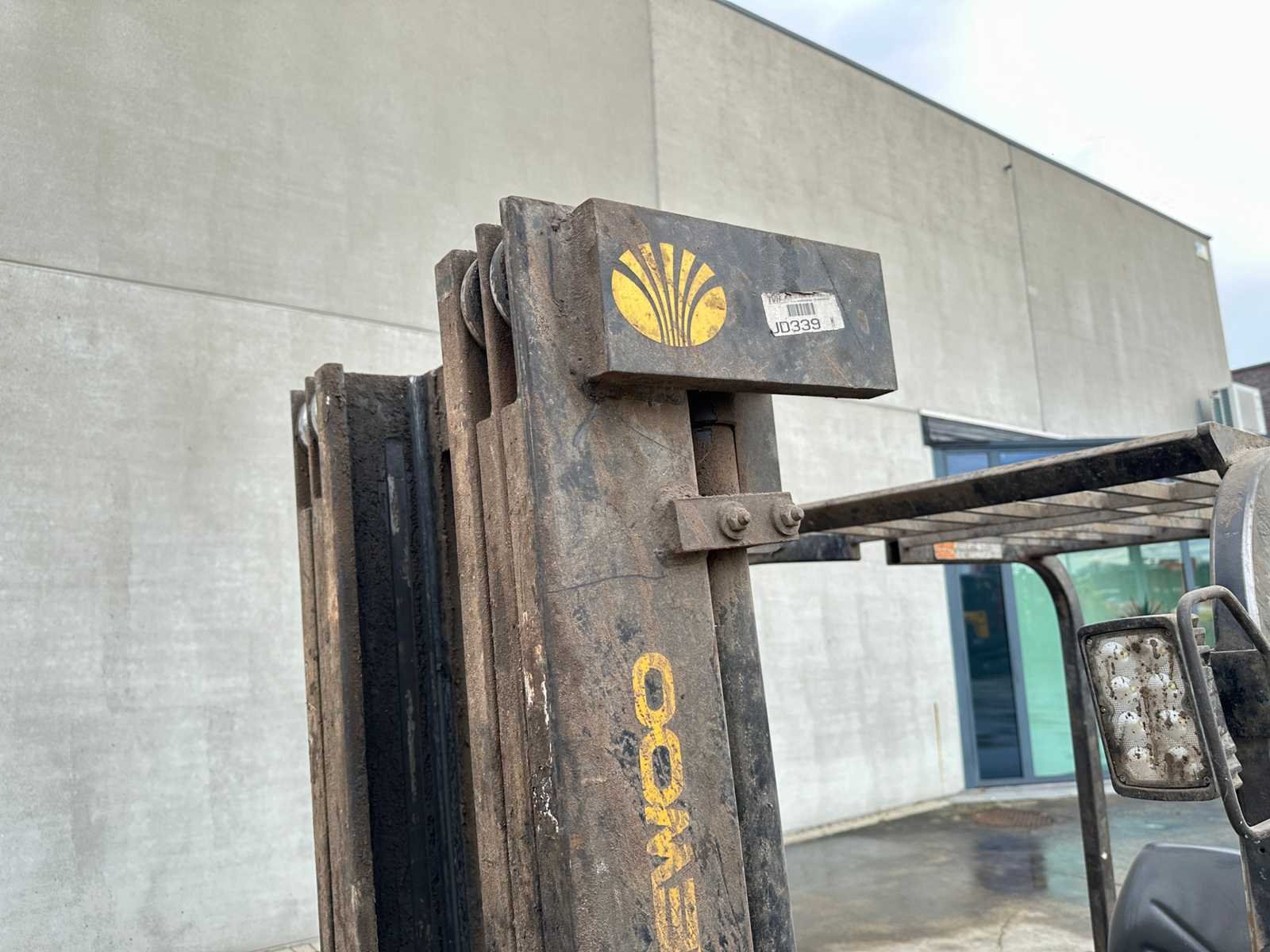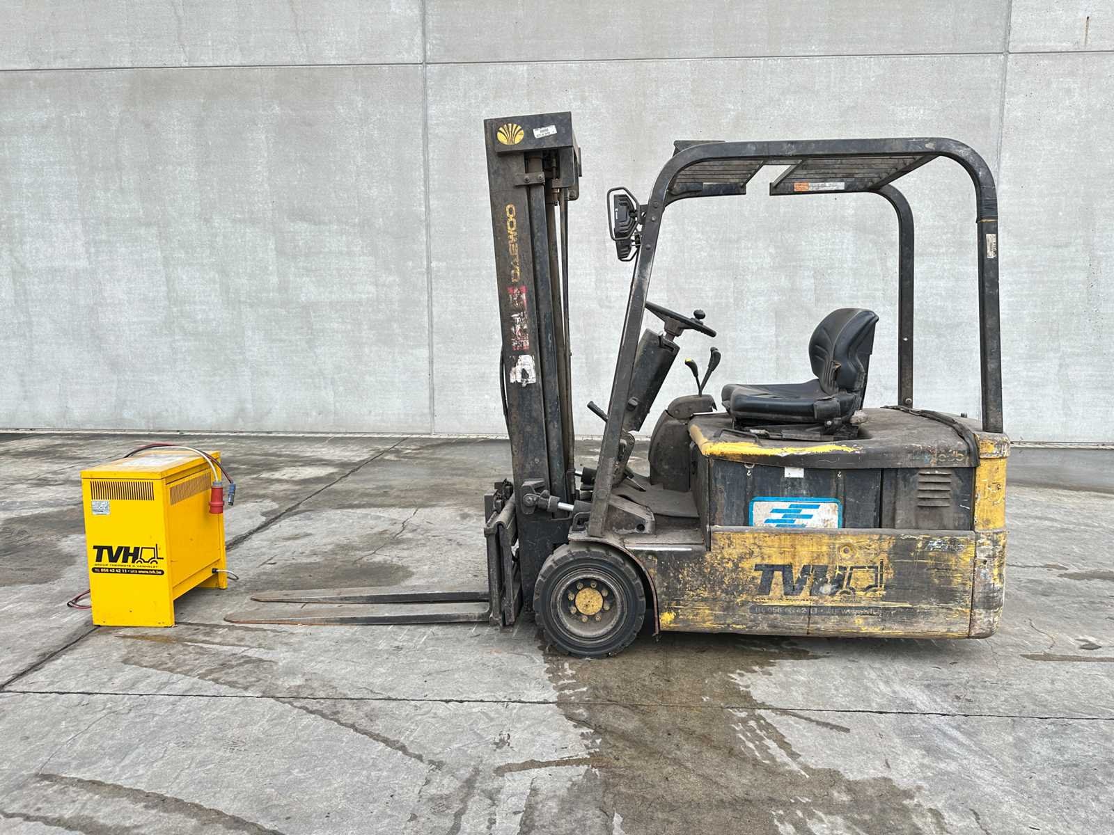 -Side shift -Inclusief lader -Geen documenten Nee Merk: Daewoo Type: B20T Bouwjaar: 2004 Serienummer: 00288 Brandstof: Accu Mast: Tripple Soort band: Vol Rubber Aantal wielen: 4 Afgelezen urenstand: 4249 Accu lader: true Side-shift: true Triple mast: true Eigen gewicht: 4545kg Hefvermogen: 2000kg Lepellengte: 1200mm Max. hefhoogte: 4750mm Vol rubber banden: true Totale afmeting L: 3400mm Totale afmeting Breedte: 1150mm Totale afmeting Hoogte: 2150mm