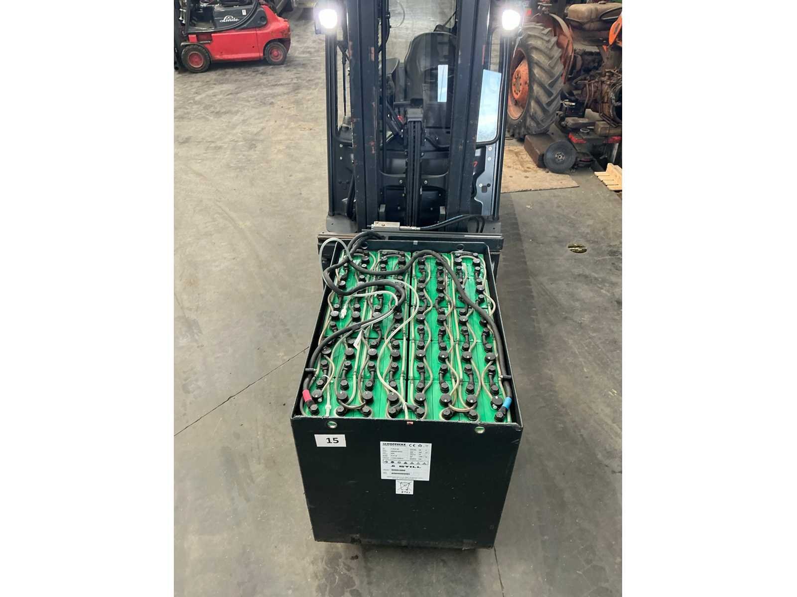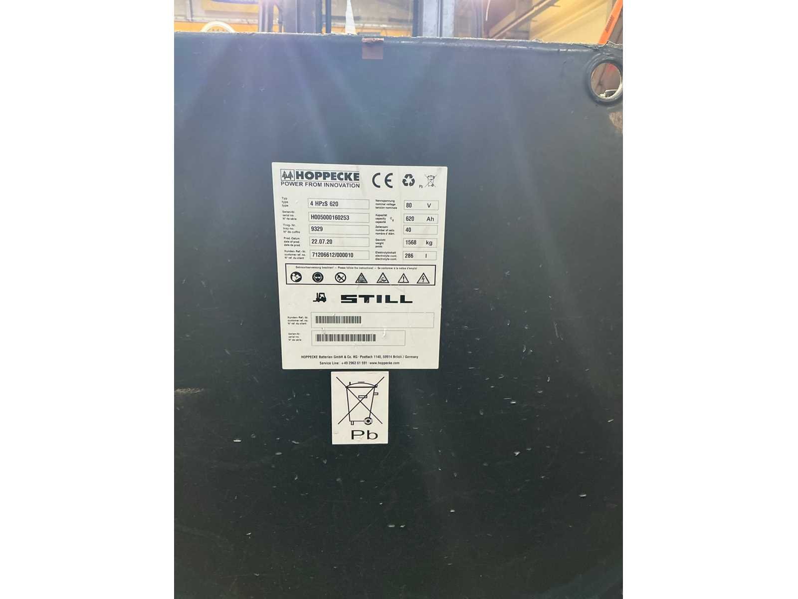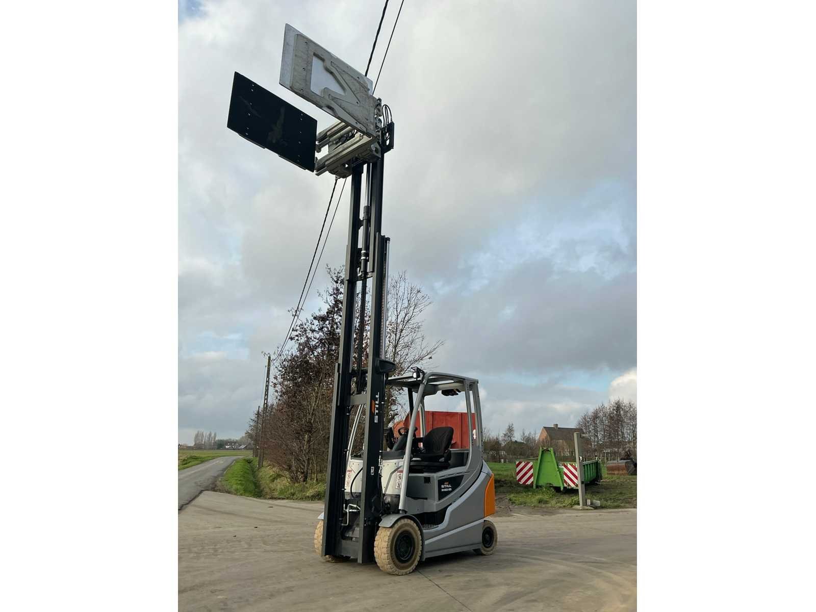 Cascade Klem met druk regeling en voorover kippen , 5 valven , led werklichten , blue spot , flash light , hoppecke trac air accu met passende lader Nee Merk: Still Type: RX60-25 Bouwjaar: 2020 Serienummer: 516301X00539 Brandstof: Elektrisch Mast: Triple Soort band: Volrubber banden Aantal wielen: 4 Afgelezen urenstand: 4500 Accu lader: true Side-shift: true Roterend vorkenbord: true Hydraulisch verstelbare lepels: true Triple mast: true Eigen gewicht: 5000kg Hefvermogen: 2500kg Lepellengte: 1400mm Min. hefhoogte: 0mm Max. hefhoogte: 4890mm Vol rubber banden: true Totale afmeting L: 3000mm Totale afmeting Breedte: 1150mm Totale afmeting Hoogte: 2250mm