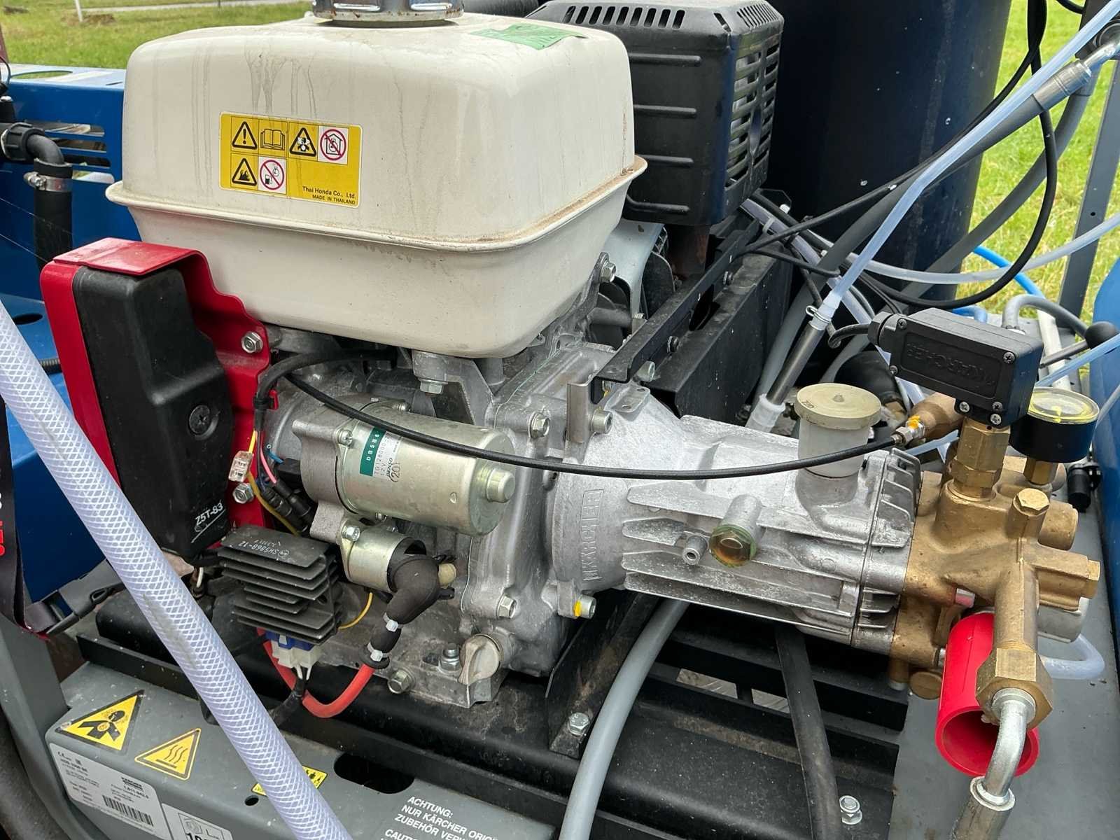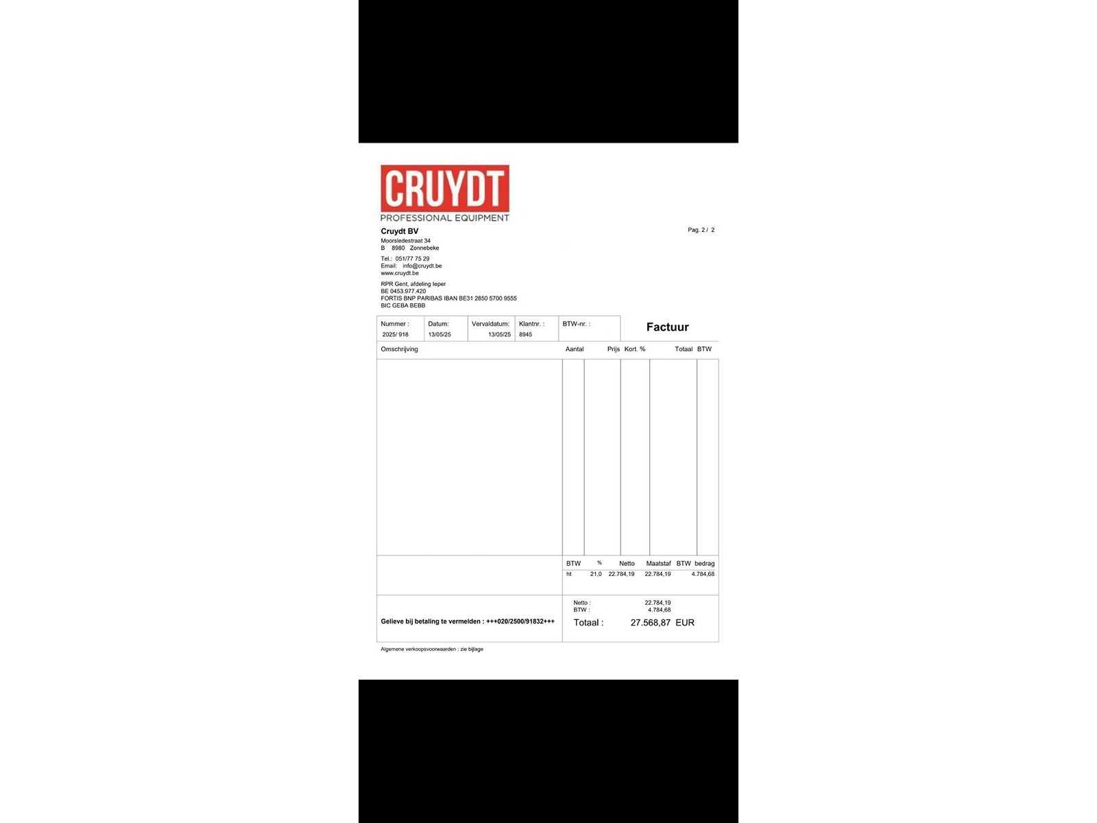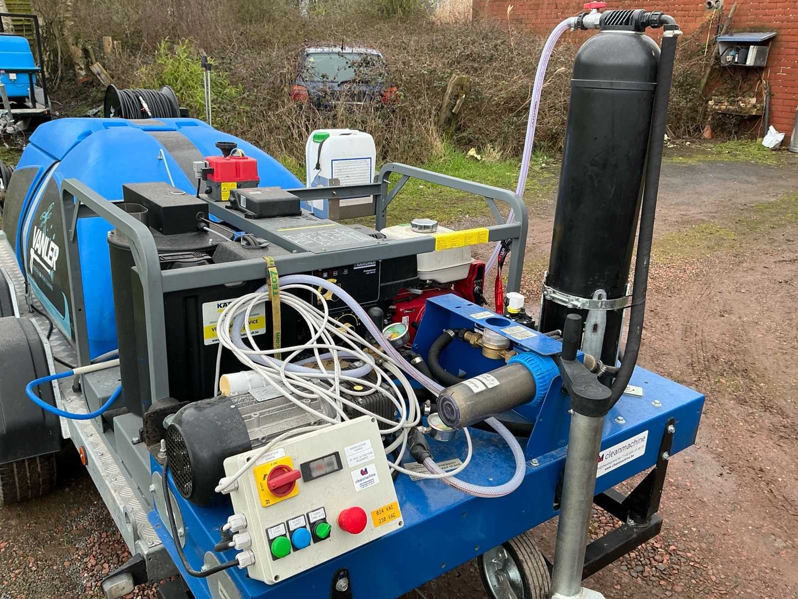MTML 2700KG - 200 bar druk - Elektronische sluiting water aan/uit (zie rode bakje op foto) - Osmose systeem geeft 12,5L/min - Gaspel 80M voor Drone - 2x 30M Gaspel aanvul - 1100L vat - Warm water tot 90° C Nee Merk: Vandaele