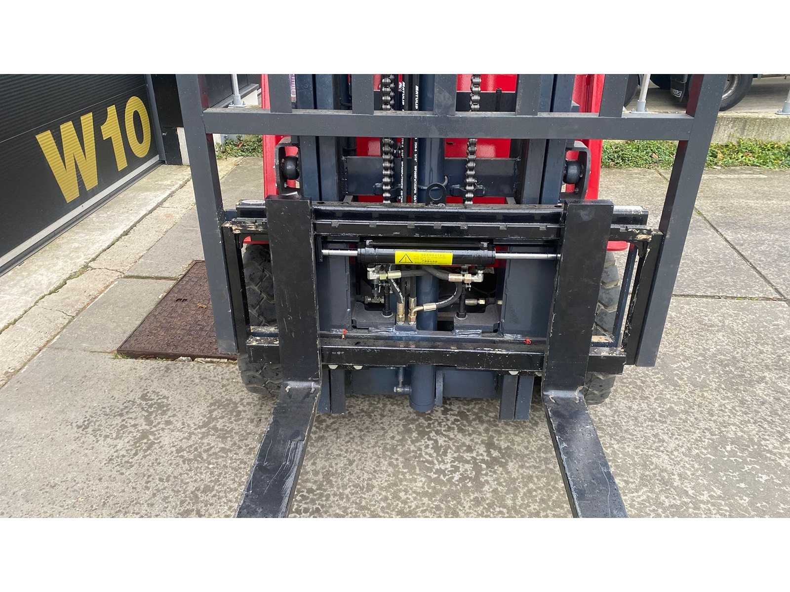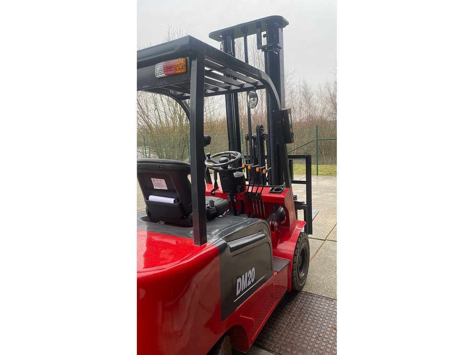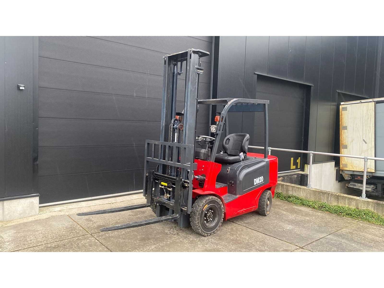Nieuw, alle functies werken incl verlichting. Onderhoudsvrij batterij. 230v lader No Merk: DMHT Type: DM20 Bouwjaar: 10-2025 Brandstof: Elektrisch Mast: duplex Soort band: volle rubber Aantal wielen: 4 Ruw terrein: true Accu lader: true Free-lift: true Side-shift: true Duplex mast: true Eigen gewicht: 2900kg Hefvermogen: 2000kg Lepellengte: 1150mm Max. hefhoogte: 4000mm Hefhoogte: 4000mm Vol rubber banden: true