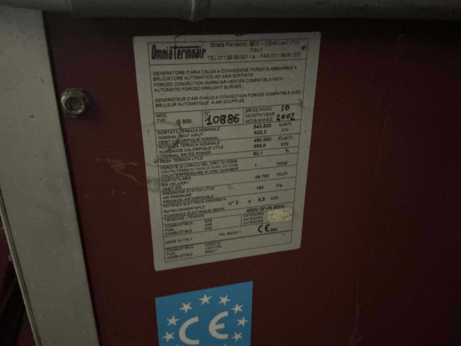 2002 omnia termoair g 500 industriële verwarmingsinstallatie