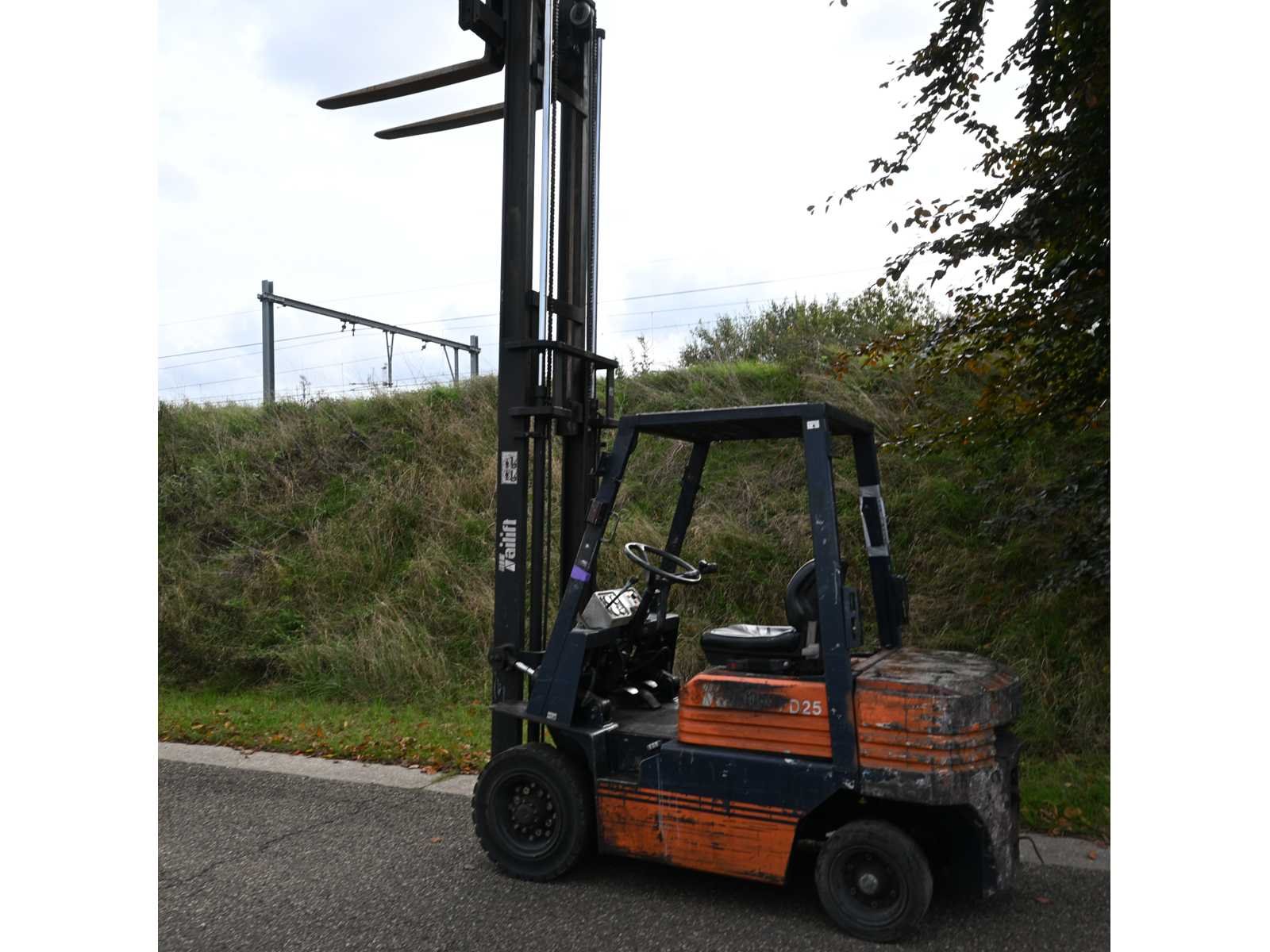 No Merk: Tailift Toyota Type: FD25 Bouwjaar: 1996 Brandstof: Diesel Mast: Standaard Aantal wielen: 4 Afgelezen urenstand: 2504 Side-shift: true Eigen gewicht: 3800kg Hefvermogen: 2500kg Hefhoogte: 4000mm Vol rubber banden: true Minimale doorrijhoogte: 2550mm Diesel: true Leveringsvoorwaarden: Gratis op vrachtwagen