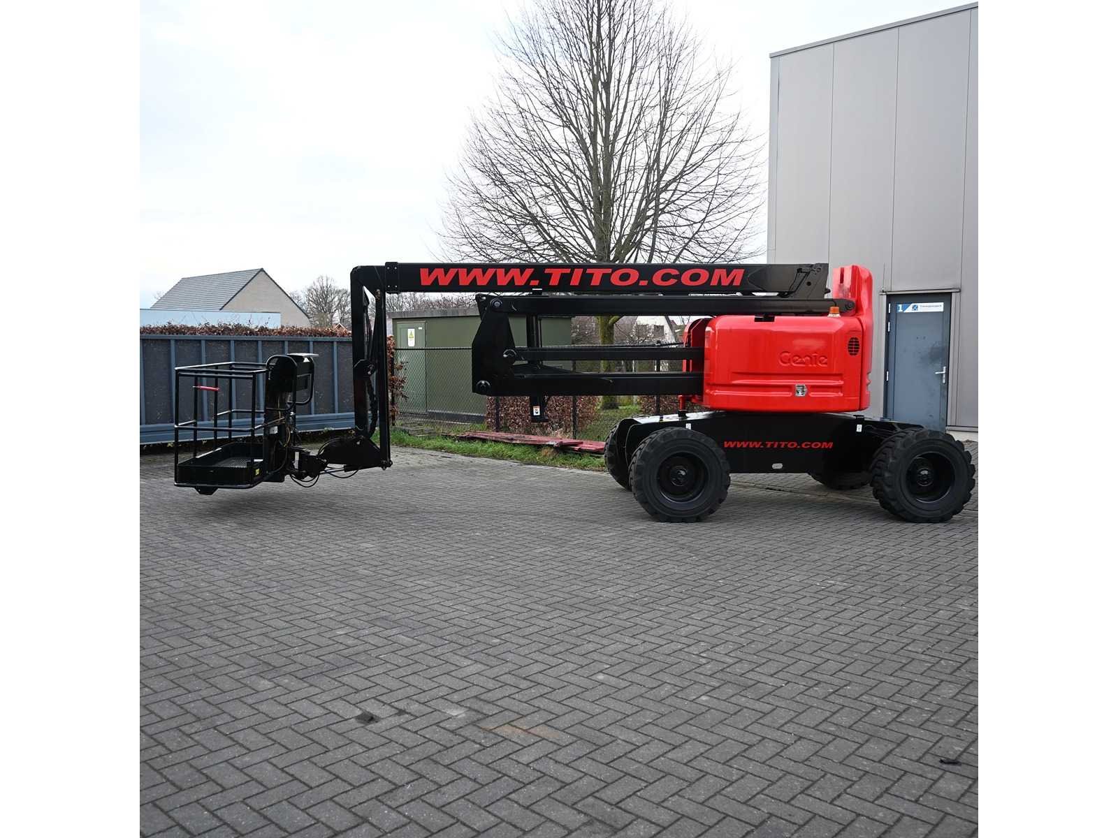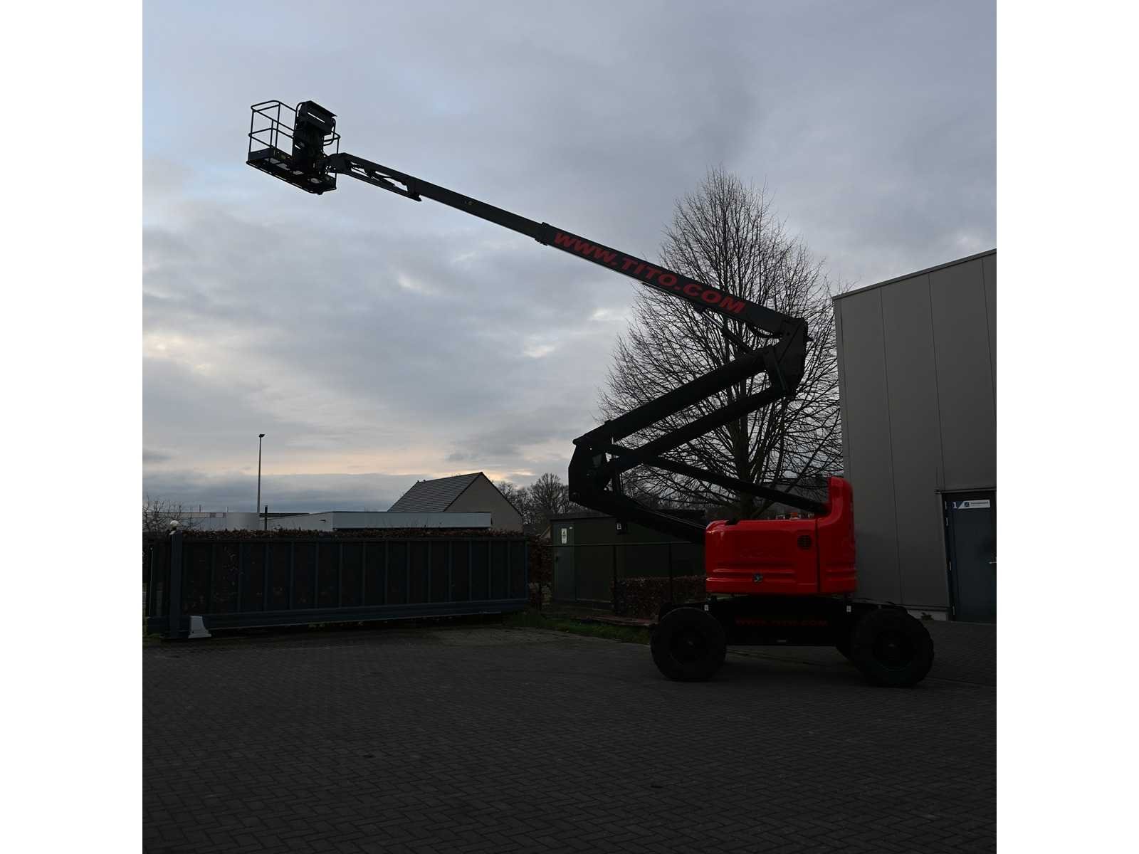 No Merk: Genie Type: Z-60/34 Bouwjaar: 2005 Diesel: true Motorvermogen (kW): 35.8kW Knikarm hoogwerker: true Werkhoogte: 20300mm Horizontale rijkwijdte: 18300mm Platform capaciteit: 227kg Afgelezen urenstand: 3180 Eigen gewicht: 10126kg Totale afmeting L: 8000mm Totale afmeting Breedte: 2450mm Totale afmeting Hoogte: 2650mm Leveringsvoorwaarden: Gratis op vrachtwagen