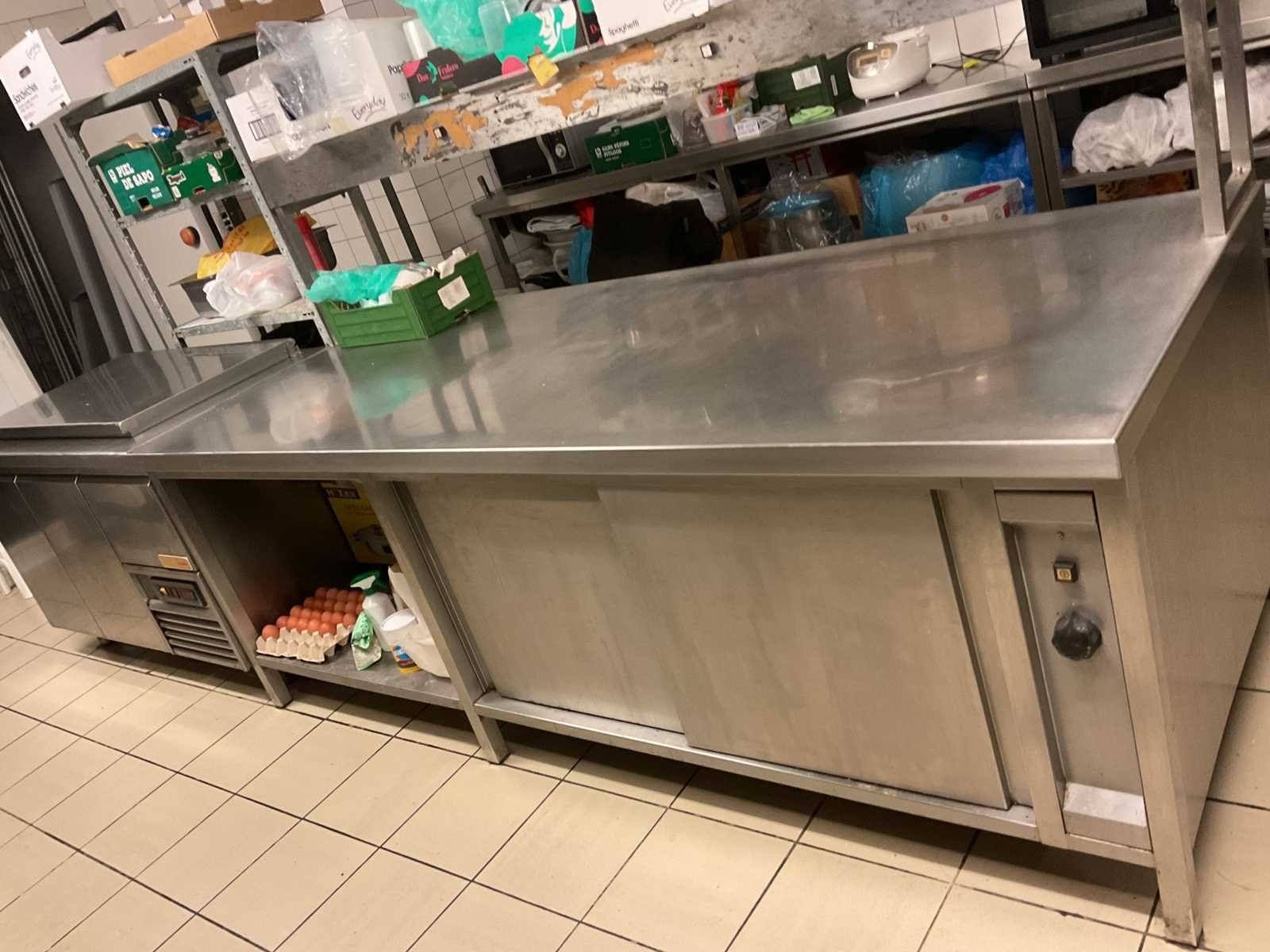 Complete inhoud restaurant inclusief potten, pannen, toebehoren etc. Foto 1: Chinese vuur: 237 x 86 x 79 Foto 2: Wastafel: 70 x70 x89 Foto 3: Frigokast: 132 x 70 x 84 (70+14 de poot) Foto 4: Kast voor warme borden: 240(90+150) x 70 x 84 Foto 5: Werktafel: 100 x 90 x 84 Foto’s 6 & 7: Lange werktafel: 510 x 67 x 90 Foto 8: Ruben’s gasfornuis: 117 x 80 x 8 Foto 9: Ruben’s friteuse: 100 x 80 x 85 Foto 10: Frigo kamer Foto 11: Diepvries kamer Foto 12: Afwas tafel: 225 x 70 x 89 Foto 13: Afwas tafel deel 2: 110x 70 x 89 Foto 14: Tafelpoten: 28 stuks, 73 cm hoogte ,Tafelblad: 24stuks, 84 x 84 Foto’s 15 & 16: Borden: 250 stuks, 29 cm / 60 stuks, 27 cm Foto 17: Eternum inox bestekken: grote messen: 130 grote vorken: 220 Kleine messen: 110 Kleine vorken: 70 Grote lepels: 340 Nee