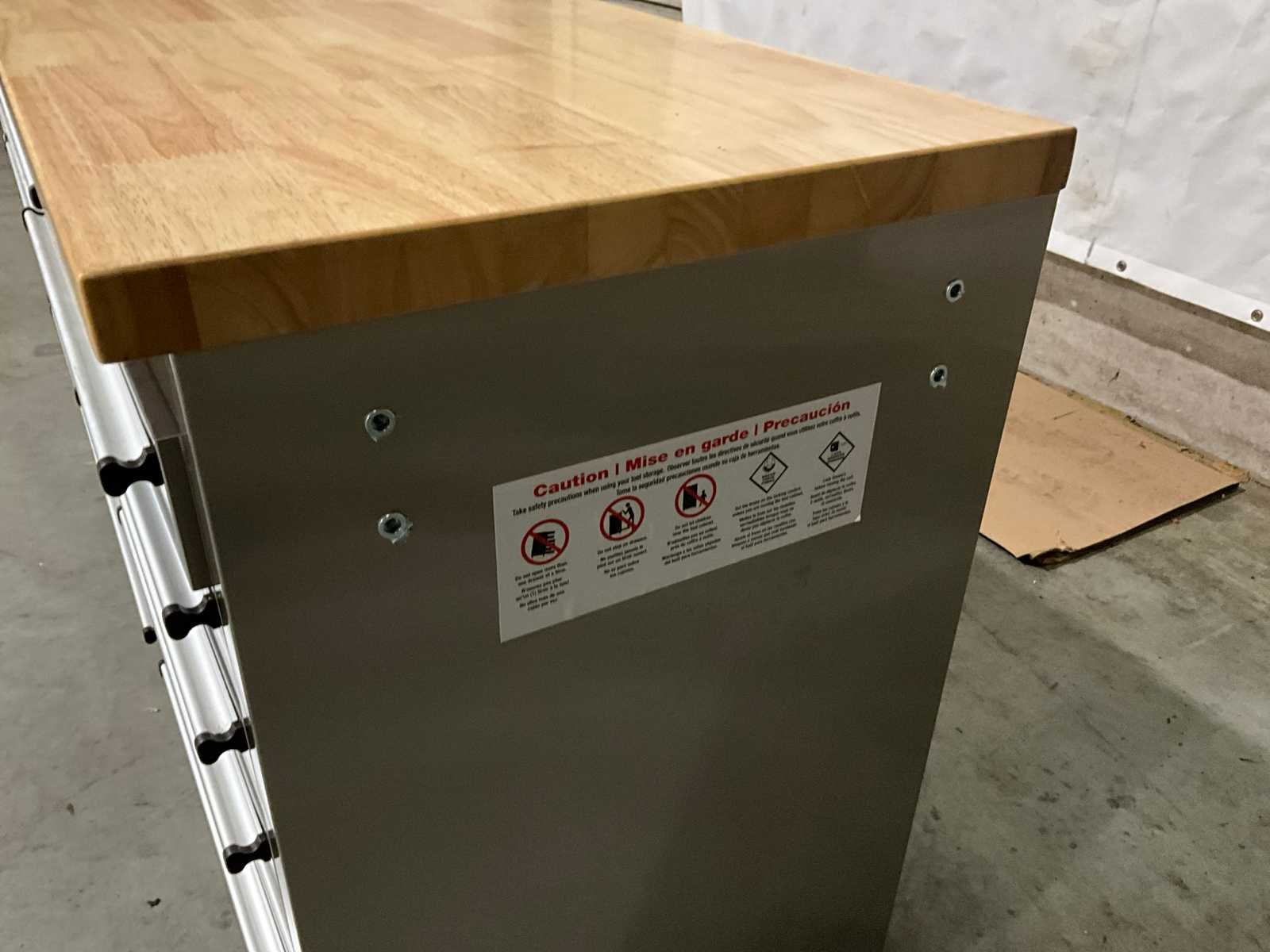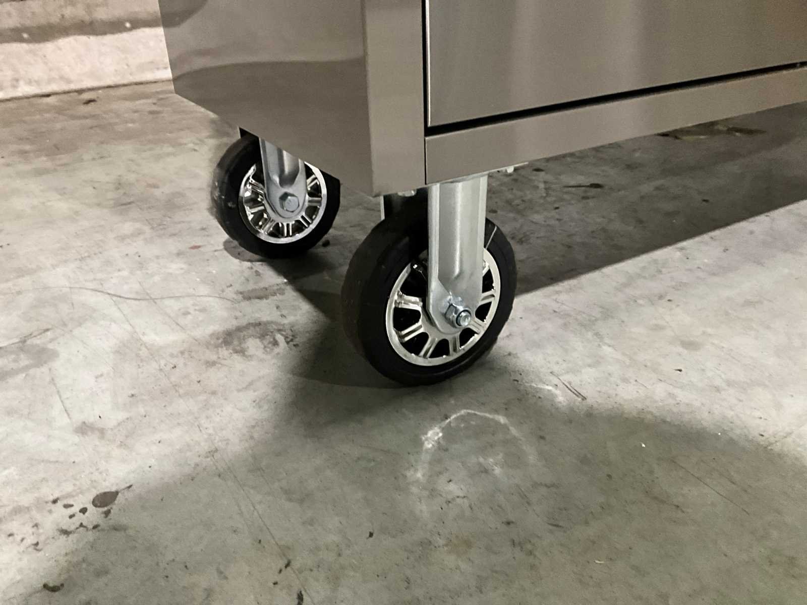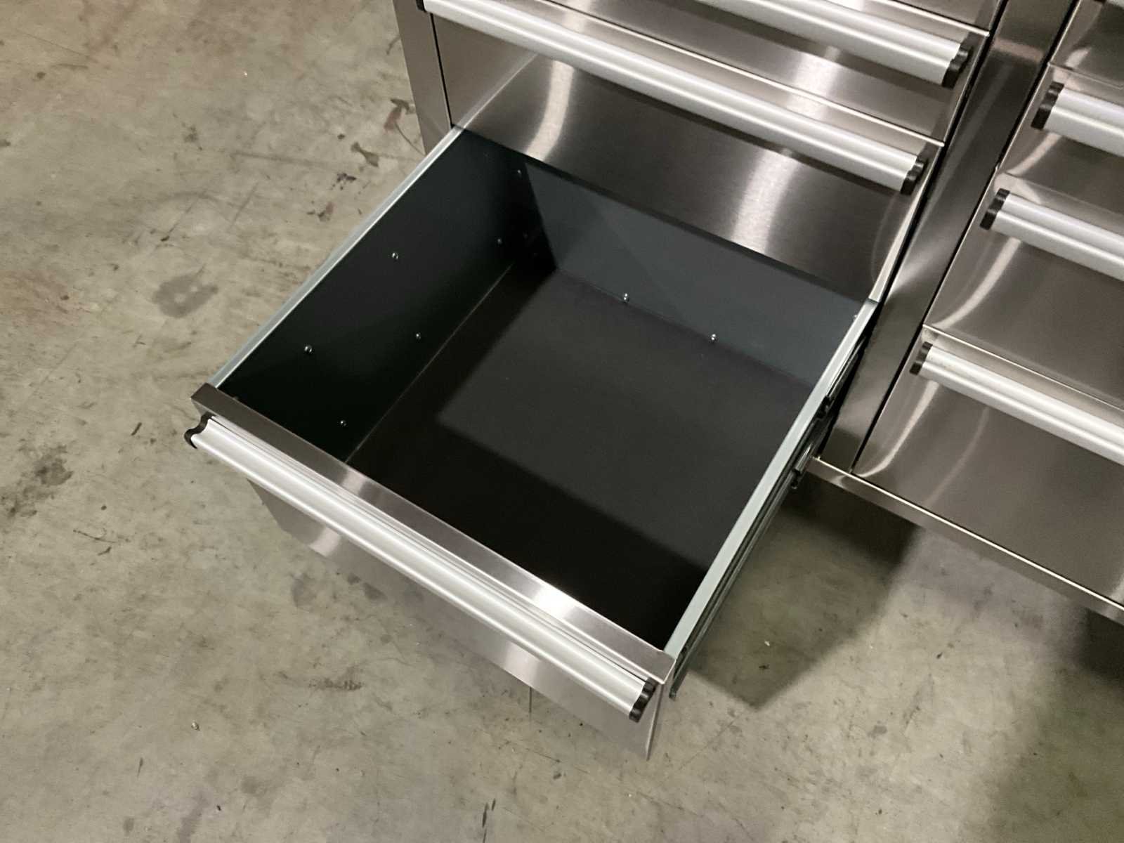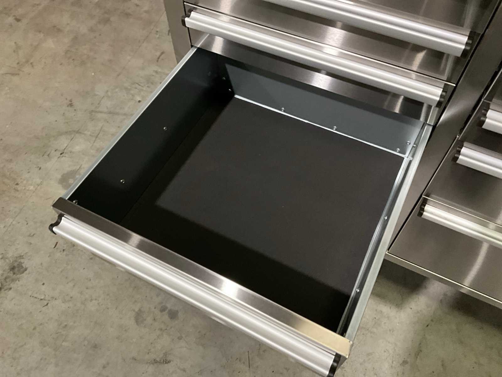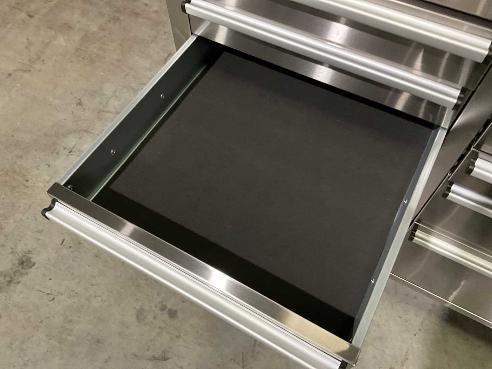 RVS gereedschapwagen - 2 wznkwielen en 2 vaste wielen - rubberwood werkblad - 6 lades : 40x40x8 cm - 2 lades : 40x40x15,5 cm - 2 lades 40x40x23,5 - 3 lades : 86x40x8 cm - 1 lade : 86x4015,5 - 1 lade 86x40x23,5 - slot inbegrepen - 2 handvaten inbegrepen - laadmogelijkheden aanwezig Nee Merk: Optimus Lengte: 184cm Breedte: 49cm Hoogte: 95cm Materiaal: RVS