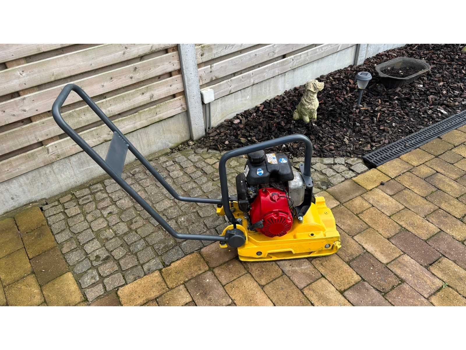 Type: Voorwaarts lopende trilplaat • Motor: Honda 4-takt benzinemotor (waarschijnlijk GX160 of GX200) • Start: Handstart (trekkoord) • Toepassing: Bestrating, opritten, terrassen, sleuven • Brandstof: Benzine (Euro 95) • Olie: 4-takt motorolie • Gewicht: ± 50 a 60 KG • Plaatbreedte: 300 • Centrifugaalkracht: ± 12KN • Snelheid: ± 20–25 m/min • Aantrillen van klinkers • Verdichten van funderingslaag (stabilisé, gebroken steen) • Kleine asfaltwerken • Tuin- en opritwerken FUNCTIONEEL Nee Merk: Wacker Neuson Bedrijfsgewicht: 65kg Grondplaat afm. b: 300mm Centrifugale kracht: 12kN Merk motor: Honda GX100 Motorvermogen (kW): 2.7kW Brandstof: Benzine Eigen gewicht: 65kg Leveringsvoorwaarden: Niet gefundeerd - onverpakt