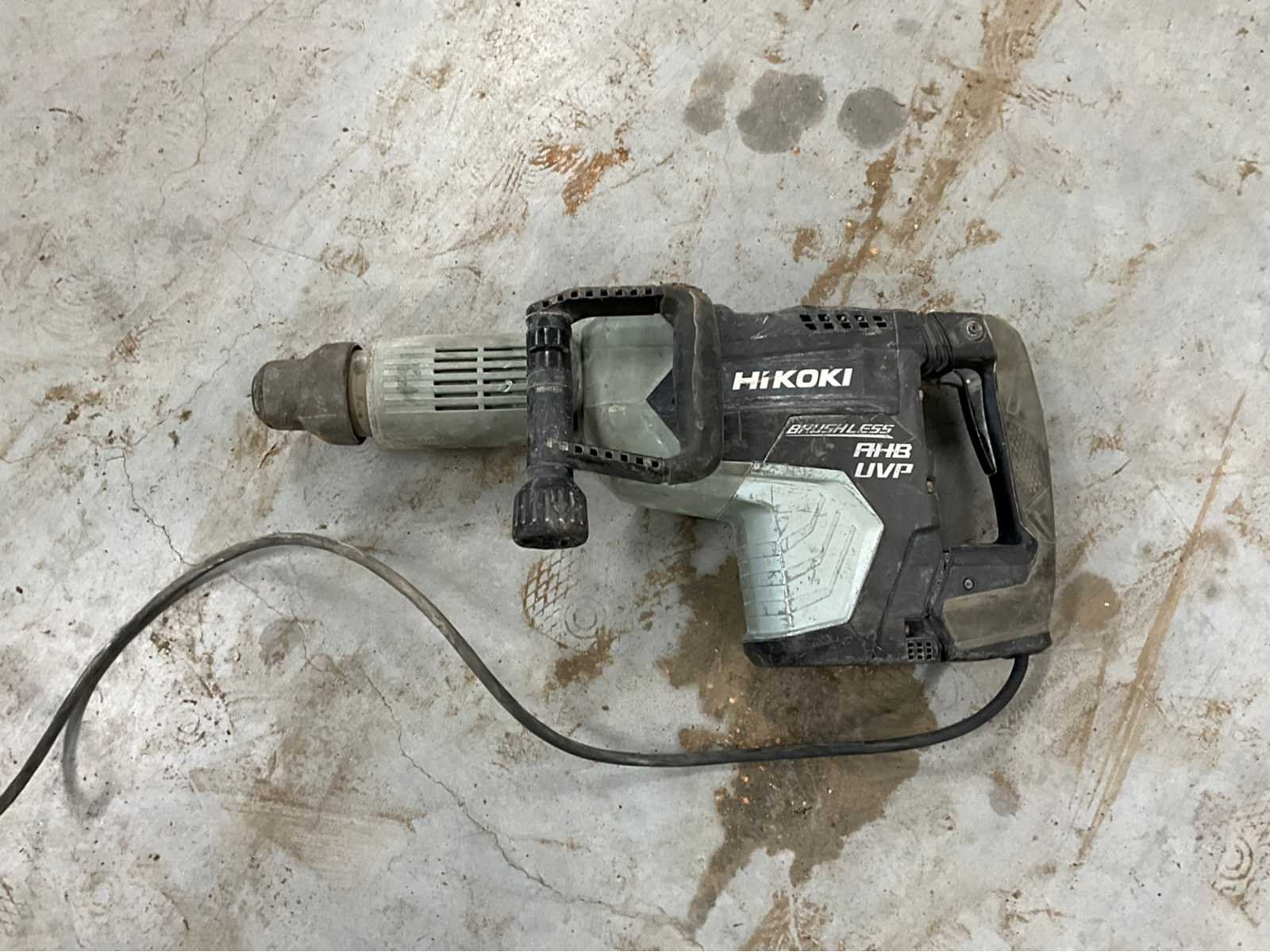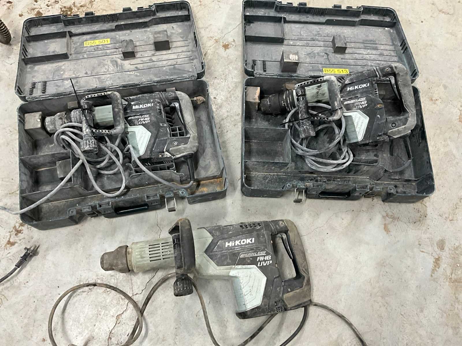 3 krachtige HiKOKI breekhamers, waarvan 2 volledig werkend en 1 defect (voor onderdelen of herstelling, 1 van de exemplaren in koffer). - inclusief 2 opbergkoffers Nee Merk: Hikoki