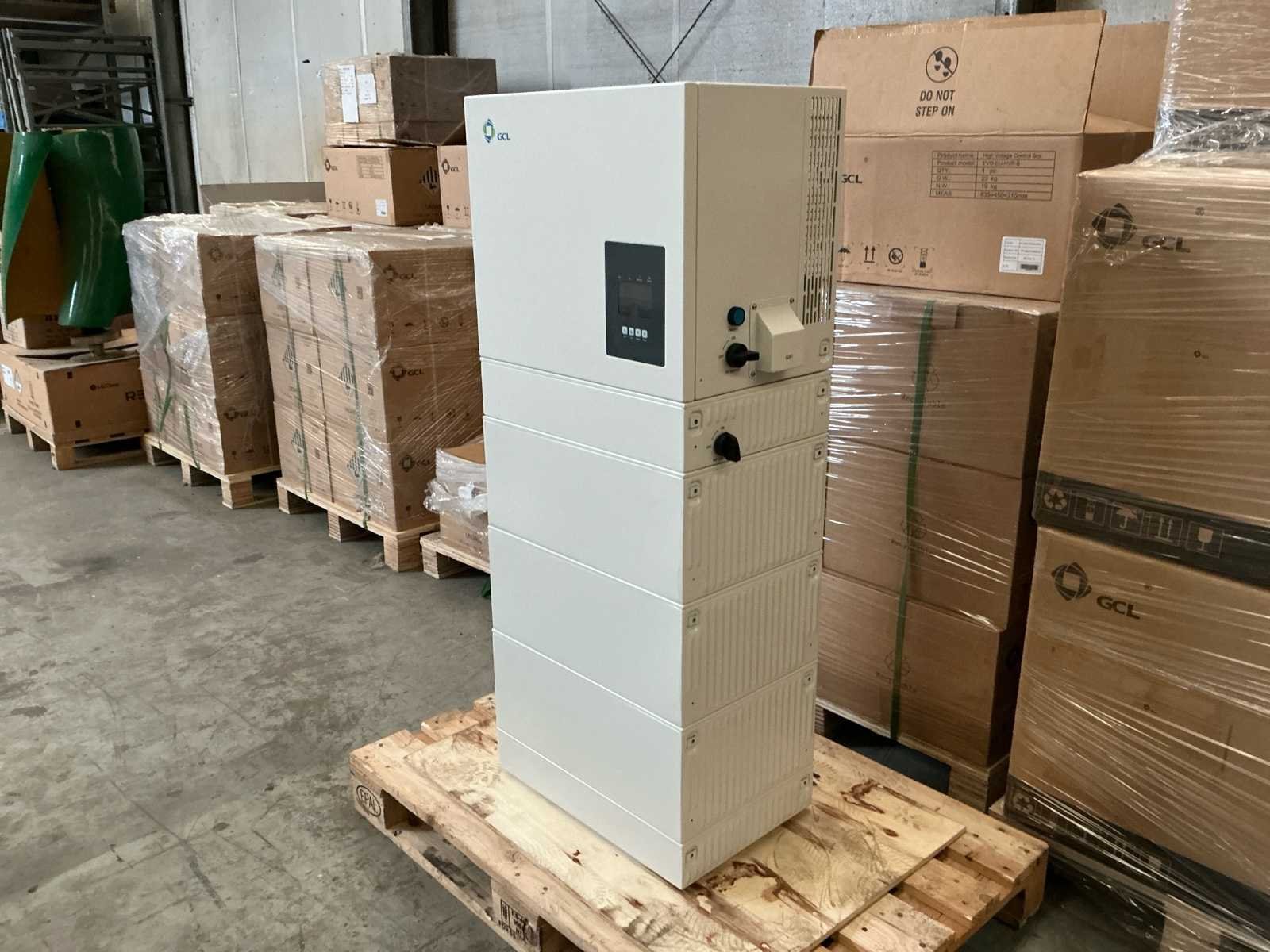 Professioneel GCL energieopslagsysteem bestaande uit een 3-fase hybride omvormer type EVO-EU-HVI-10P3 in combinatie met modulaire LiFePO4 hoogspanningsbatterijen type EVO-EU-HVP-4kWh. In totaal zijn 10 volledige en identieke units beschikbaar. Deze systemen zijn ontworpen voor residentiële en commerciële toepassingen waar betrouwbare energieopslag en slimme energiesturing centraal staan. De hybride omvormer ondersteunt zowel PV-input als netkoppeling en batterijopslag, waardoor optimale zelfconsumptie en back-upfunctionaliteit mogelijk zijn. Met een nominaal AC-vermogen van 10 kW per unit en een maximaal PV-ingangsvermogen van 13 kW biedt dit systeem krachtige prestaties binnen een compact en robuust ontwerp. De geïntegreerde LiFePO4-batterijmodules staan bekend om hun lange levensduur, hoge veiligheid en thermische stabiliteit. Elke module levert circa 4,09 kWh opslagcapaciteit en is geschikt voor intensieve laad- en ontlaadcycli. Dankzij IP65-classificatie zijn zowel omvormer als batterij geschikt voor binnen- en beschermde buitenopstelling. De units zijn voorzien van display met bedieningsinterface, statusindicatie en geïntegreerde WiFi-communicatie voor monitoring. De modulaire opbouw maakt schaalbare opslagconfiguraties mogelijk. Een hoogwaardige en toekomstgerichte energieoplossing, ideaal voor installateurs, projectontwikkelaars of bedrijven die inzetten op duurzame energie en energieonafhankelijkheid. Beschikbaar in partij van 10 complete systemen. Deze units zijn door een ontbrekend certificaat niet toegelaten voor gebruik in de Benelux. In andere landen zijn deze wel perfect bruikbaar. No Merk: GCL 3-fase: true