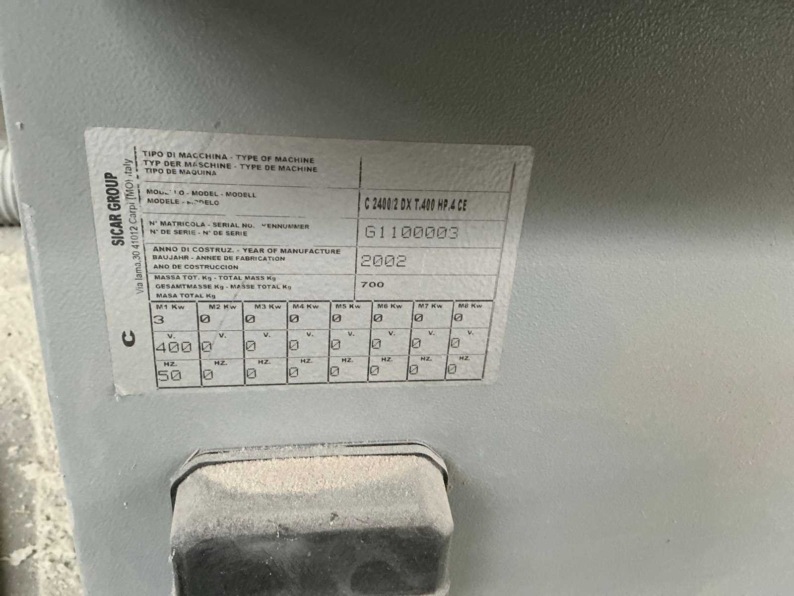 Nee Merk: Sicar Type: C2400 Bouwjaar: 2002 Serienummer: G1100003 Werkbreedte: 380mm Aansluiting: 400V Machinegewicht: 700kg Afmeting l: 1200mm Afmeting b: 205mm