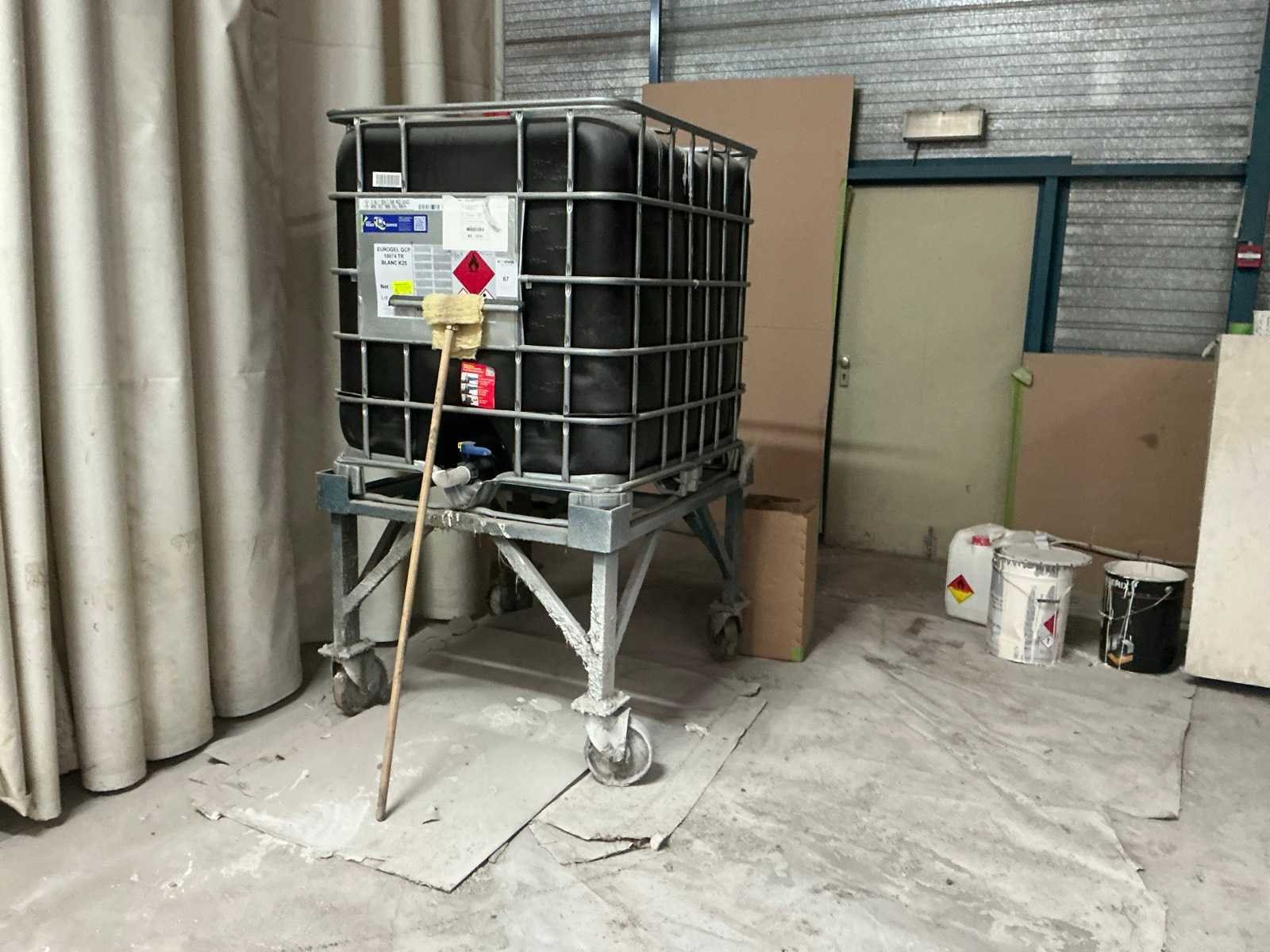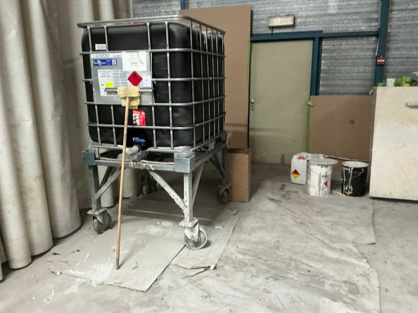 Ibc container op mobiel metalen onderstel