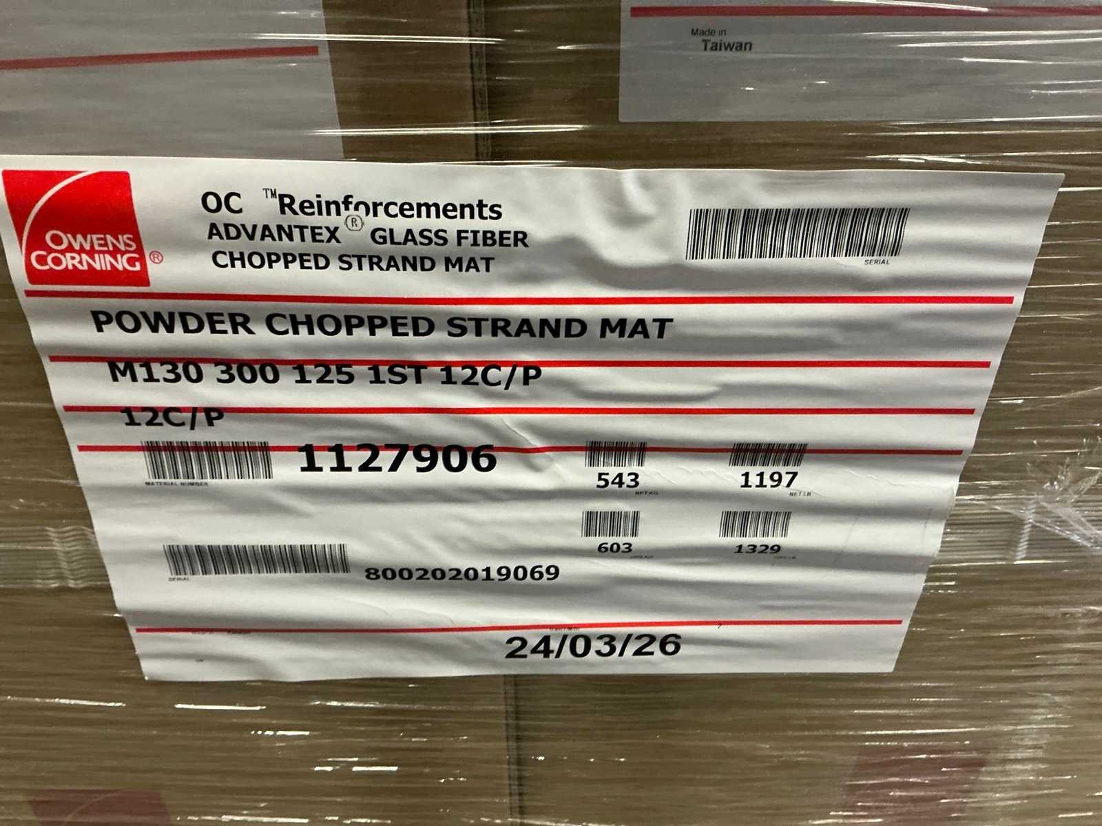 Circa 543 lopende meter in 12 dozen, gewikkeld op pallet Nee Merk: Owens Corning Gewicht: 603kg Type: M130 300 125