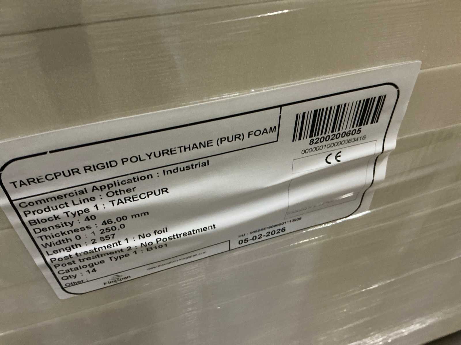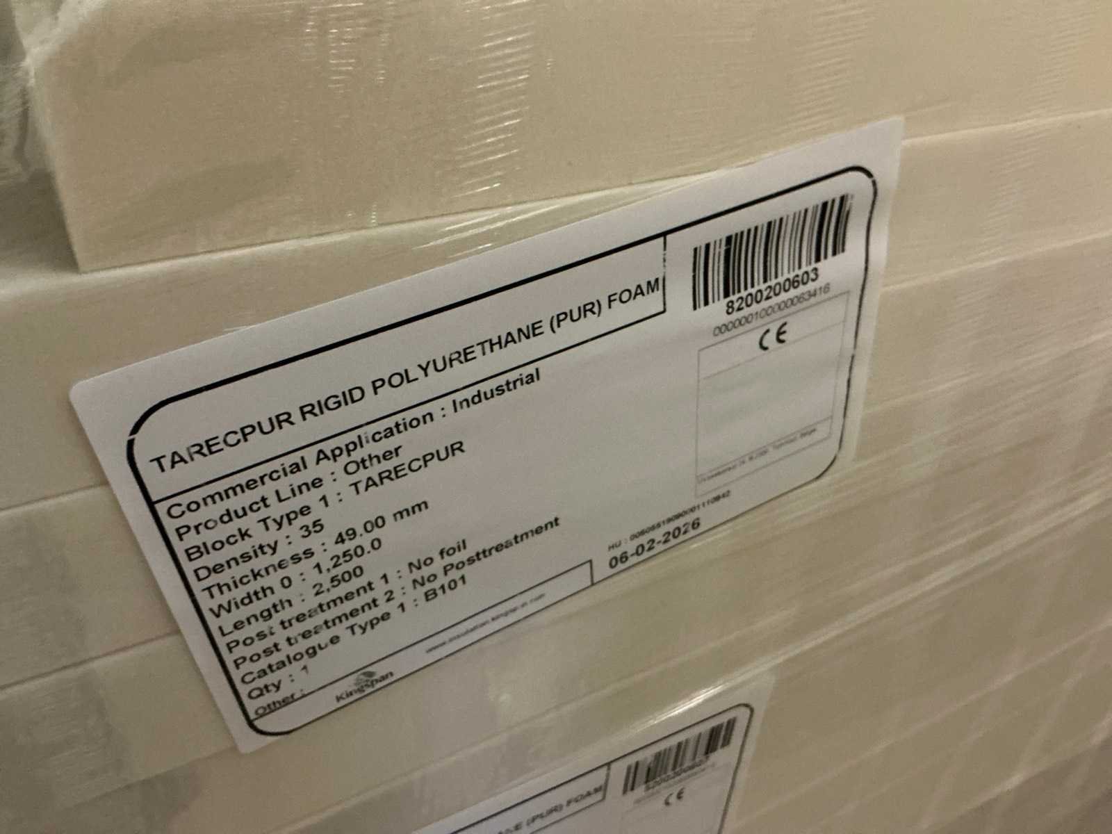Diverse diktes. Gestapeld op 5 pallets. Nee Merk: Kingspan Model: PUR 35 Lengte: 246.8cm Breedte: 125cm