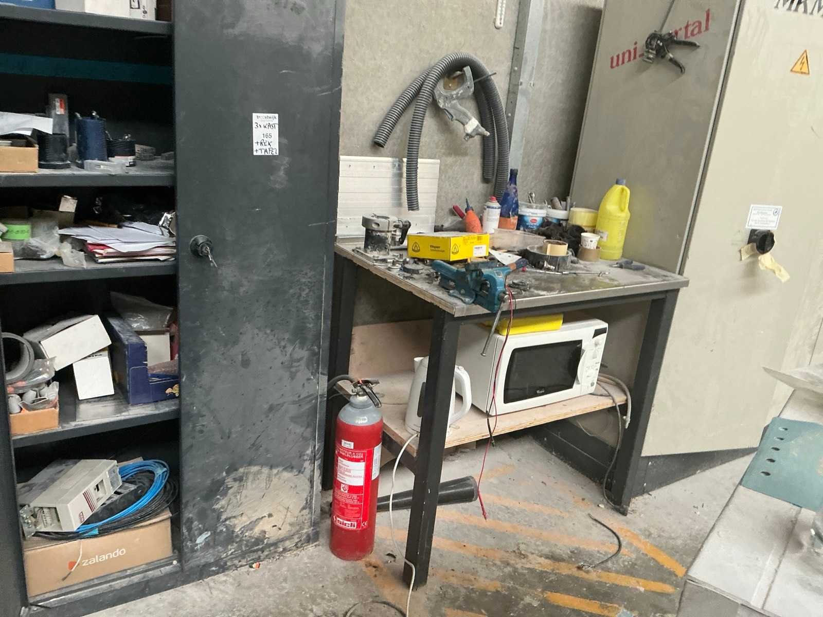 Inclusief: metalen tafel, microgolfoven, magazijnrek, diverse onderdelen. Enzovoort Nee Lengte: 40cm Breedte: 90cm Hoogte: 195cm