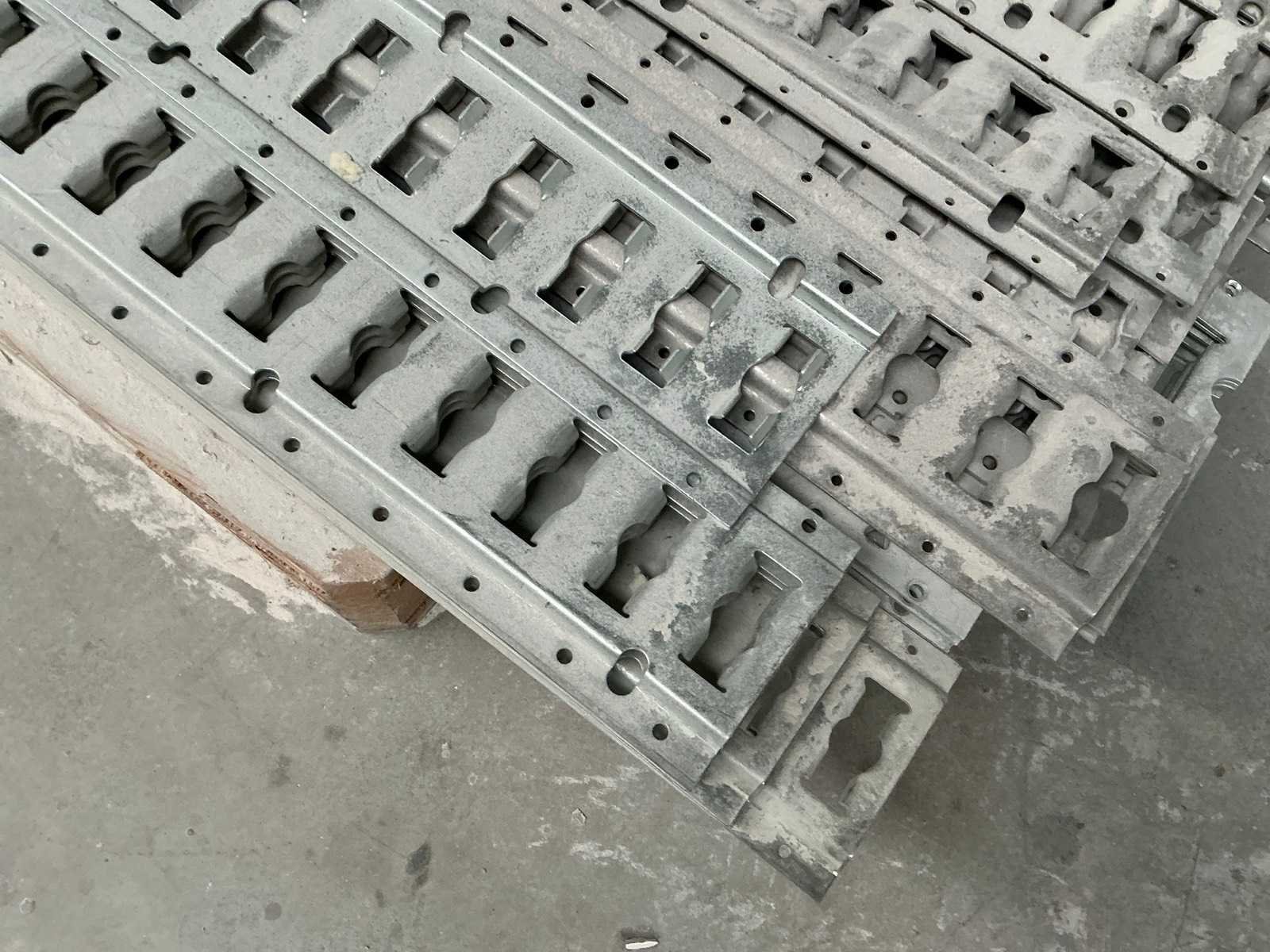 Inclusief houten krat met bandijzer en partij aluminium schuifgekeiders voor koeltransport lengte circa 700 cm. Nee
