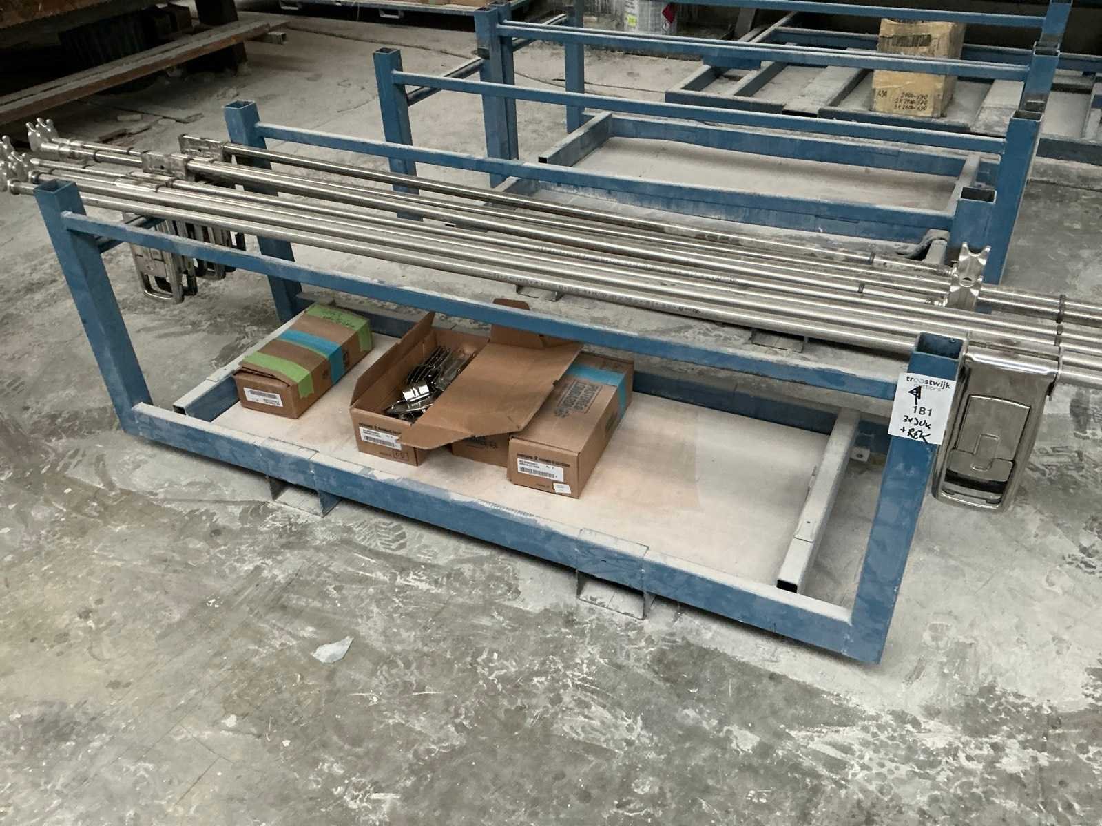 Inclusief kleine Draagarmstelling met inhoud. Voorzien van heftruck kokers. Nee Afmeting l: 610mm Afmeting b: 1730mm Afmeting h: 680mm Staal: true