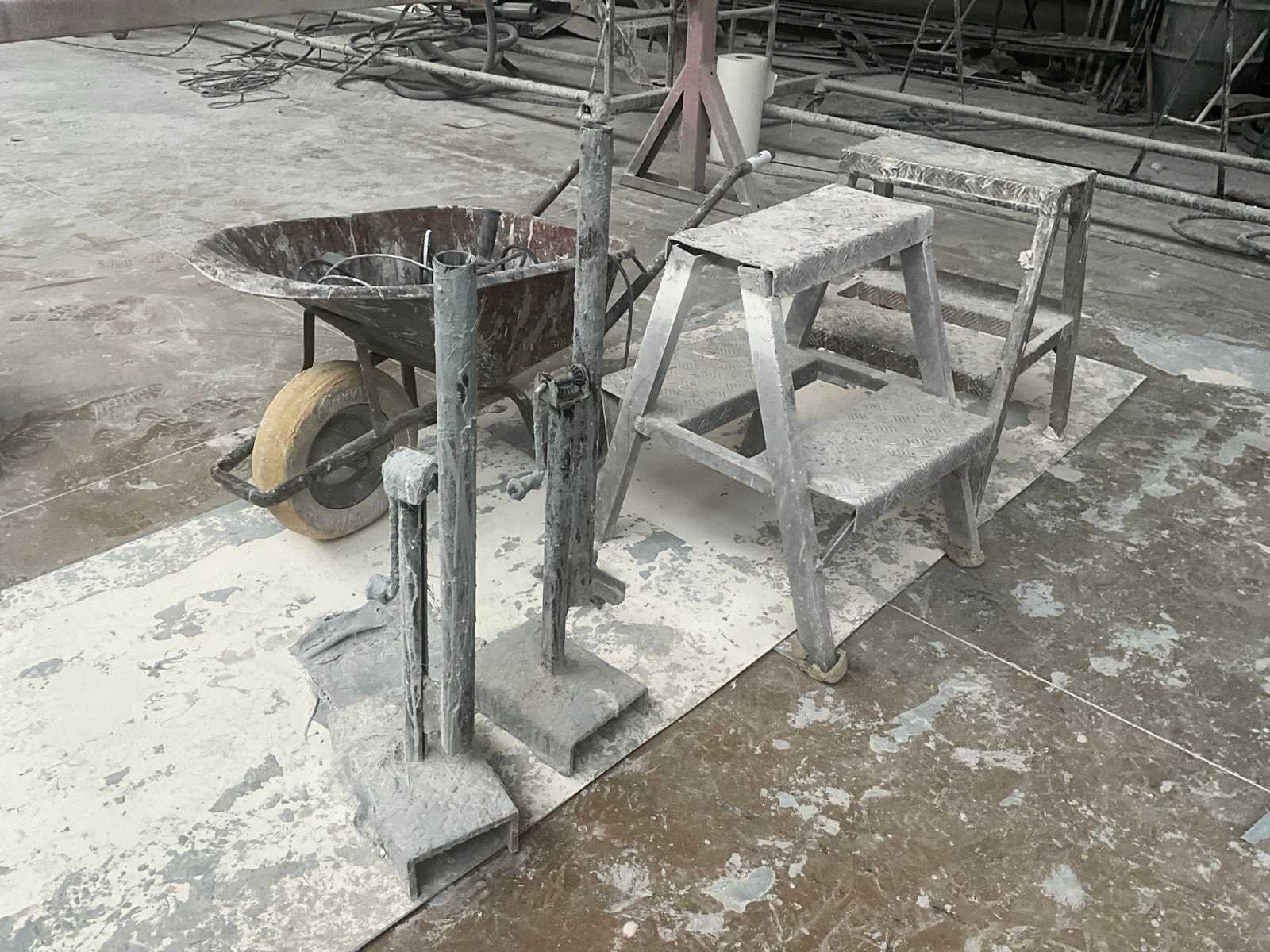 Bestaande uit 2x alu opstap, 2x domme kracht, kruiwagen inhoudende 2x haakse slijptol Bosch Nee