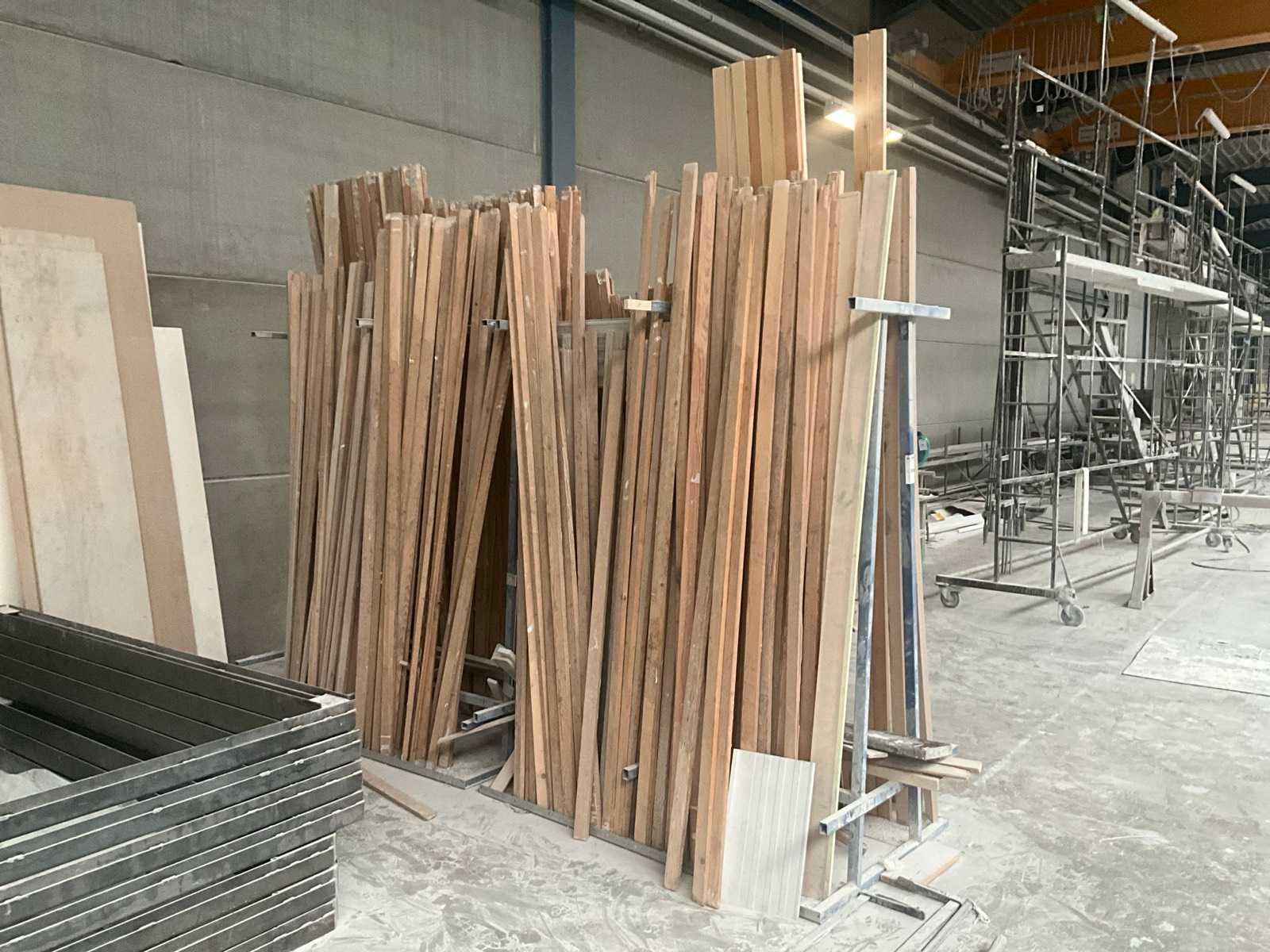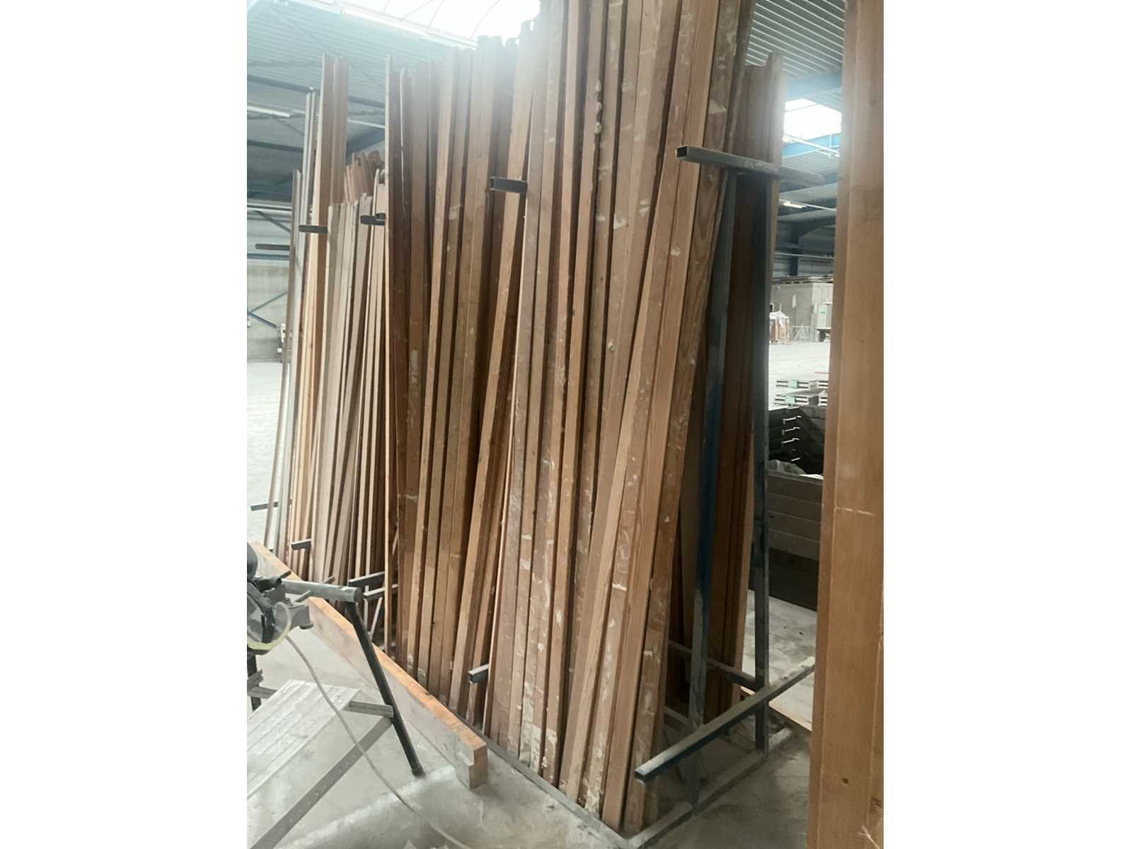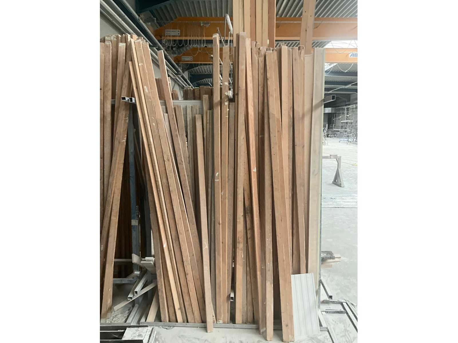 Partij planken waaronder met Max lengte 300cm, liggende in 2 metalen bokken met afmetingen 175 x 100 x 204cm Nee