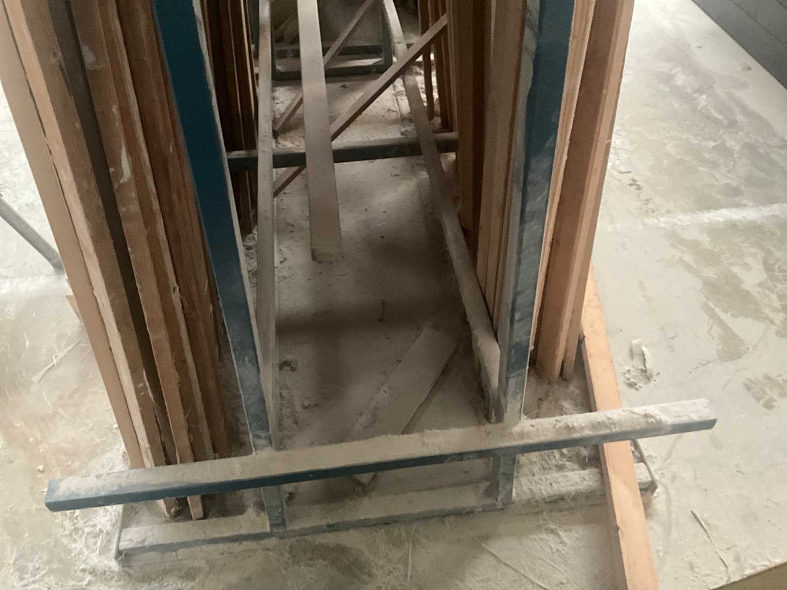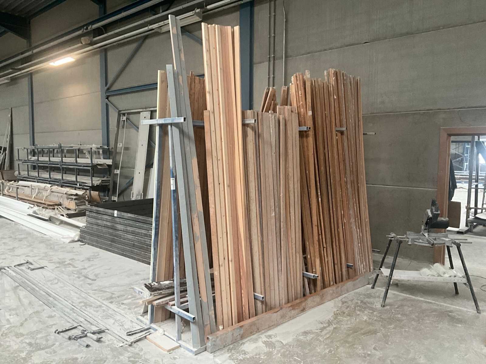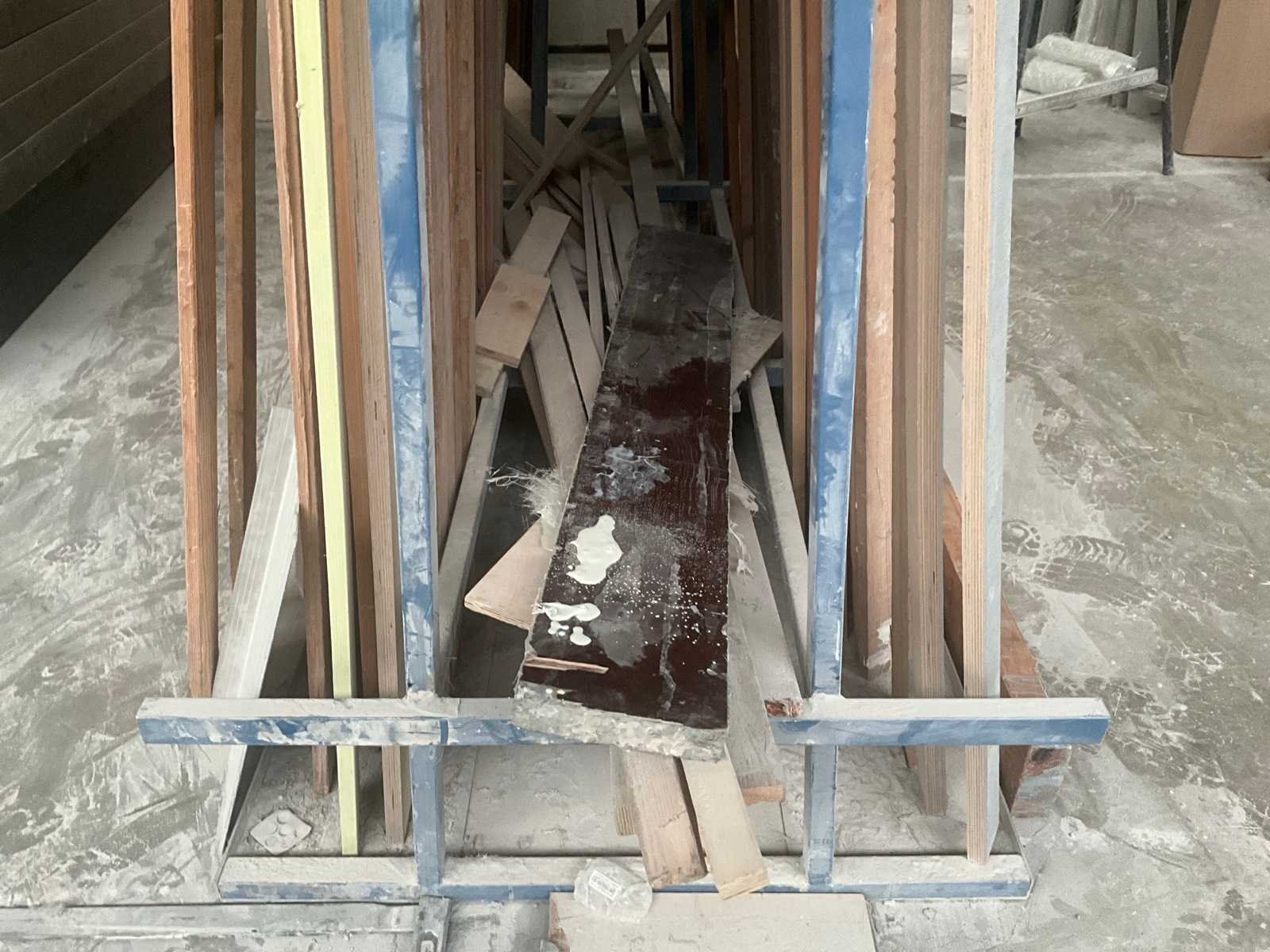 Partij planken waaronder met Max lengte 300cm, liggende in 2 metalen bokken met afmetingen 175 x 100 x 204cm Nee
