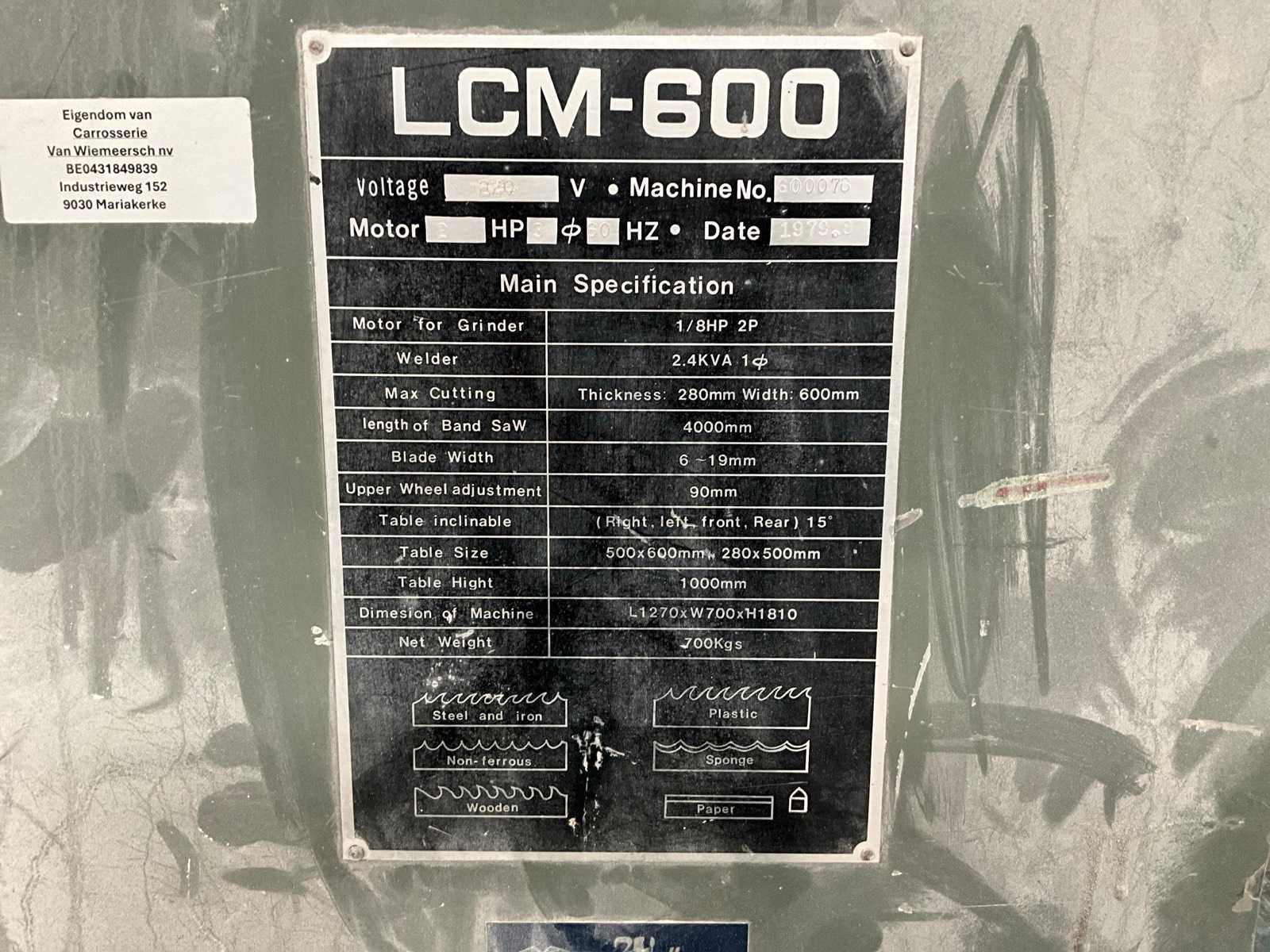 1979 leten lcm-600 verticale bandzaagmachine