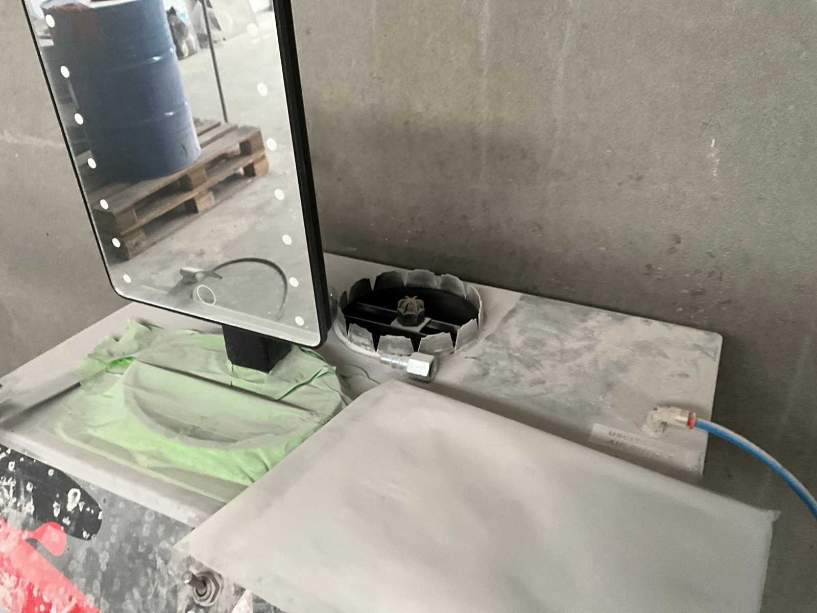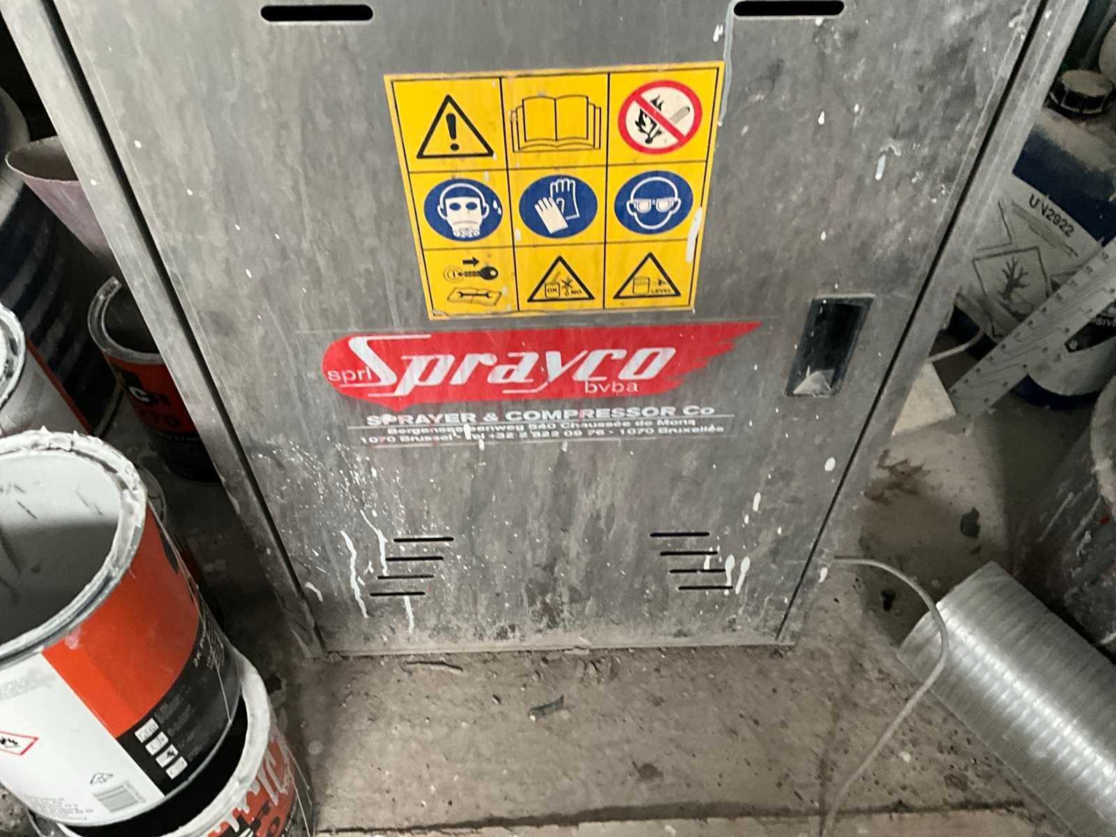 Compleet met partij lege blikken en 3 vaten mogelijk inhoudende zeep, rapid dry, spoel thinner, op 3 vatentrolleys en 3 lege vaten. Nee Merk: Sprayco Type: RosAuto