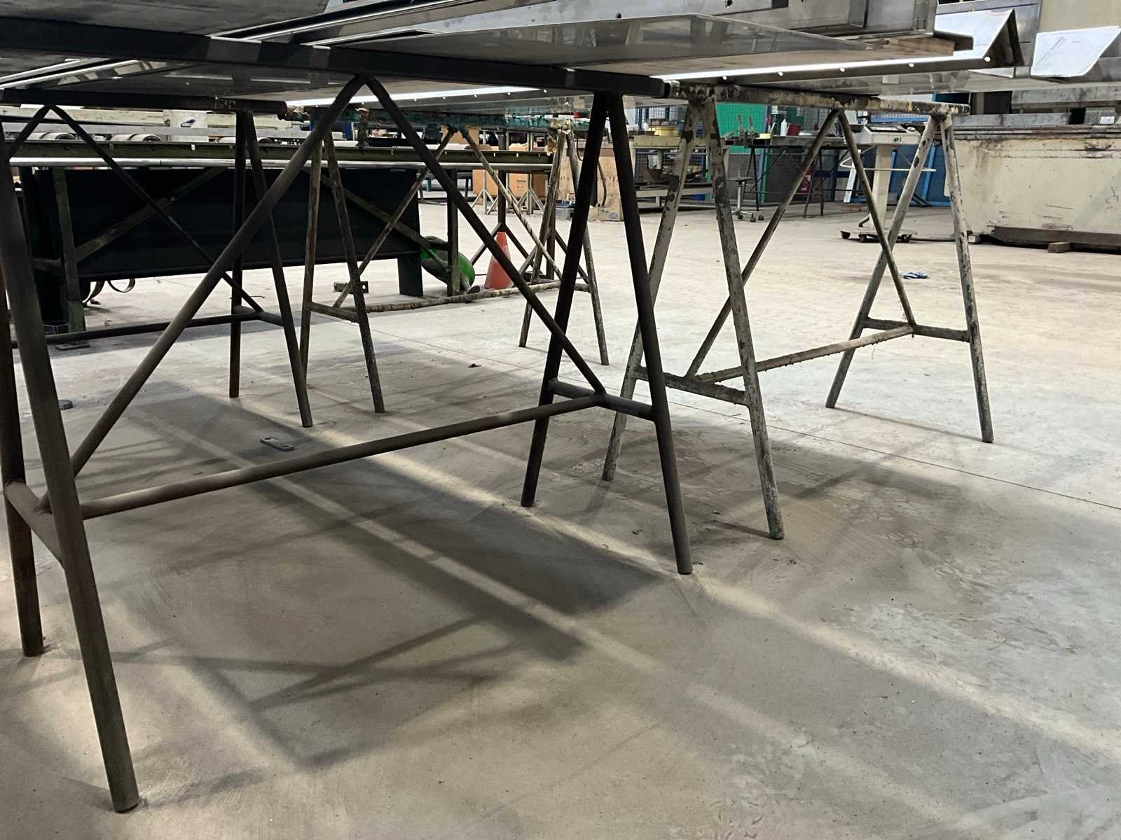 Bestaande uit 1x profielijzeren montage tafel mobiel, 4x ijzeren schaal breedte 1200 mm, +3x ijzeren kader tegen muur afmetingen 3200/2800x2700 mm Nee Totale afmeting L: 4300mm Totale afmeting Breedte: 2700mm Totale afmeting Hoogte: 1200mm