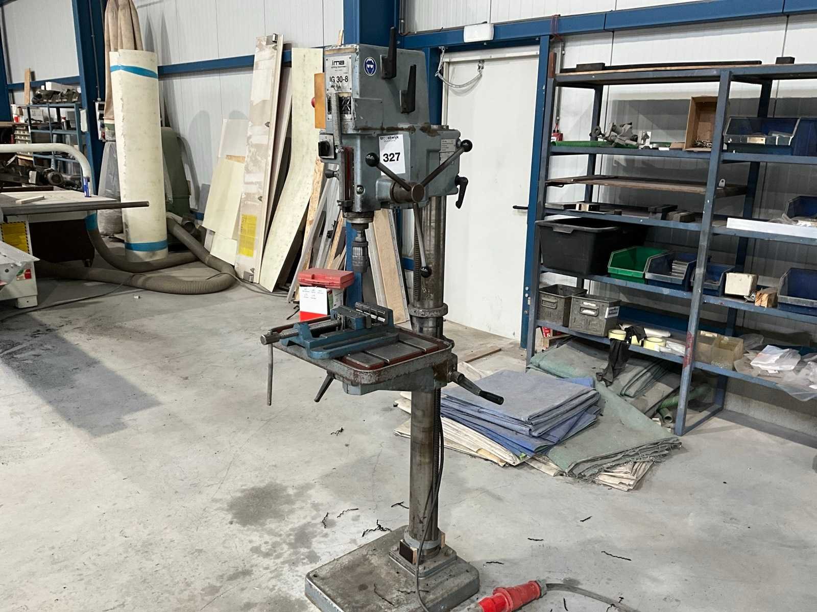Voorzien van hendel voor toerental schakelen, spanschroef, boren set Nee Merk: IMA Type: IG30-8 Bouwjaar: 1996 Serienummer: 337251 Aantal snelheden: 8 Spindelsnelheid van n =: 75rpm Spindelsnelheid tot n =: 3285rpm Aansluiting: 400V Afmeting l: 1100mm Afmeting b: 750mm Afmeting h: 2000mm