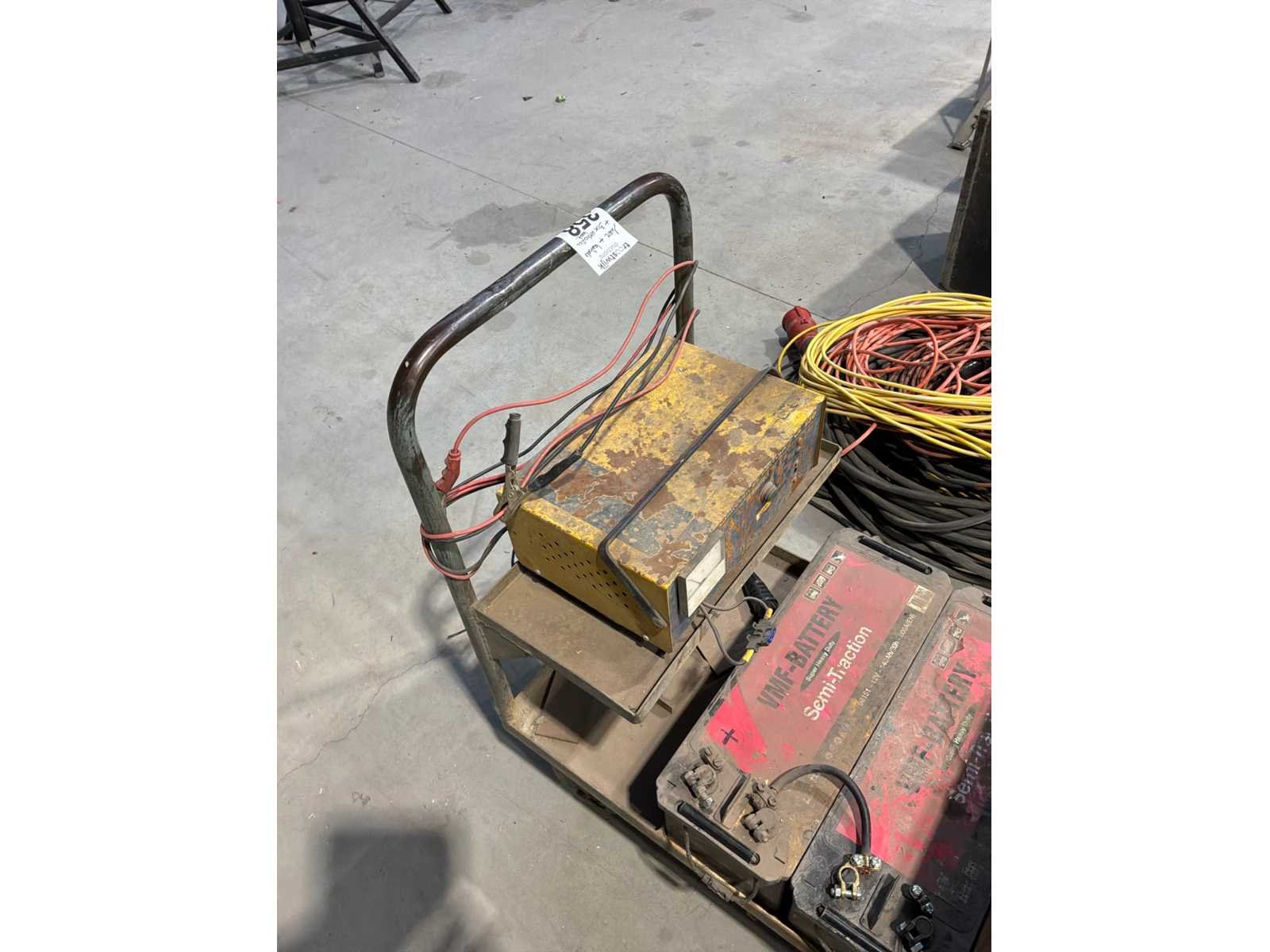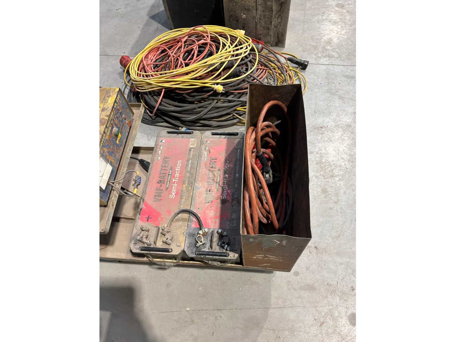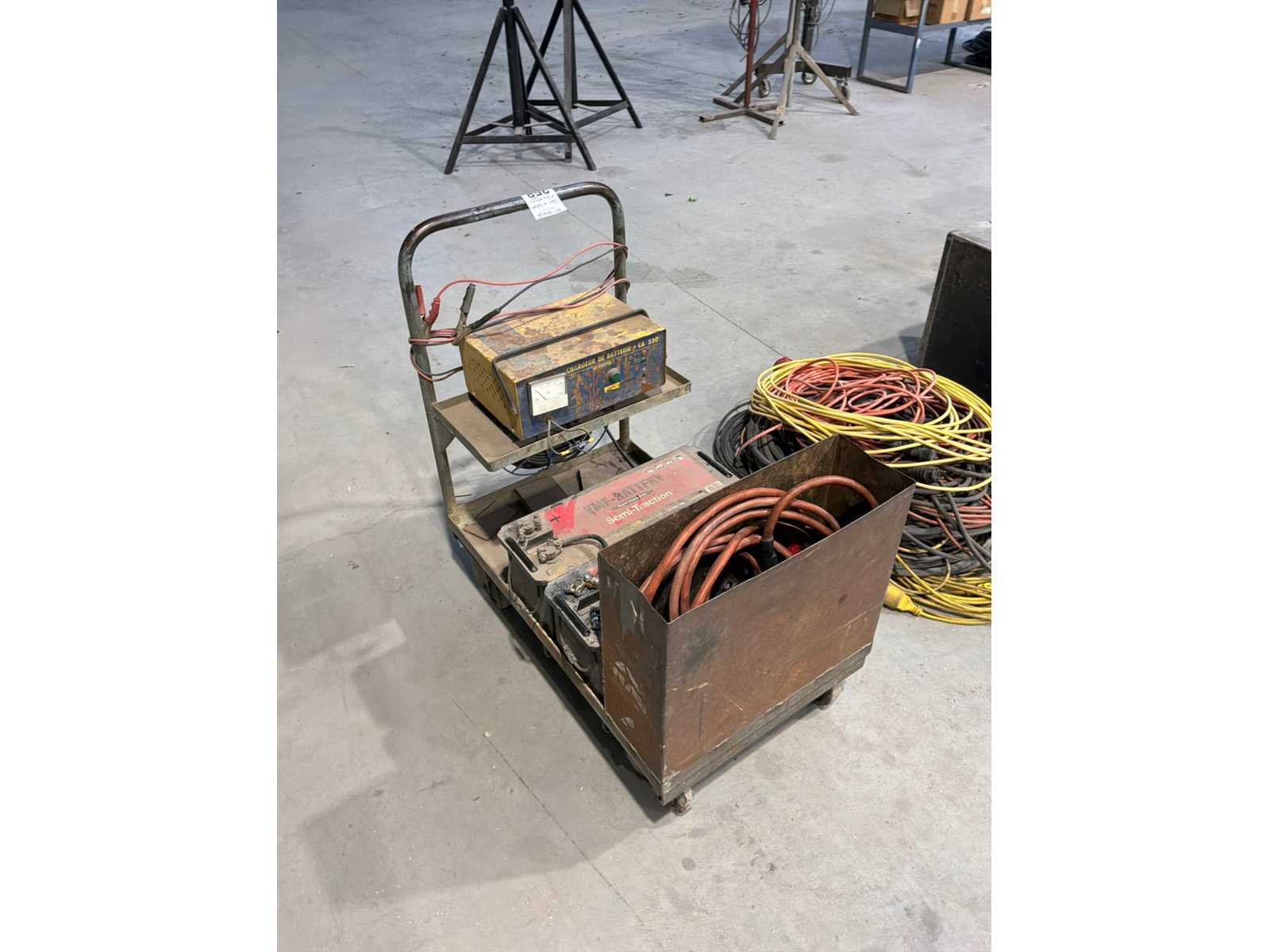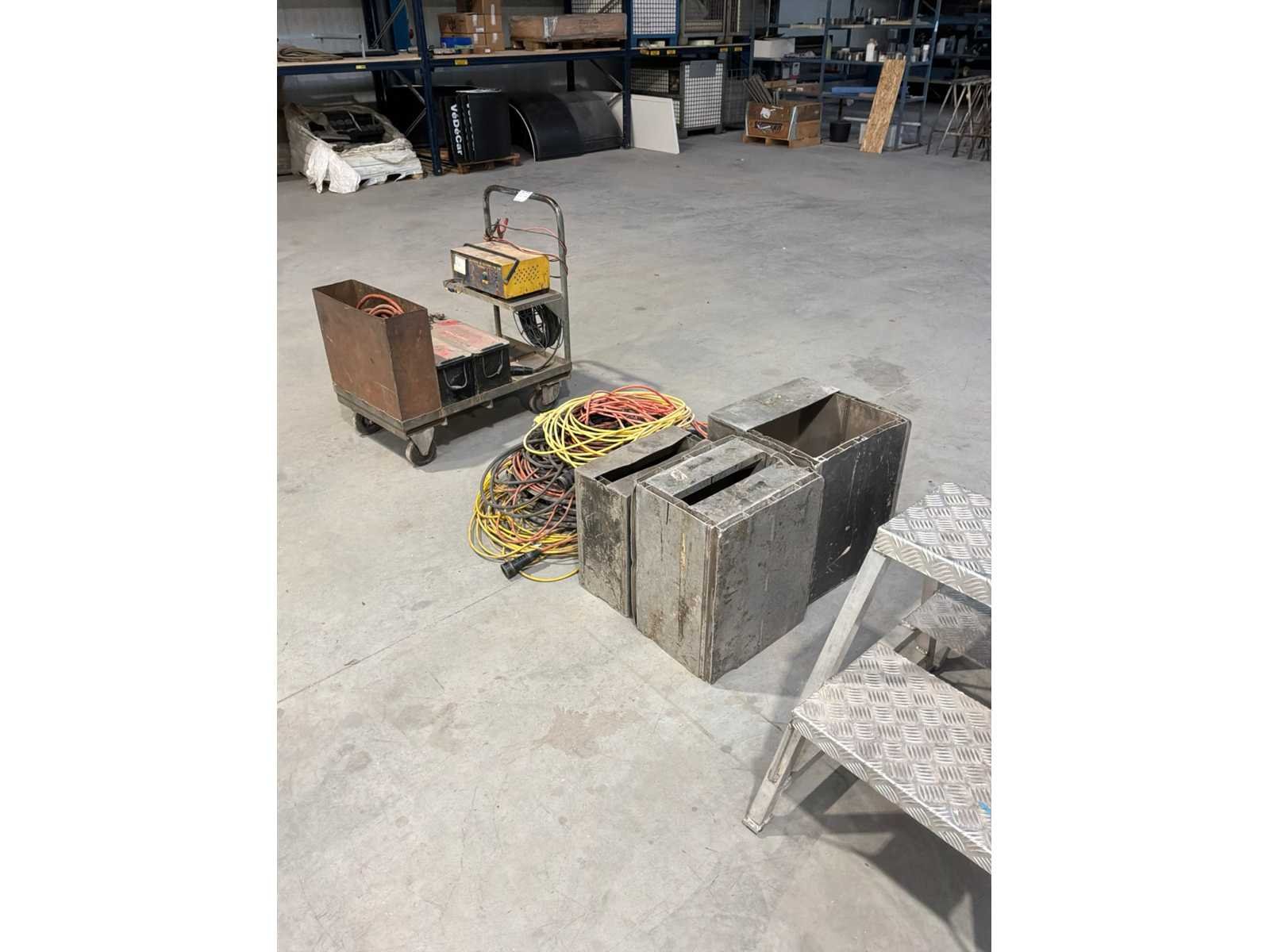 Kar met booster, verlengkabels, 3 metalen bakjes