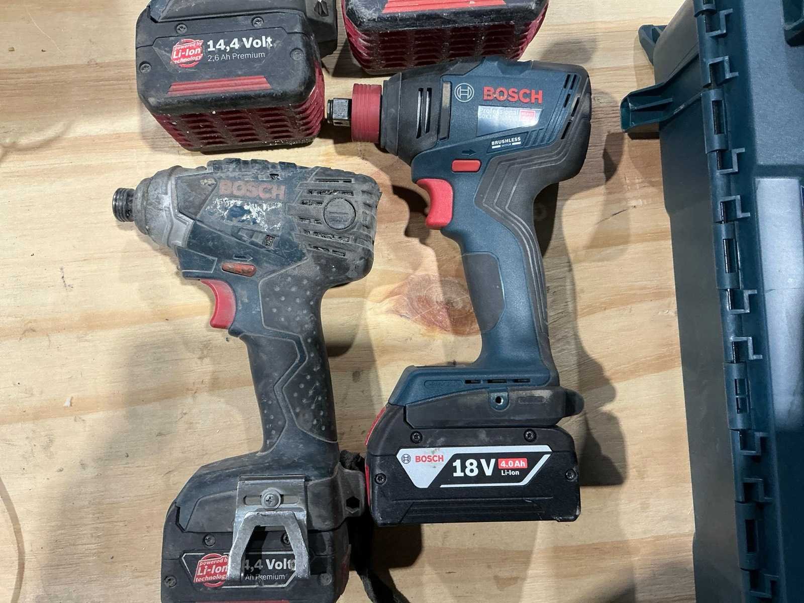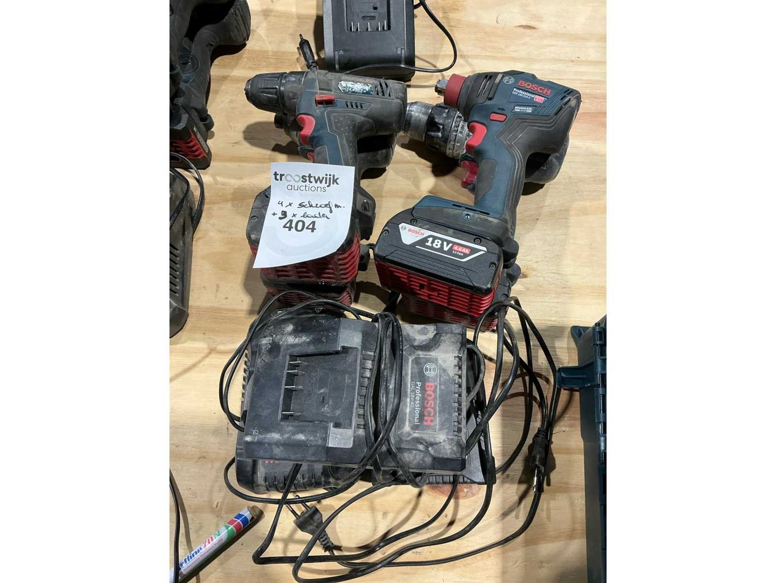 Waaronder types: GDX 18V-210C, GSR 18V-85 C, GSR14,4-2LT. Allen voorzien van accu. Compleet met 3x acculader. Nee Merk: Bosch Accu lader: true