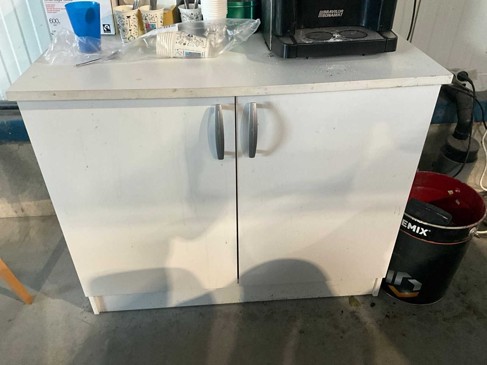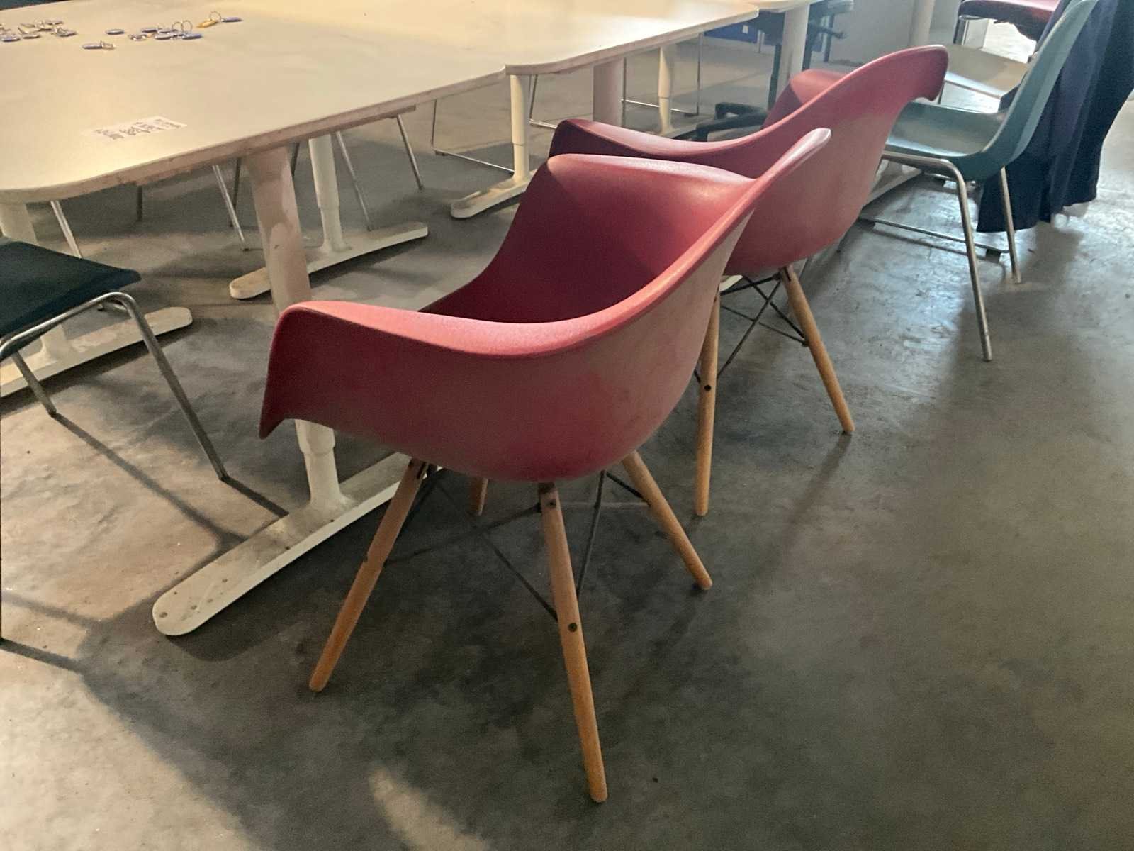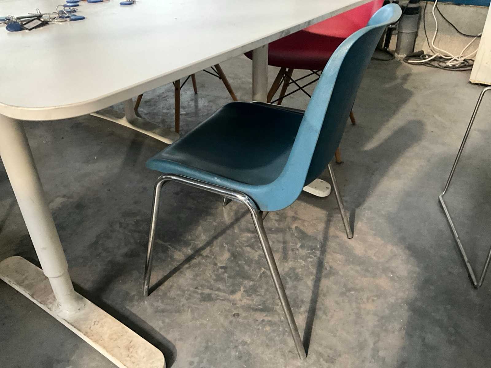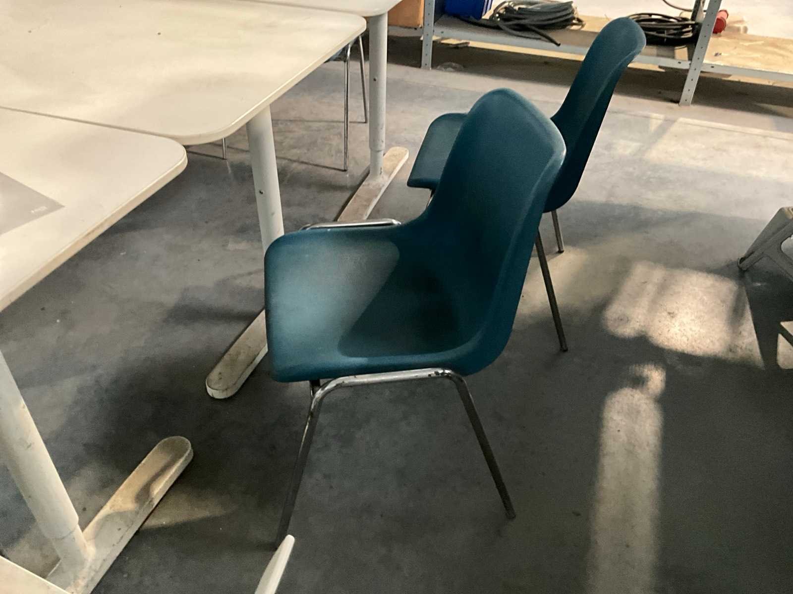 Bestaande uit: 4x bureautafel 120 x 80 x 75cm, 13 diverse bijzetstoelen, opbergkast voorzien van 2 deuren, 2x ladeblok en salontafel Nee