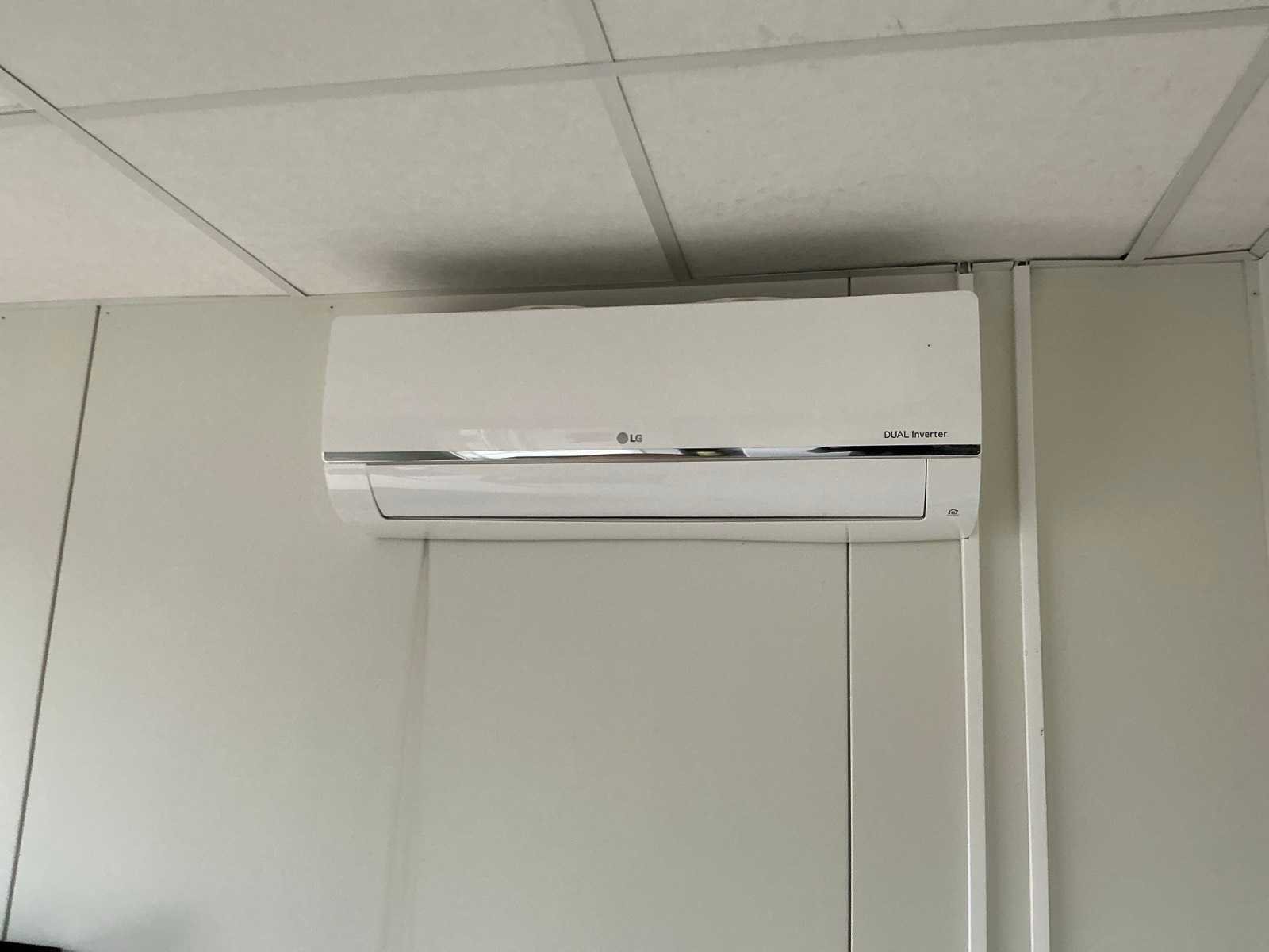 Voorzien van toegangsdeur/ schuifraam met breedte 3,8 meter/ uitgerust met airconditioning LG. Voorzien van stopcontacten en verlichting, handenwasser, toilet, 2 LG Binnenunits Nee Merk: DS units Schakelunit: true Afmeting l: 6100mm Afmeting b: 6200mm Afmeting h: 3100mm Aantal ramen: 3 Toilet: true
