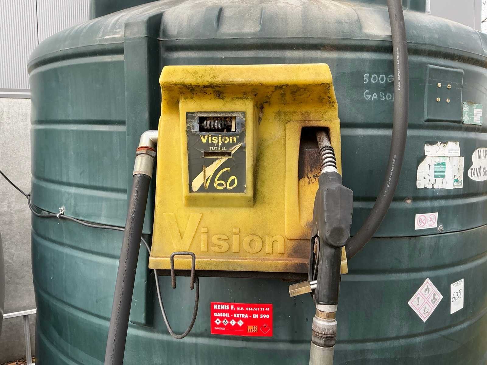 Inhoud: 5000 liter. Resterende inhoud niet gekend. Voorzien van Vision vulpistool met analoge meter Nee Merk: M.I.P. Type: 5000L Bouwjaar: 2003 Serienummer: 001765 Kunststof: true Mangat: true