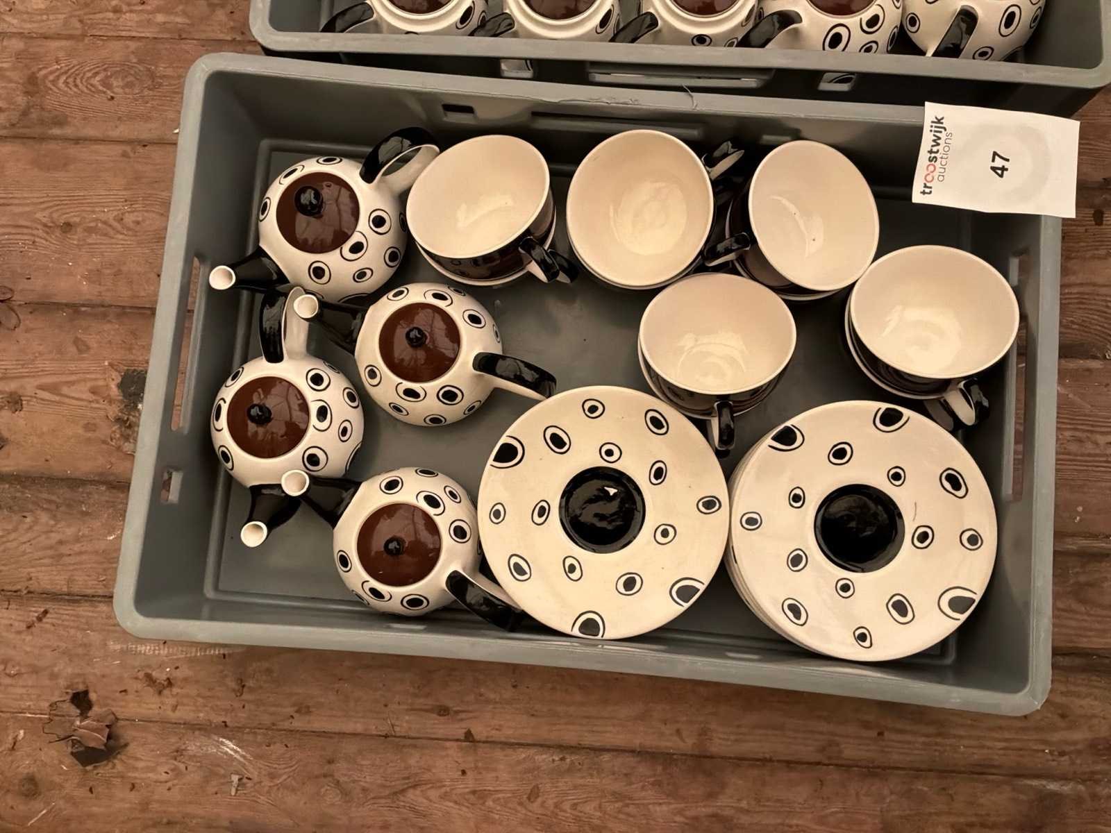 10 tassen, 10 ondertassen, 19 kannetjes in 2 bakken Nee