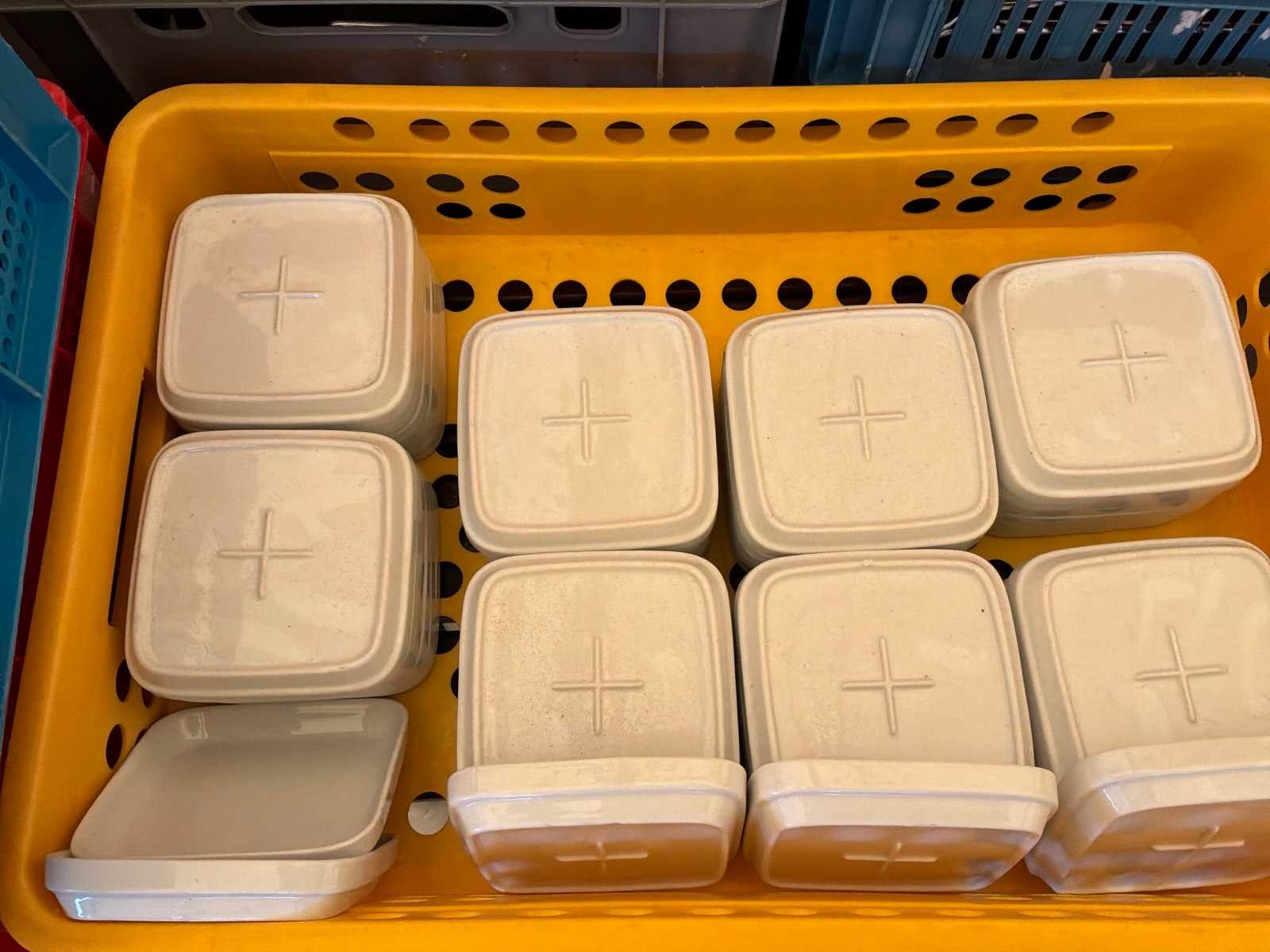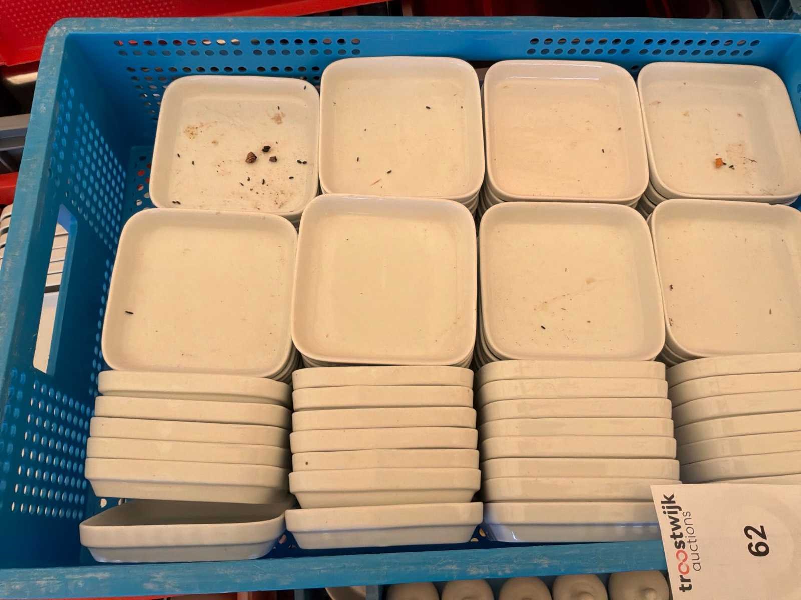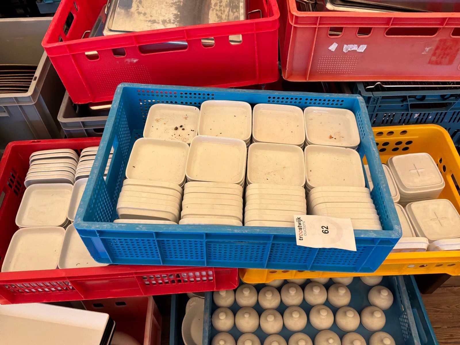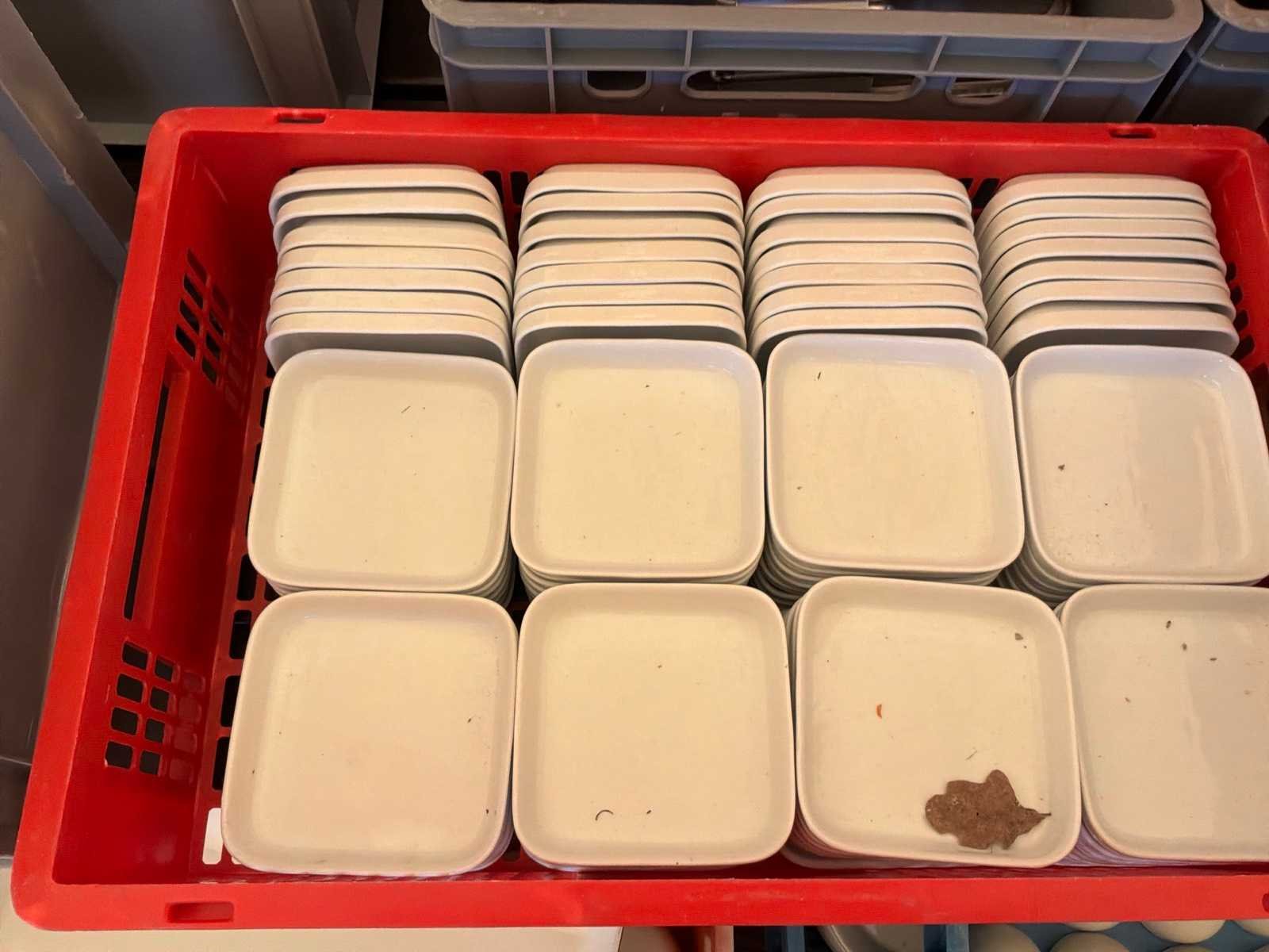 3 kisten met in totaal circa 200 stuks. Afmetingen schoteltje circa 12 x 12 cm Nee