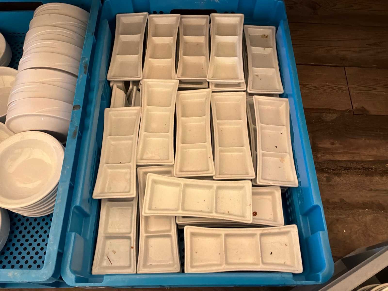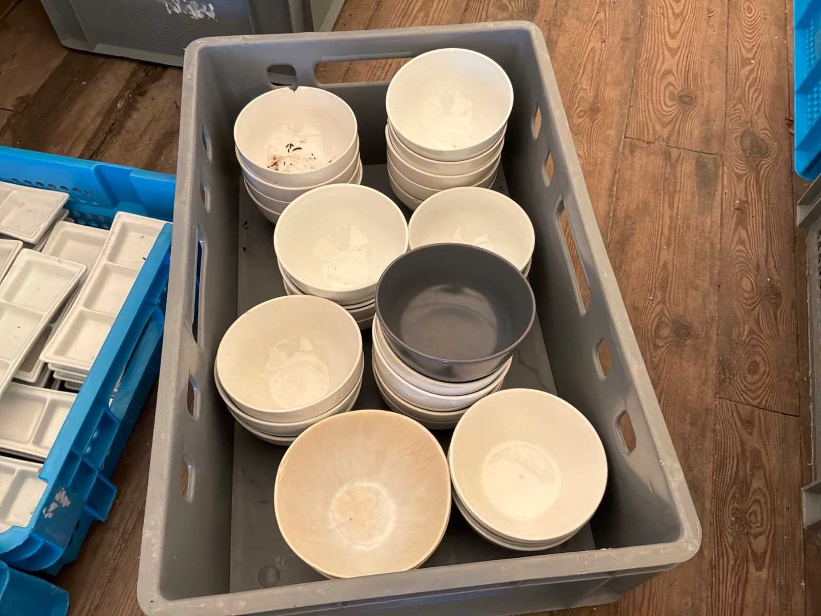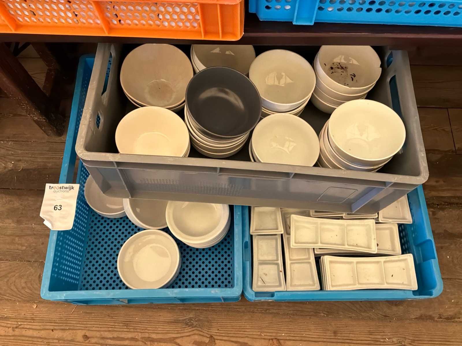 3 kisten met porseleinen kommen en schoteltjes Nee