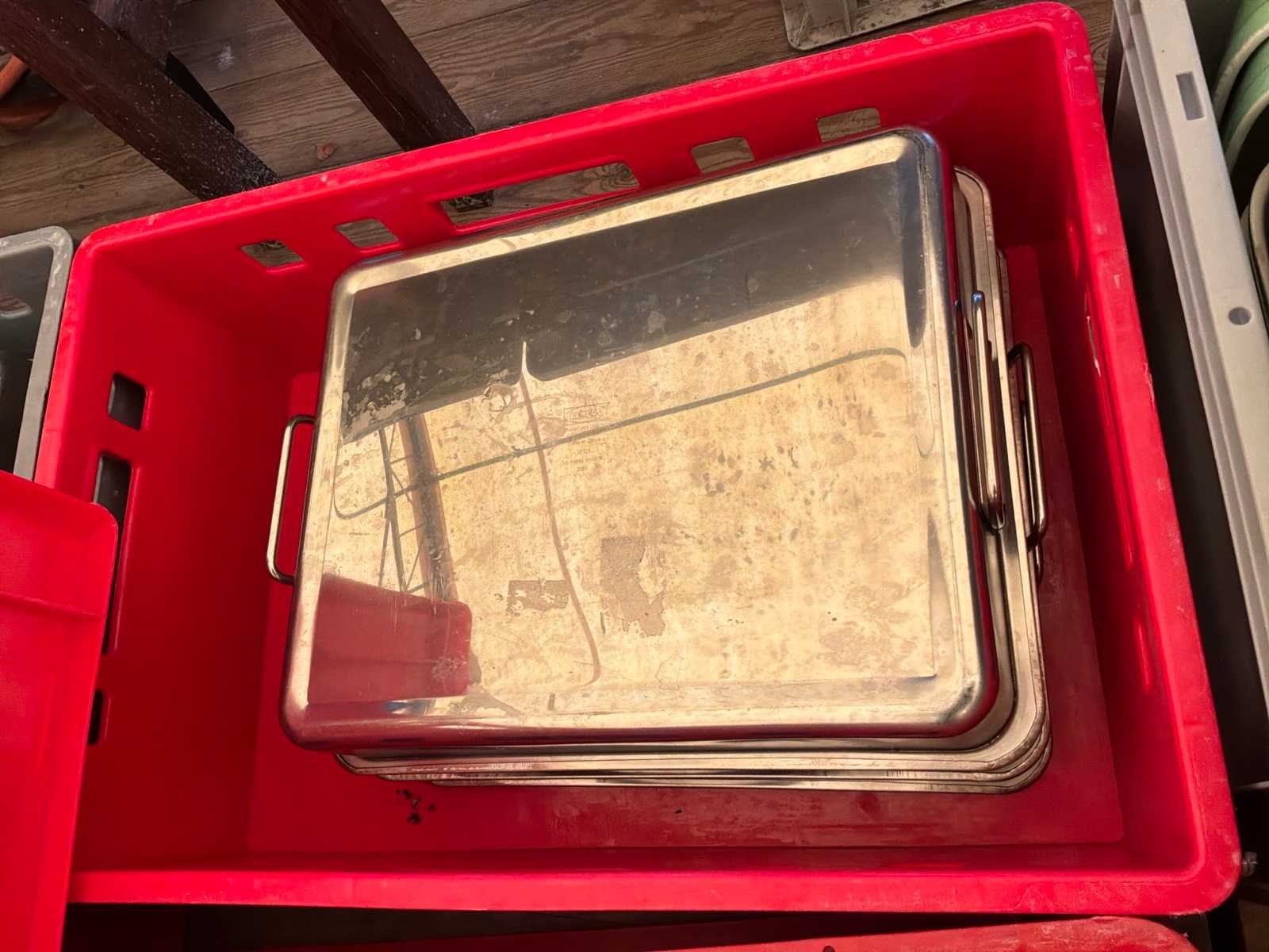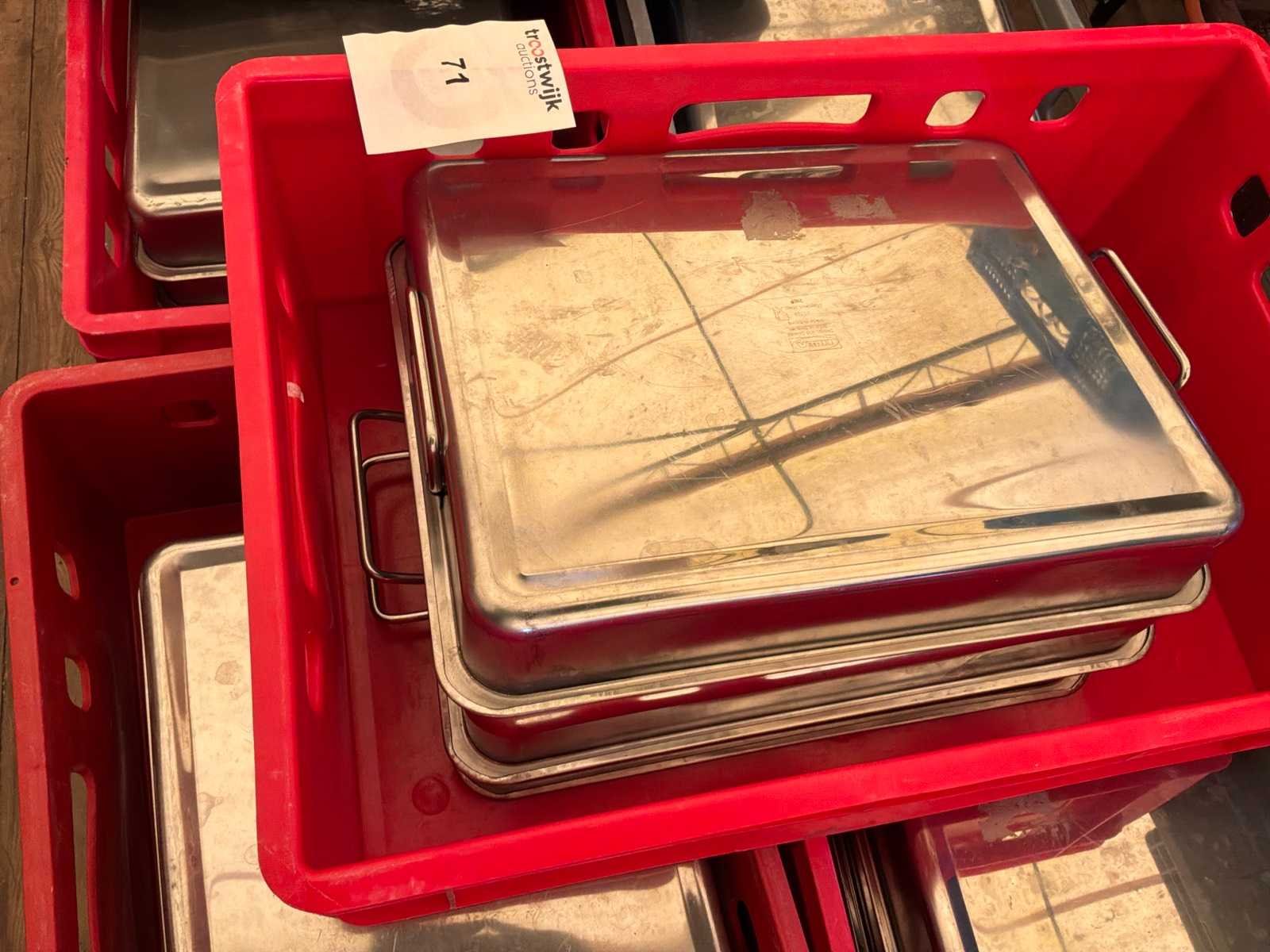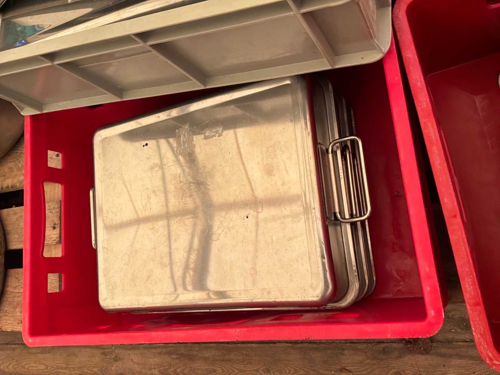 6 kisten met in totaal met circa 20 RVS schalen met diverse afmetingen Nee