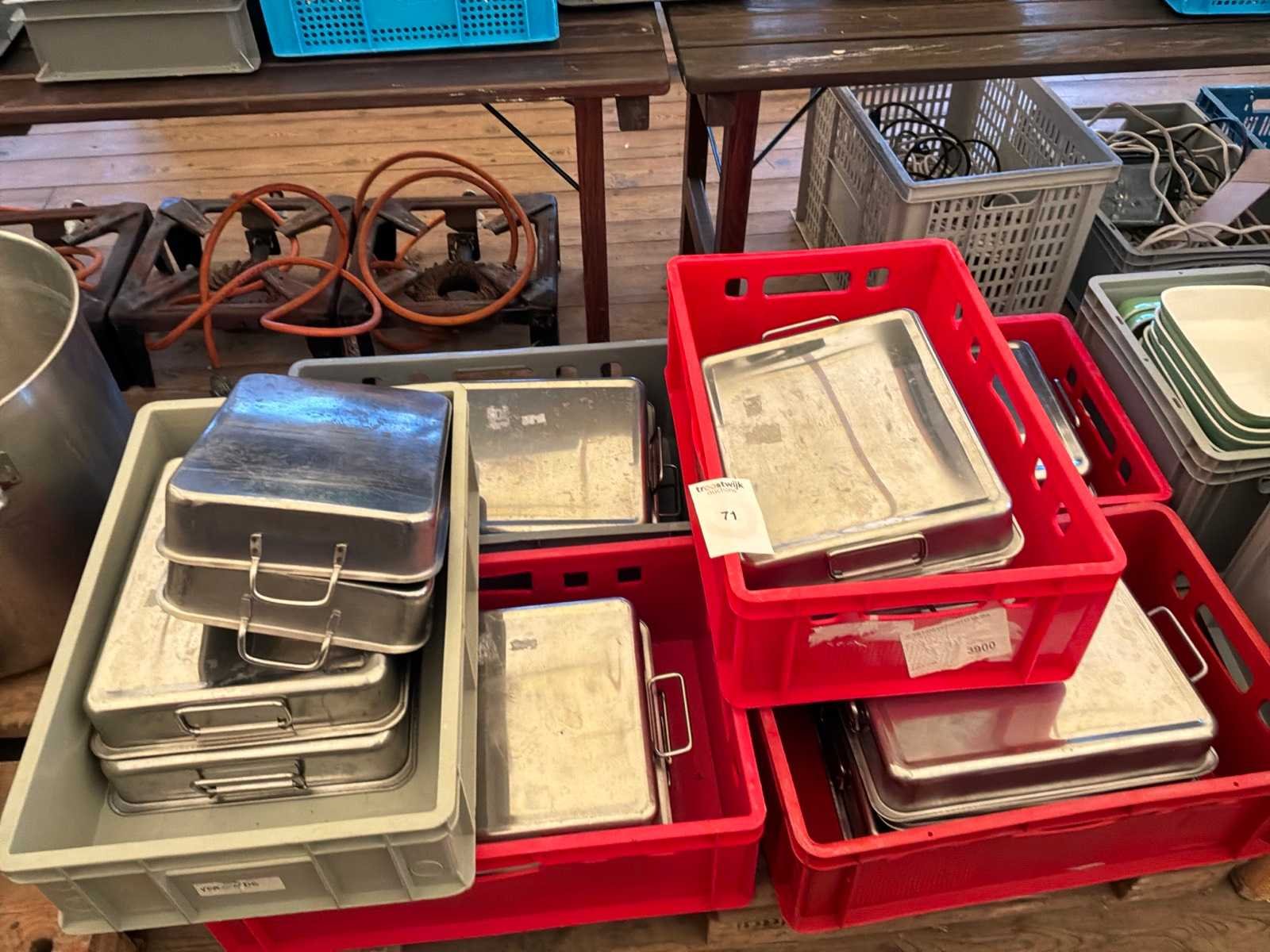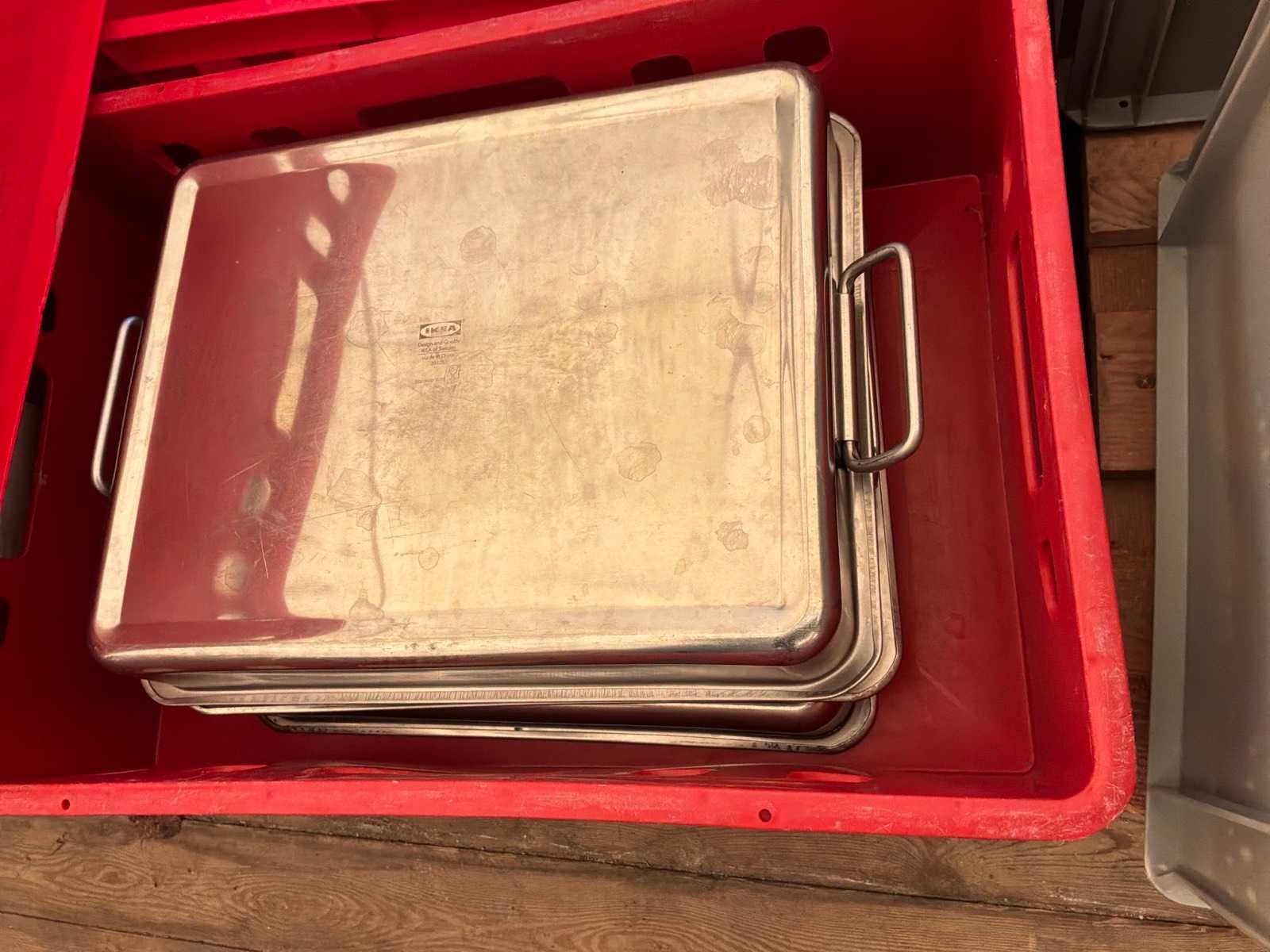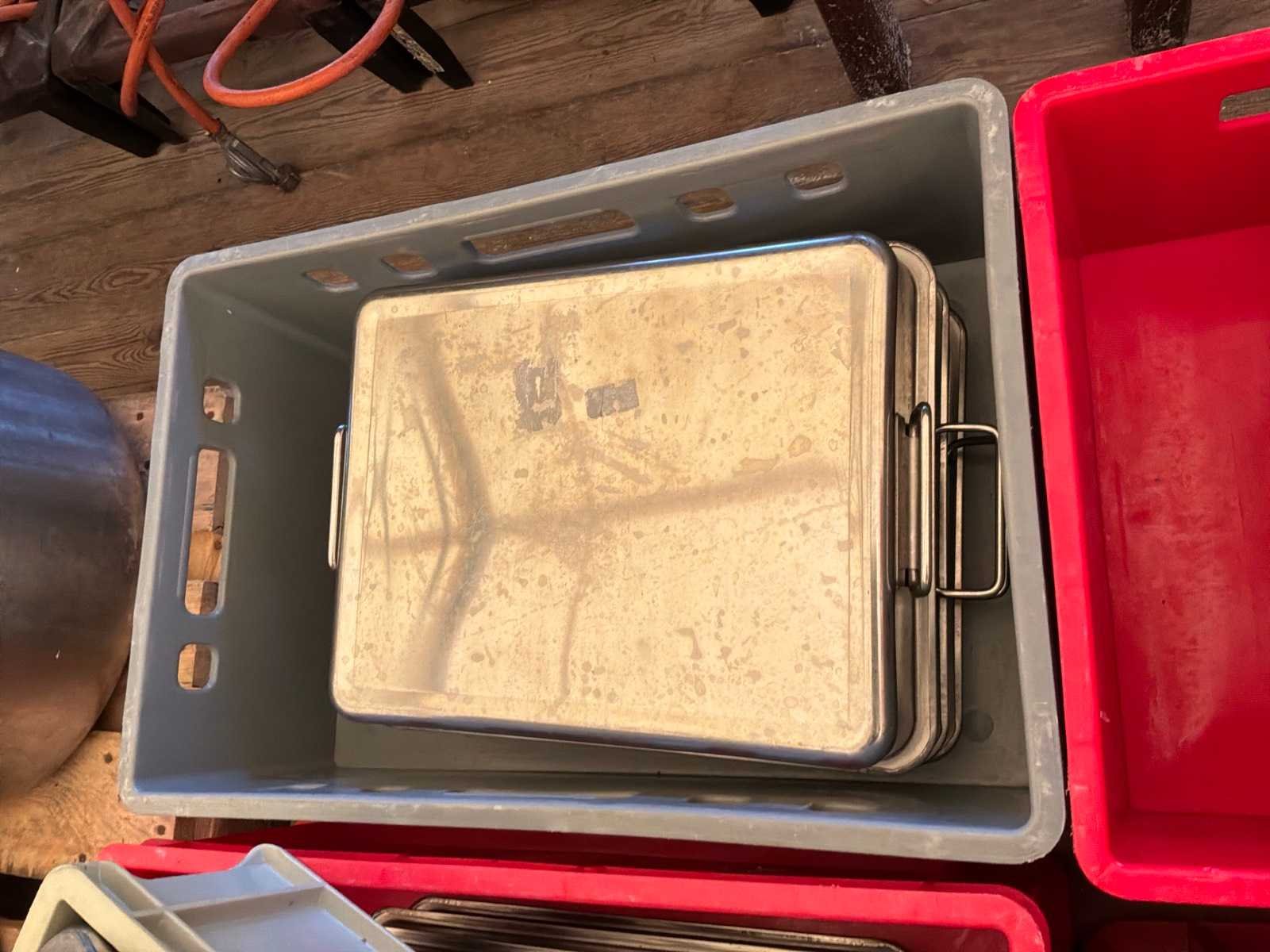 6 kisten met in totaal met circa 20 RVS schalen met diverse afmetingen Nee