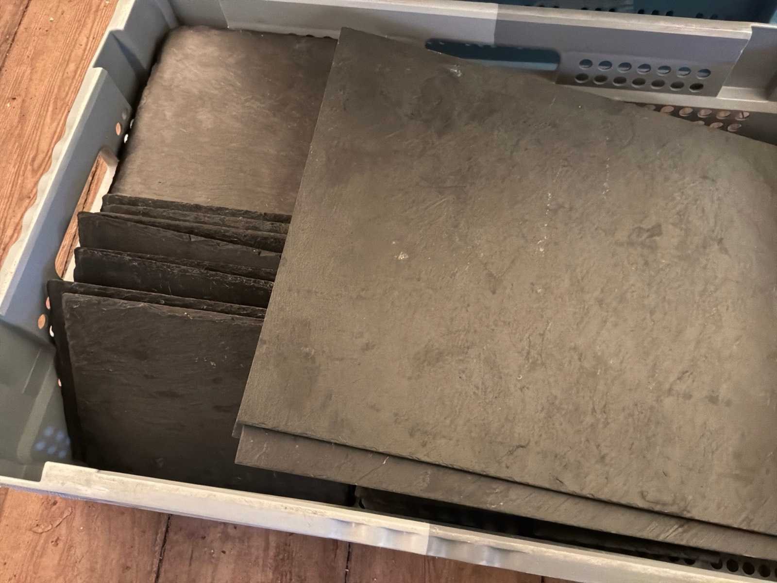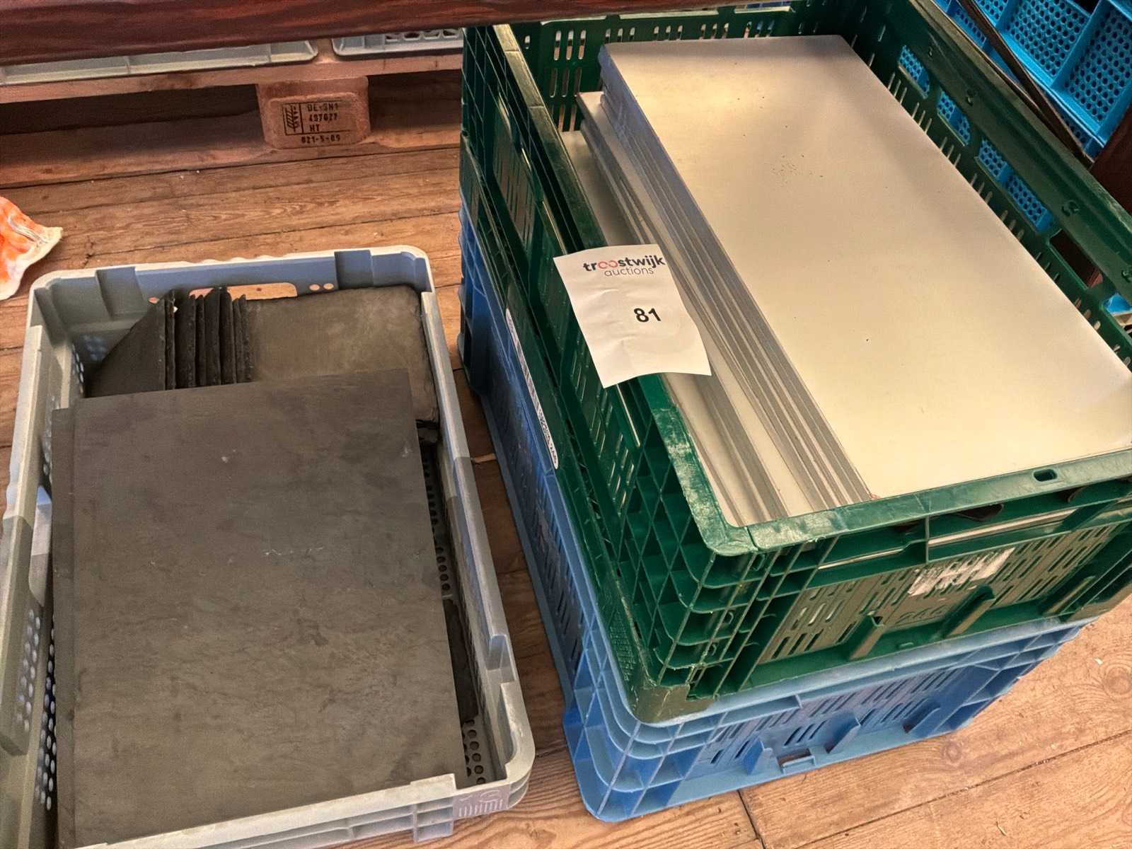 3 kisten met diverse presentatie onderzetborden. Diverse materialen en afmetingen. Nee