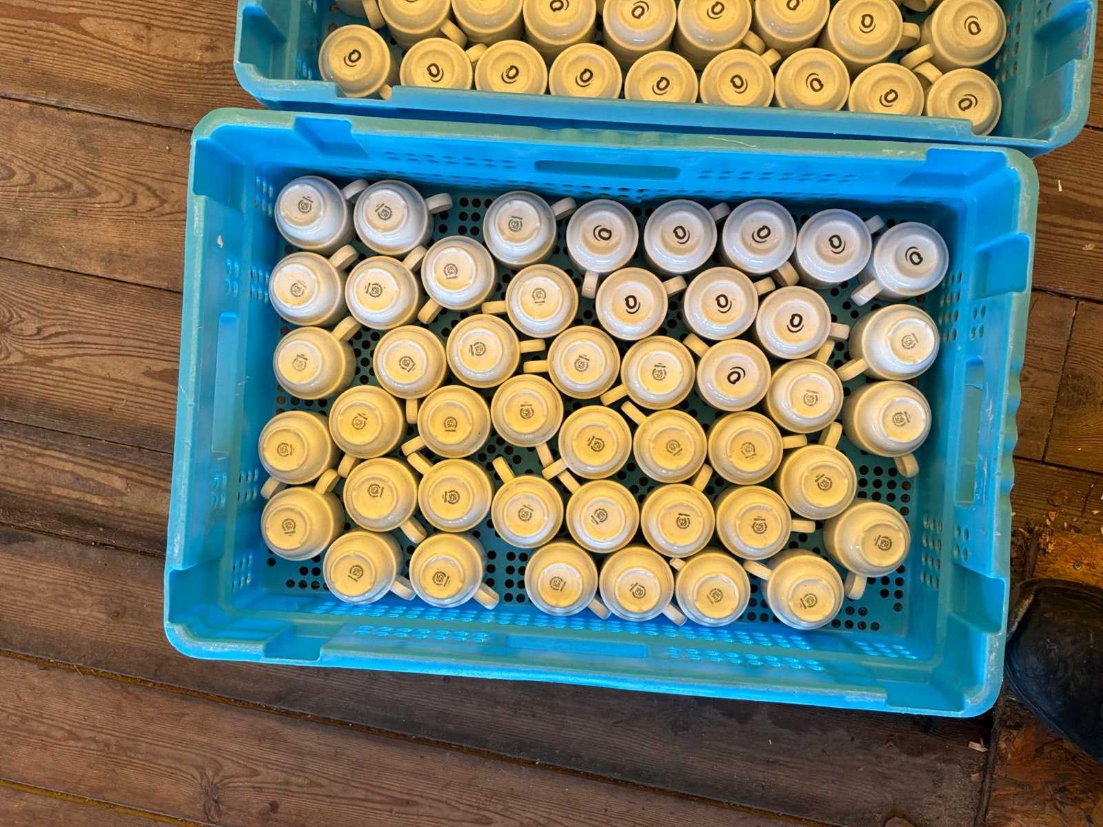 7 kisten waarvan 5x kist met totaal circa 200 koffiekopjes in diverse afmetingen Nee
