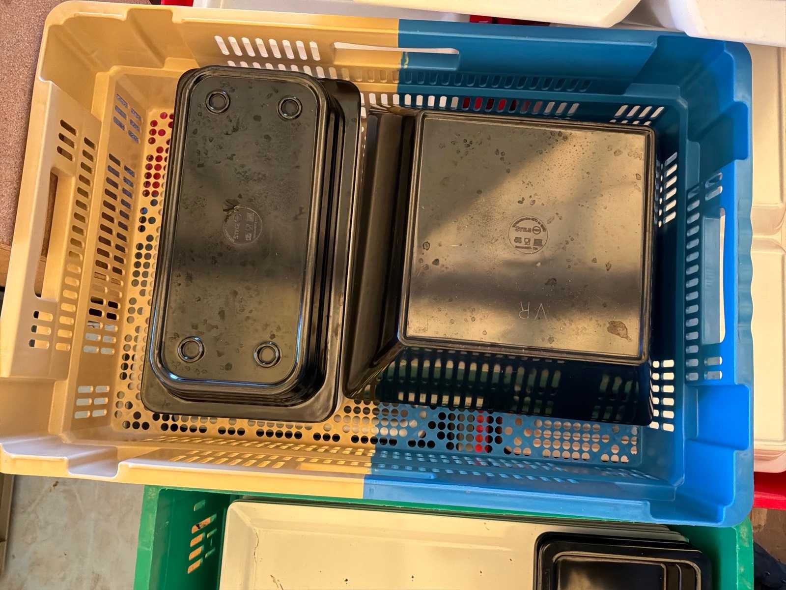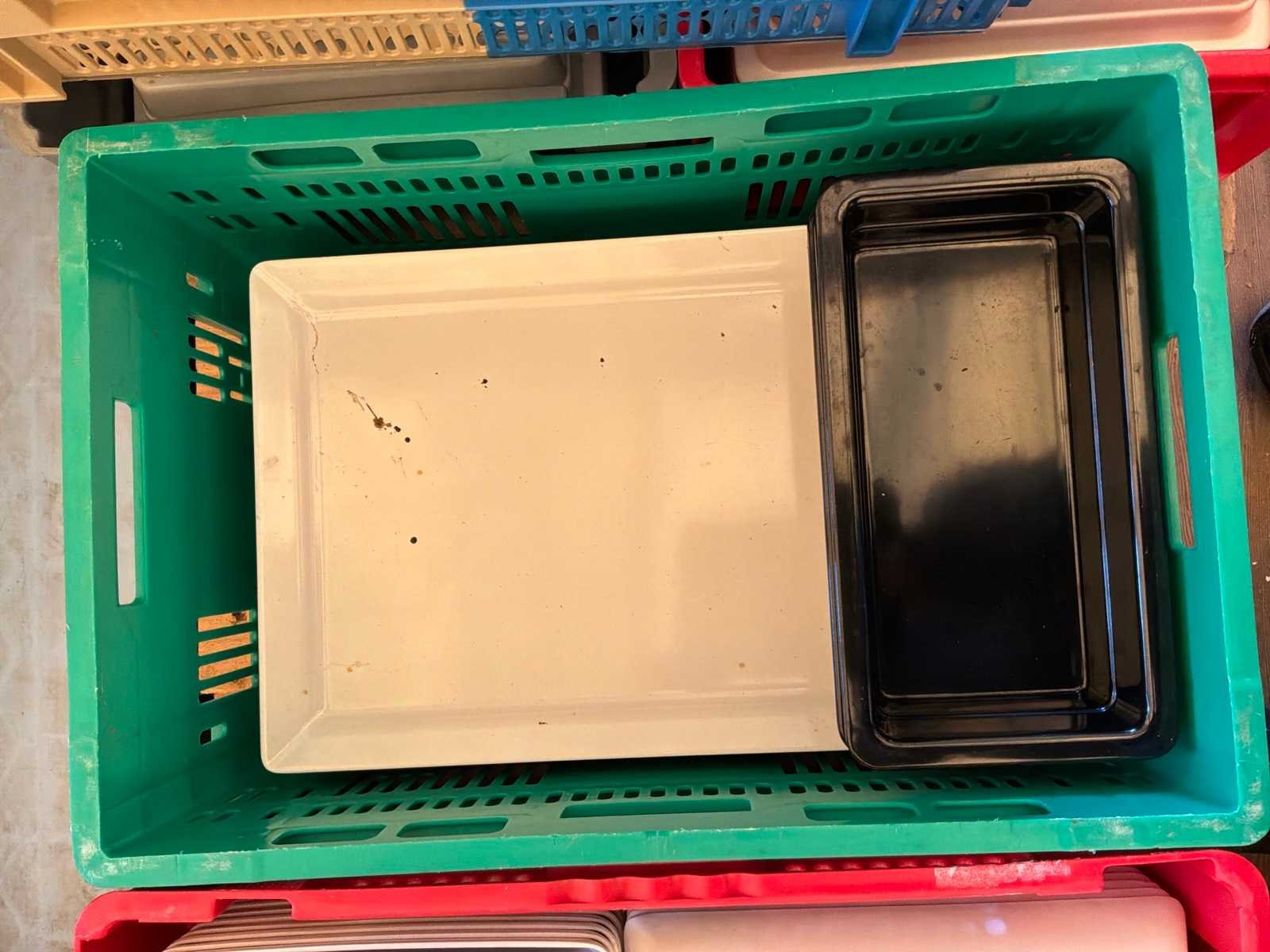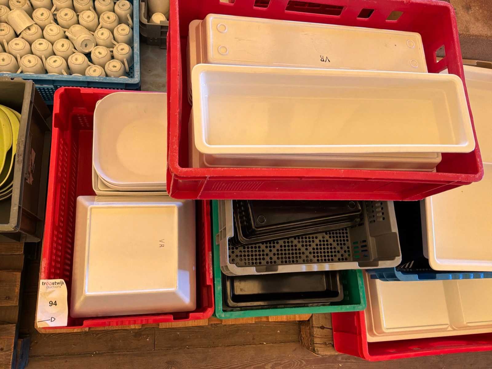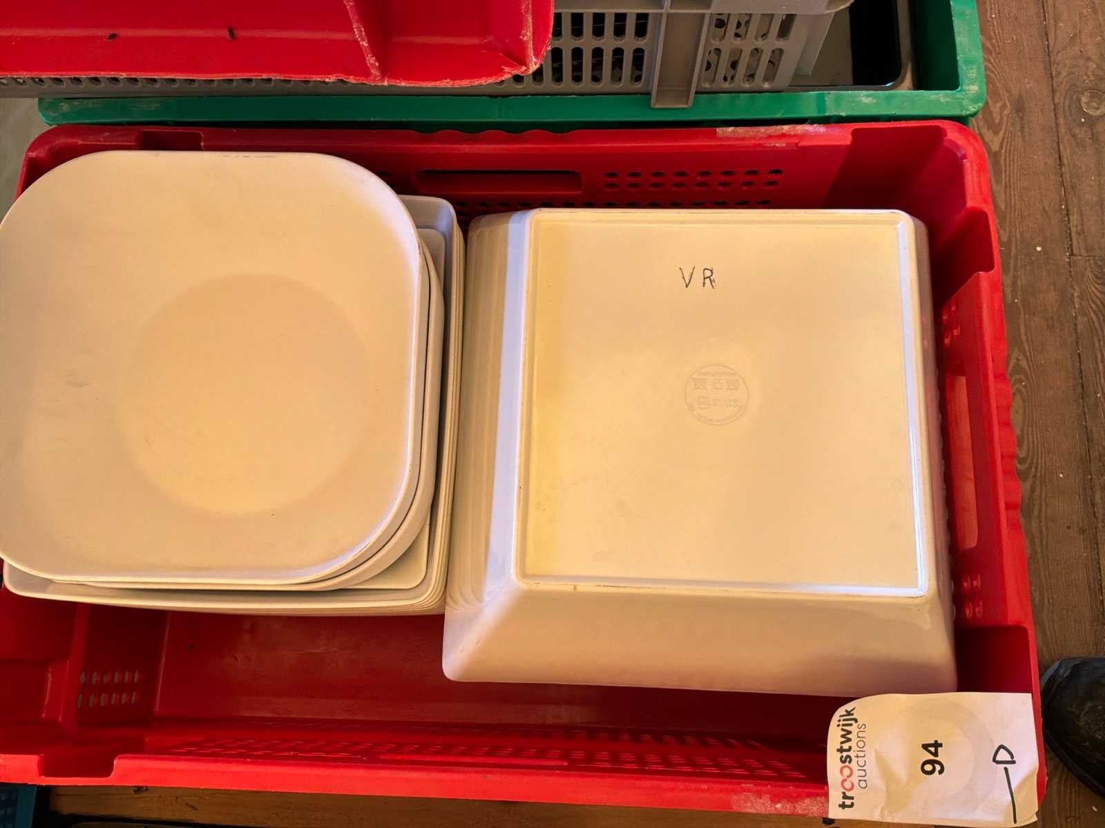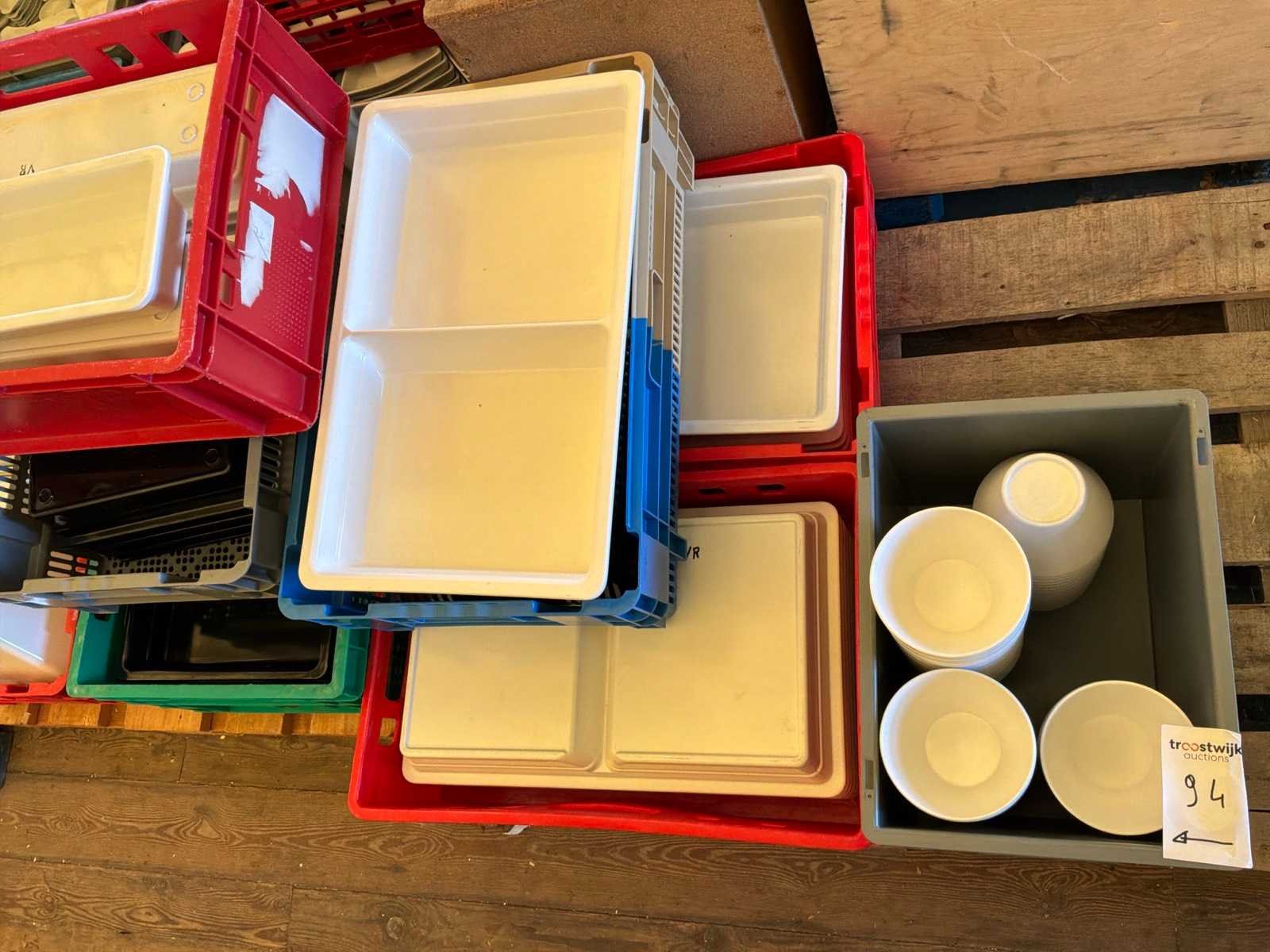 Bestaande uit 8 kisten met diverse schalen en kommen. Aantal niet gekend. Nee