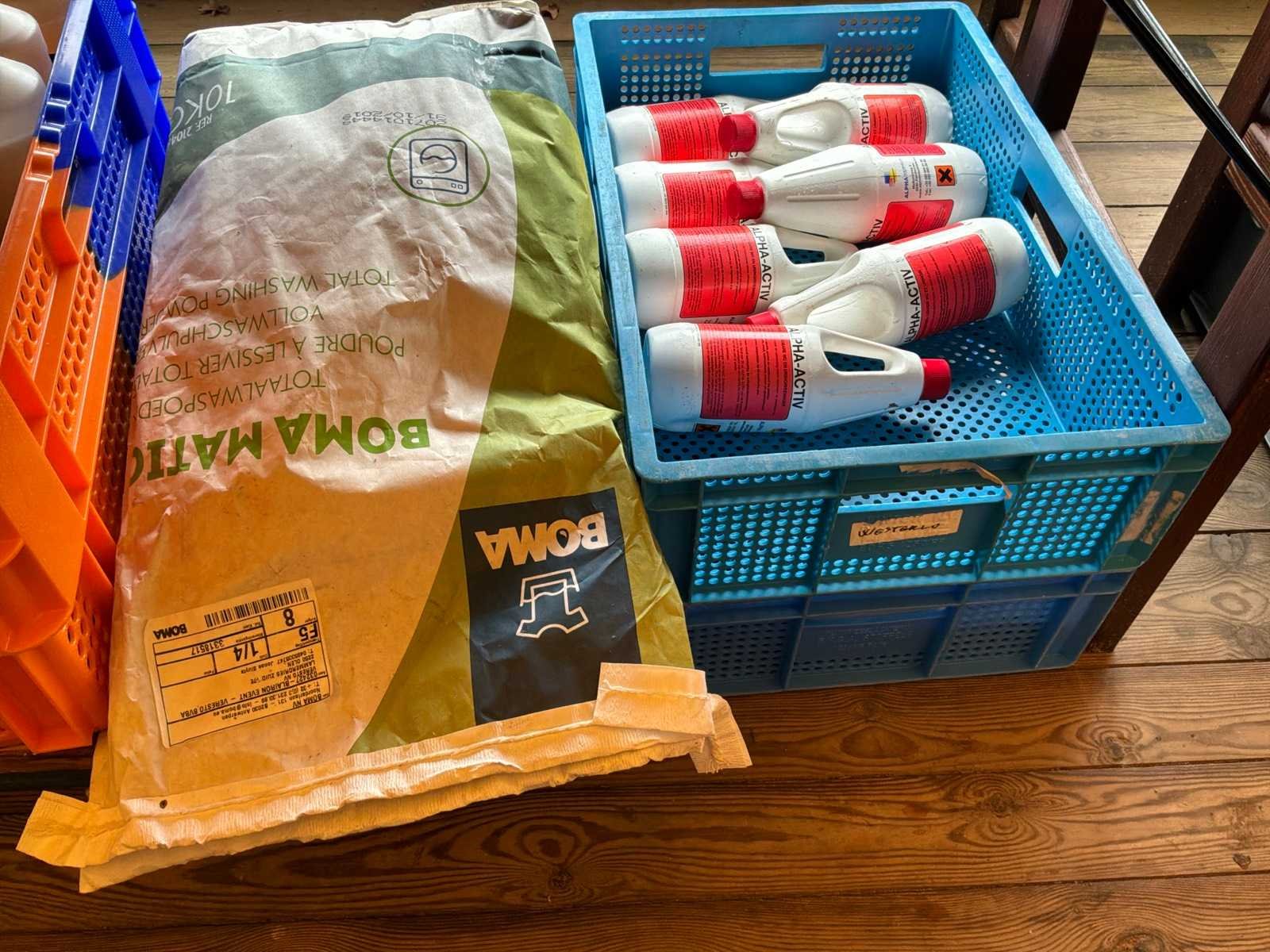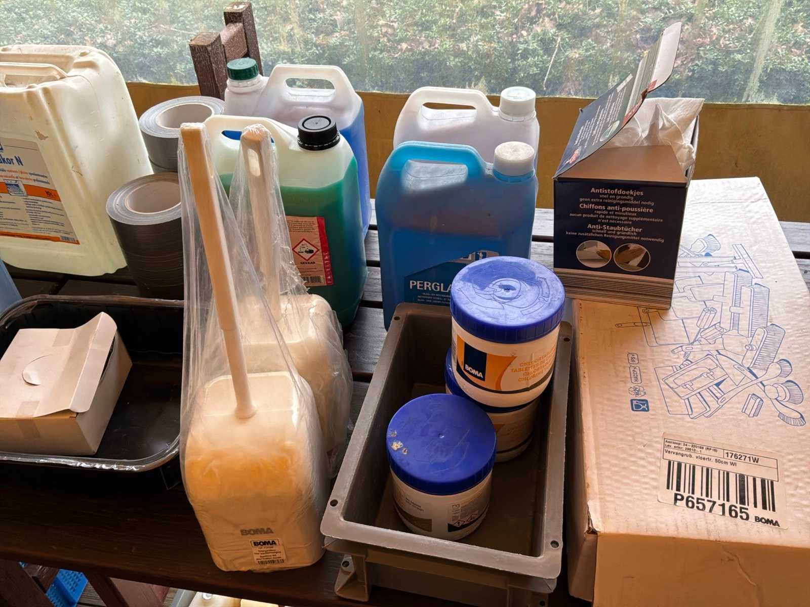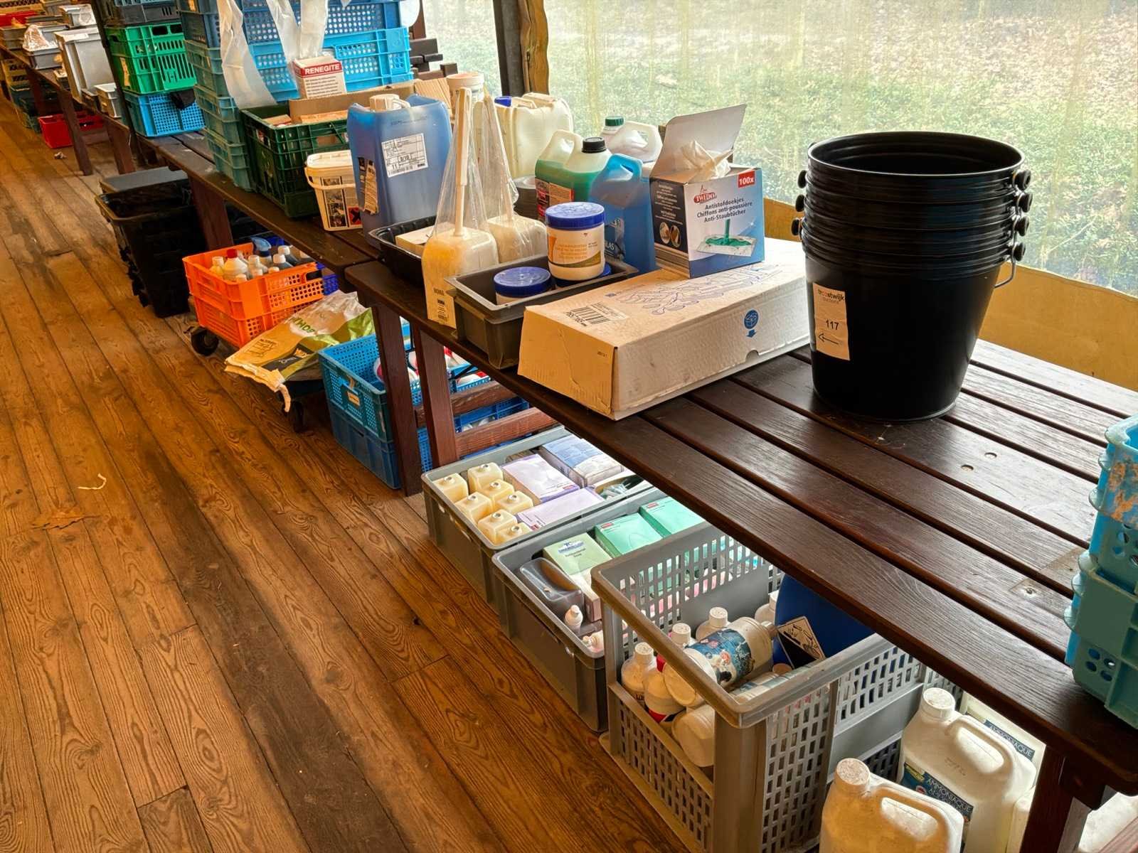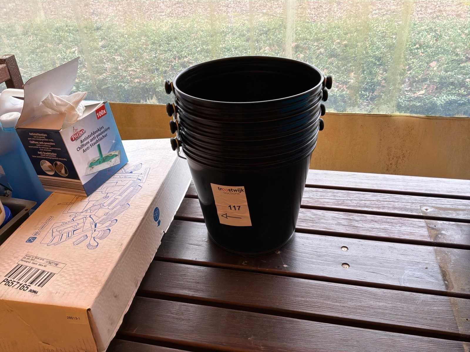 Waaronder emmer (4x), WC-borstel (2x), 4 kisten met witte plastic schorten Nee