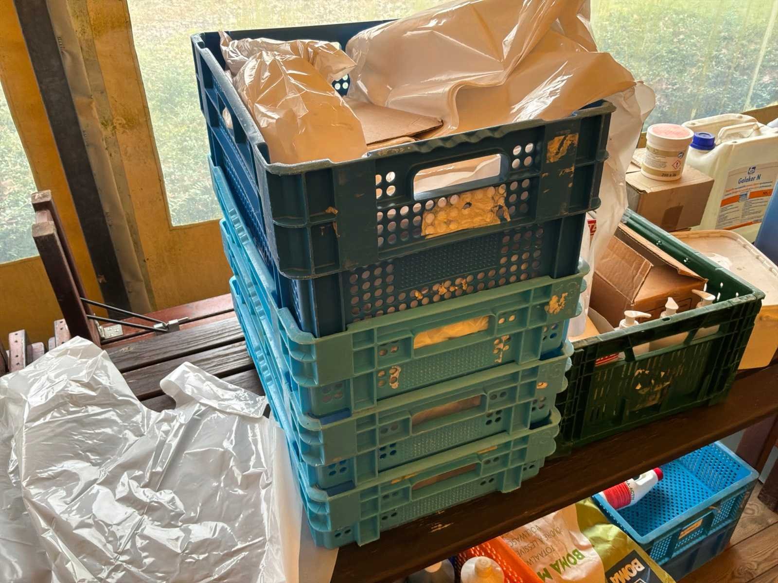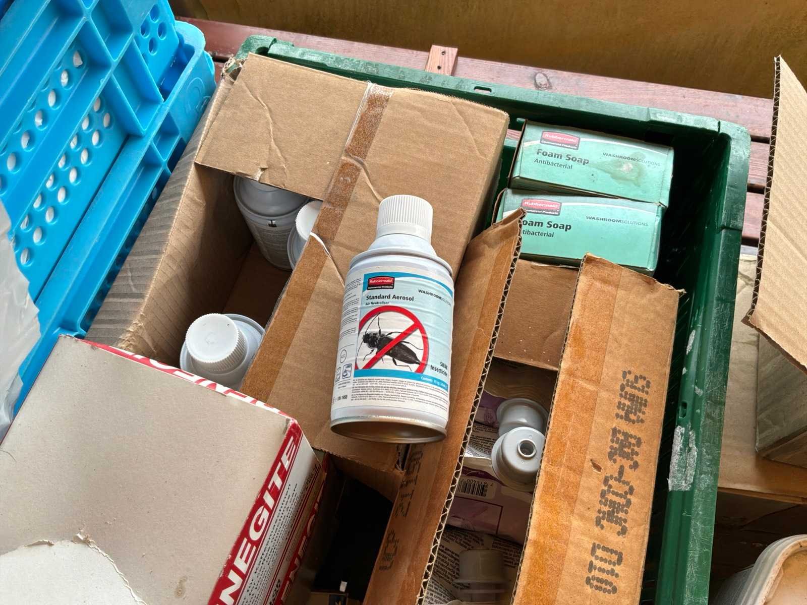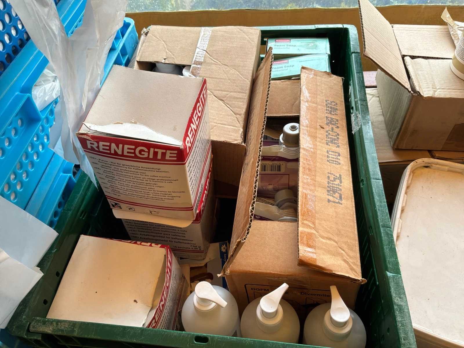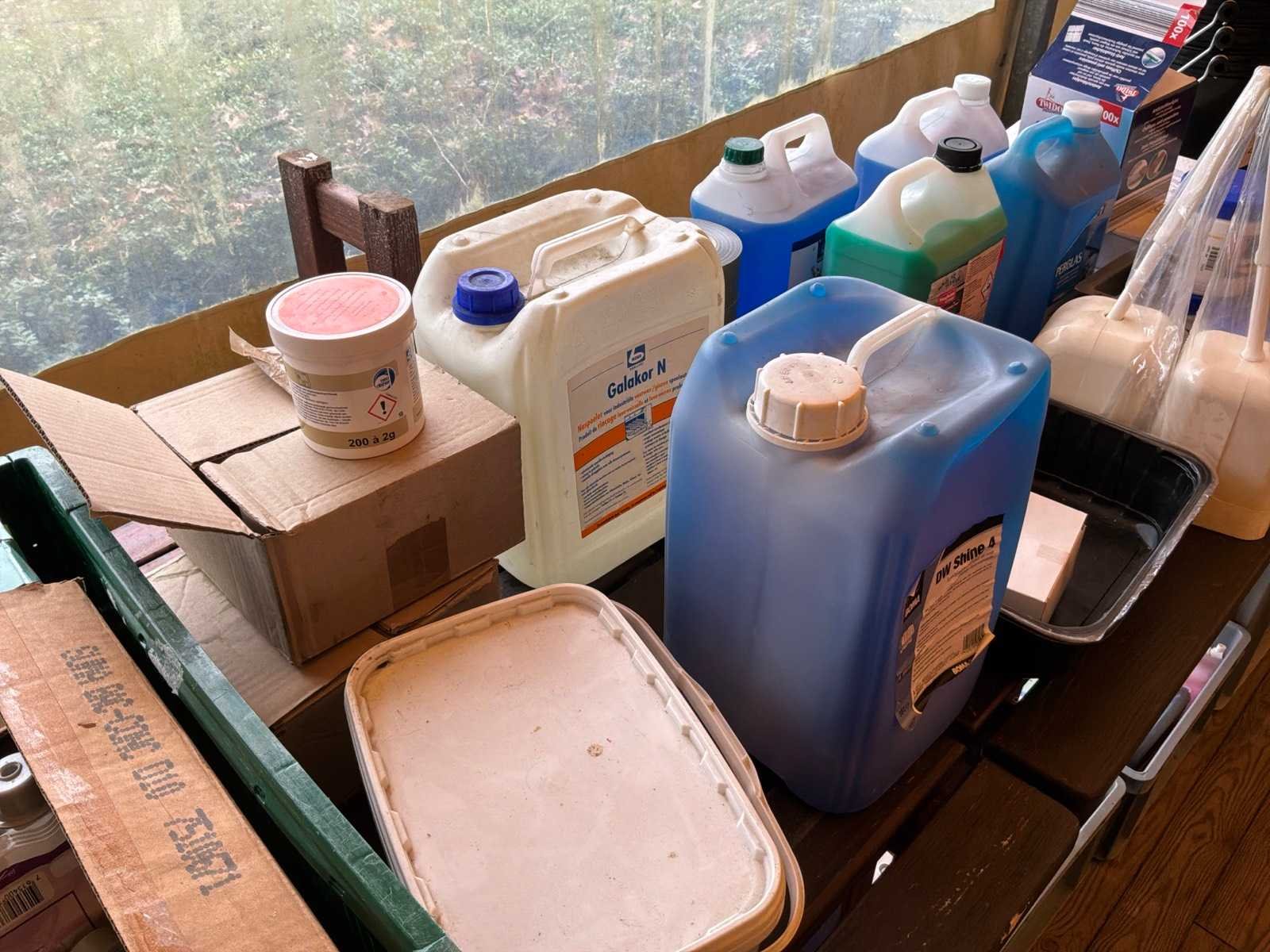 Waaronder emmer (4x), WC-borstel (2x), 4 kisten met witte plastic schorten Nee