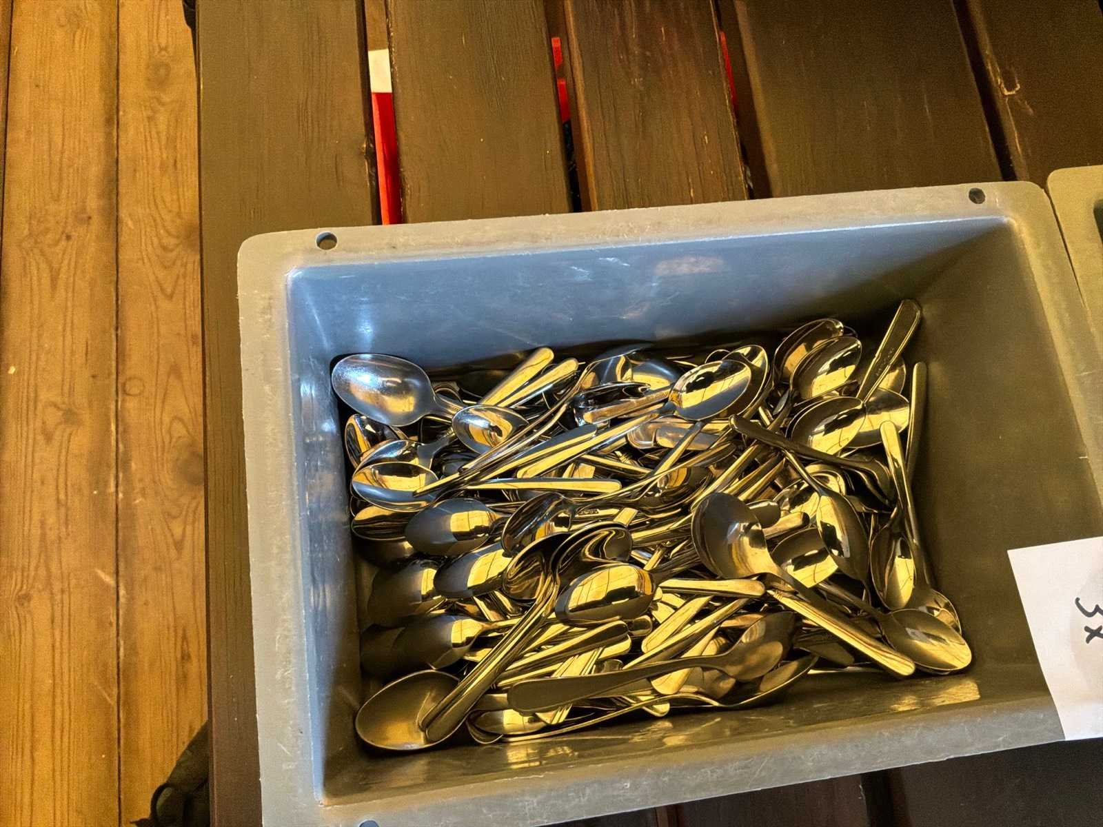 3x kist met dessertbestek waarvan 1x kist met koffielepels, 1x kist met dessertvorken, 1x kist met sporken Nee